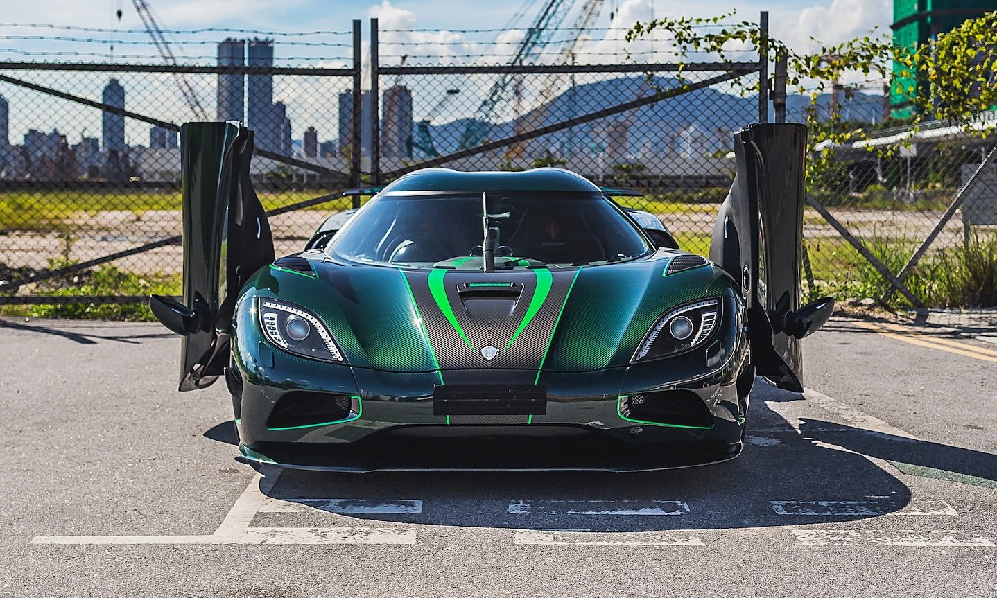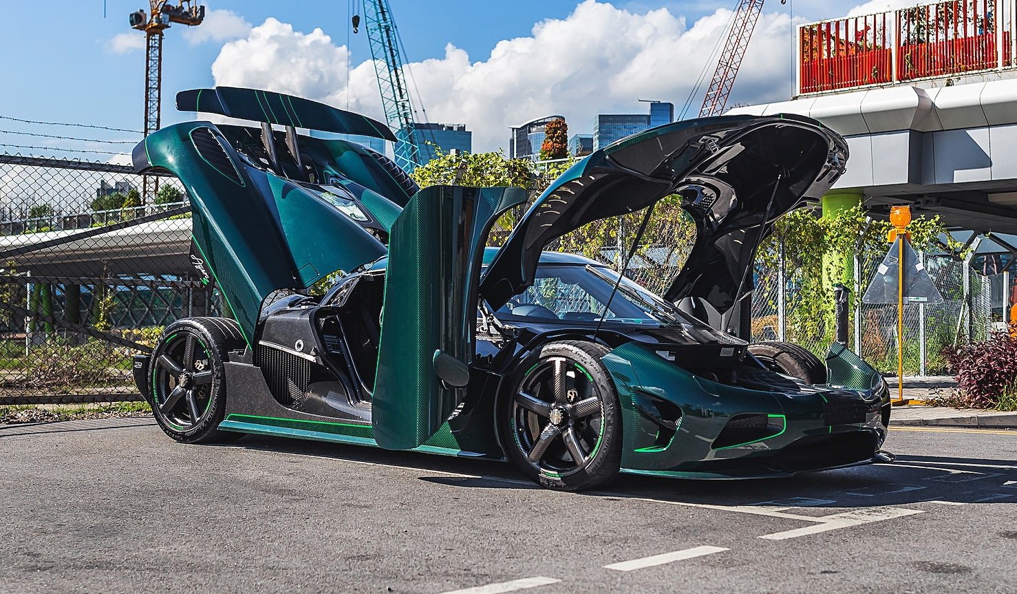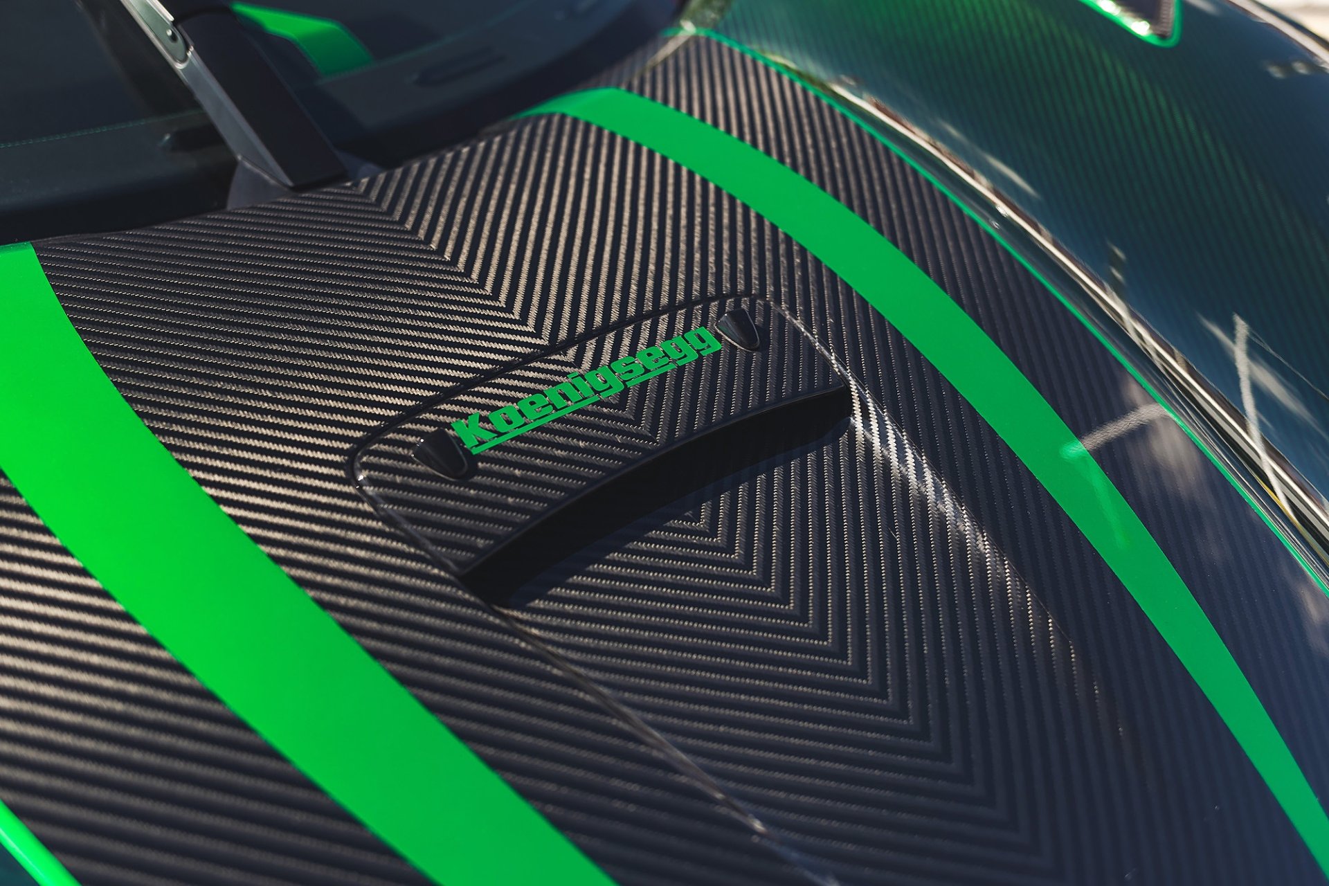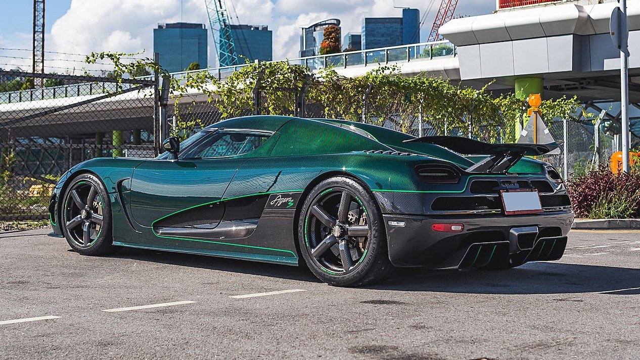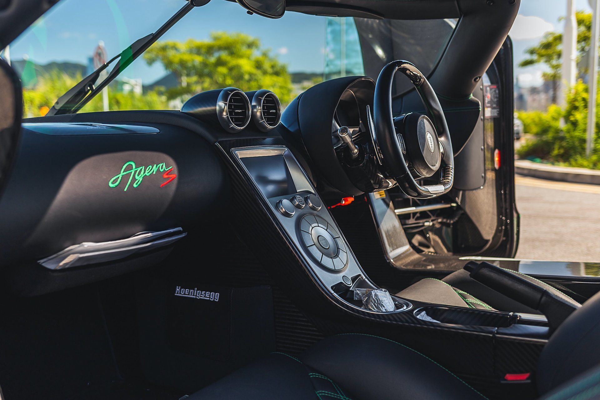 Koenigsegg Agera S ไฮเปอร์คาร์สุดหายากคันนี้ ผ่านการวิ่งมาเพียง 3,323 กม. ถูกเซ็คสภาพเปลี่ยนถ่ายน้ำมันเครื่องมาเรียบร้อยโดยทางโคนิกเซกก์ฮ่องกง ตัวถังภายนอกใหม่กริ๊บไร้ร่องรอยเป็นแบบ Exposed carbon โชว์ลายคาร์บอนสีเขียวทั้งคัน และเสริมลายเส้นสีเขียวนีออนให้ดูจิ๊ดจ๊าด ดีไซน์ตัวรถออกแบบมาเพื่อทำความเร็วสูง ให้แรงกดสูงถึง 300 กก. ที่ความเร็ว 250 กม./ชม. น้ำหนักรถเปล่าสุดเบาเพียง 1,330 กก. เบรกใช้จานคาร์บอน-เซรามิก ขนาดด้านหน้า 397 มม. คาลิปเปอร์ 6 สูบ และหลัง 380 มม. คาลิปเปอร์ 4 สูบ ล้อด้านหน้าขนาด 19 นิ้ว หลัง 20 นิ้ว ก็เป็นแบบคาร์บอนไฟเบอร์ Hollow Space Carbon Fiber Aircore ที่เบากว่าล้ออัลลอยปกติถึง 40%