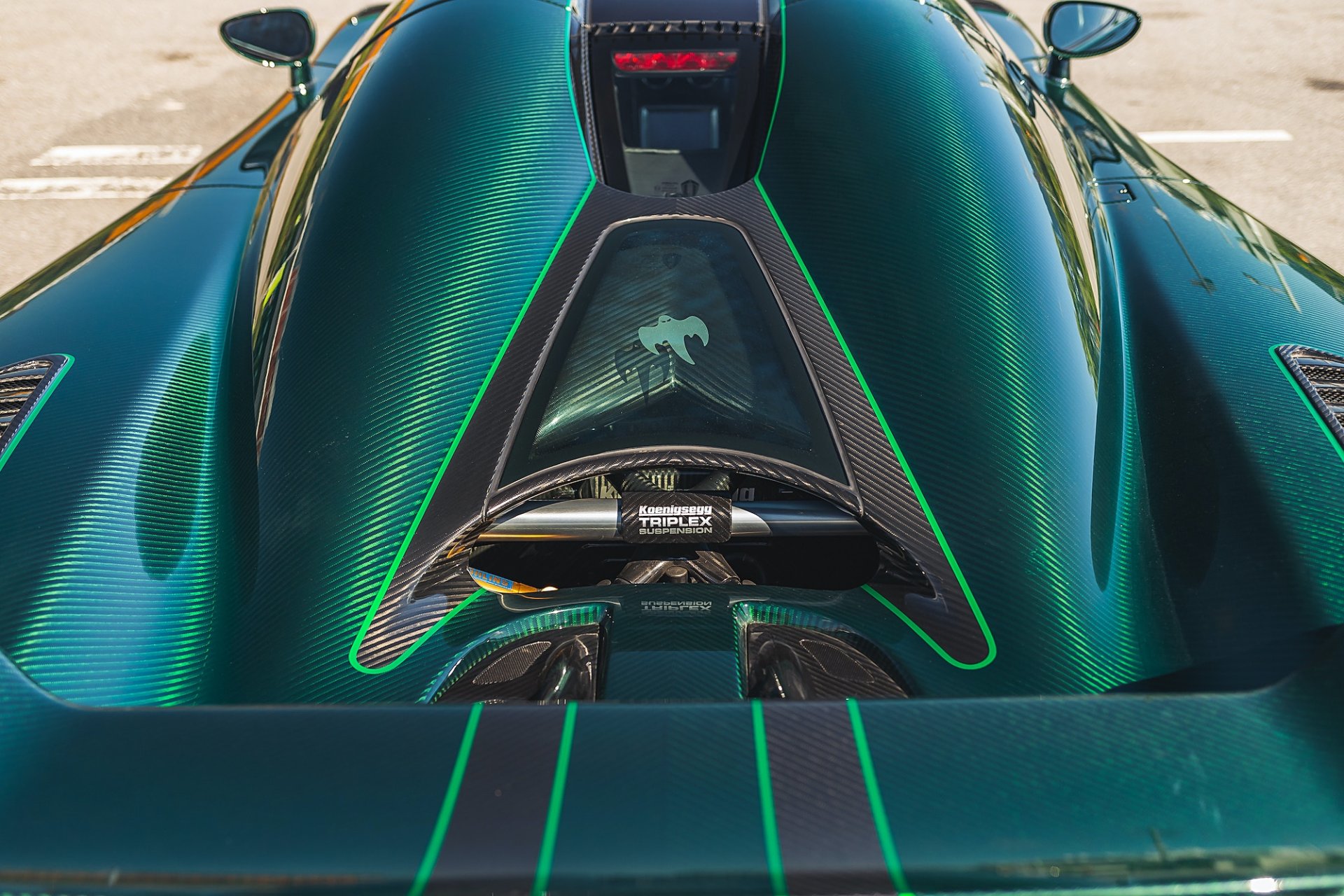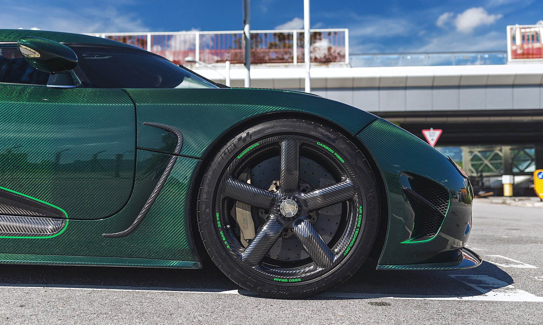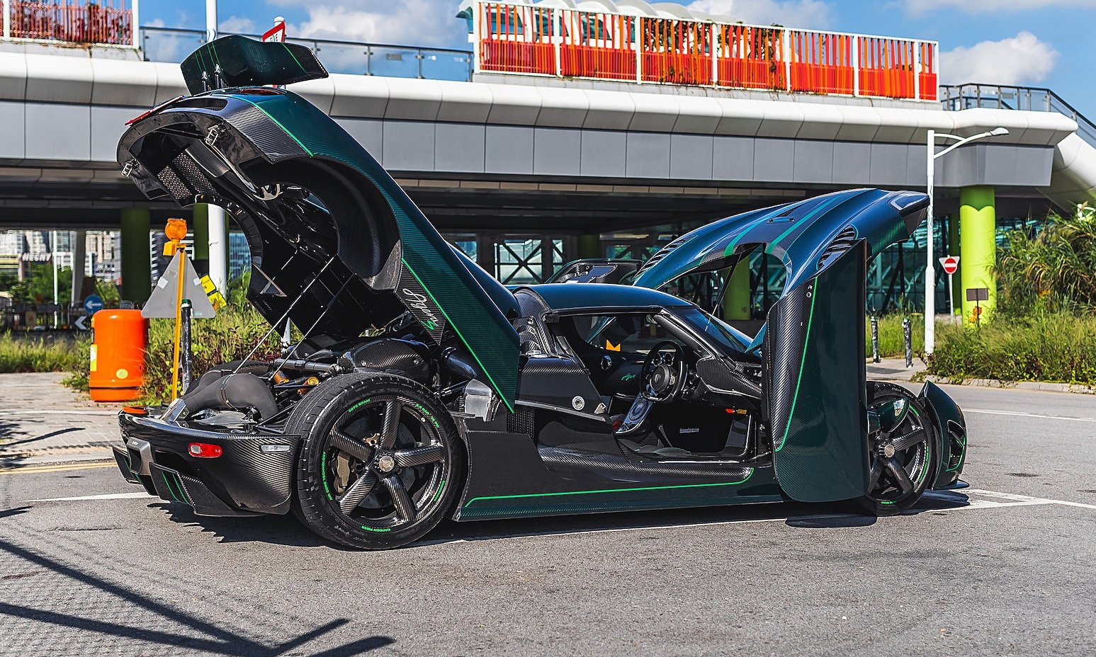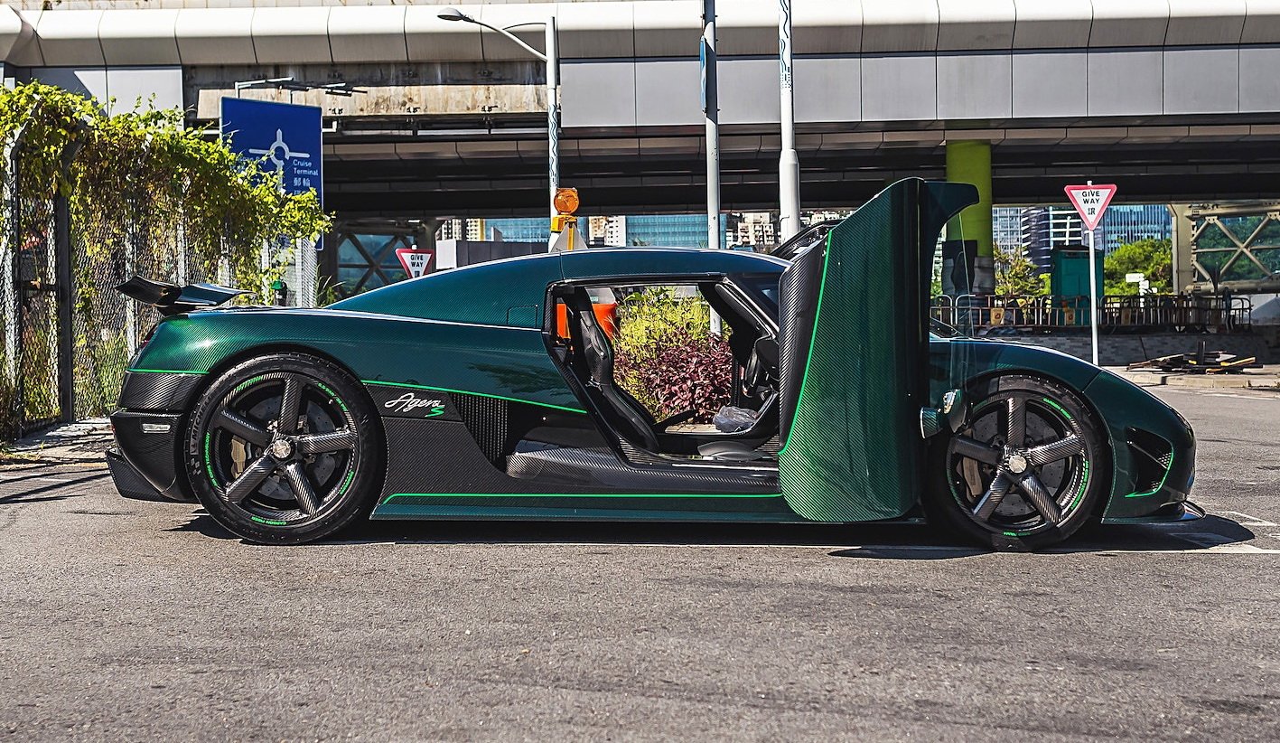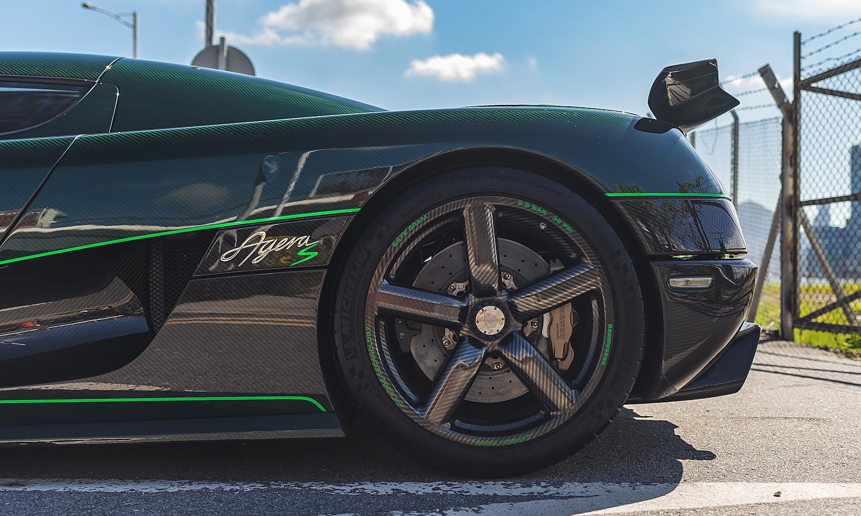 Koenigsegg Agera S ไฮเปอร์คาร์สุดหายากคันนี้ ผ่านการวิ่งมาเพียง 3,323 กม. ถูกเซ็คสภาพเปลี่ยนถ่ายน้ำมันเครื่องมาเรียบร้อยโดยทางโคนิกเซกก์ฮ่องกง ตัวถังภายนอกใหม่กริ๊บไร้ร่องรอยเป็นแบบ Exposed carbon โชว์ลายคาร์บอนสีเขียวทั้งคัน และเสริมลายเส้นสีเขียวนีออนให้ดูจิ๊ดจ๊าด ดีไซน์ตัวรถออกแบบมาเพื่อทำความเร็วสูง ให้แรงกดสูงถึง 300 กก. ที่ความเร็ว 250 กม./ชม. น้ำหนักรถเปล่าสุดเบาเพียง 1,330 กก. เบรกใช้จานคาร์บอน-เซรามิก ขนาดด้านหน้า 397 มม. คาลิปเปอร์ 6 สูบ และหลัง 380 มม. คาลิปเปอร์ 4 สูบ ล้อด้านหน้าขนาด 19 นิ้ว หลัง 20 นิ้ว ก็เป็นแบบคาร์บอนไฟเบอร์ Hollow Space Carbon Fiber Aircore ที่เบากว่าล้ออัลลอยปกติถึง 40%