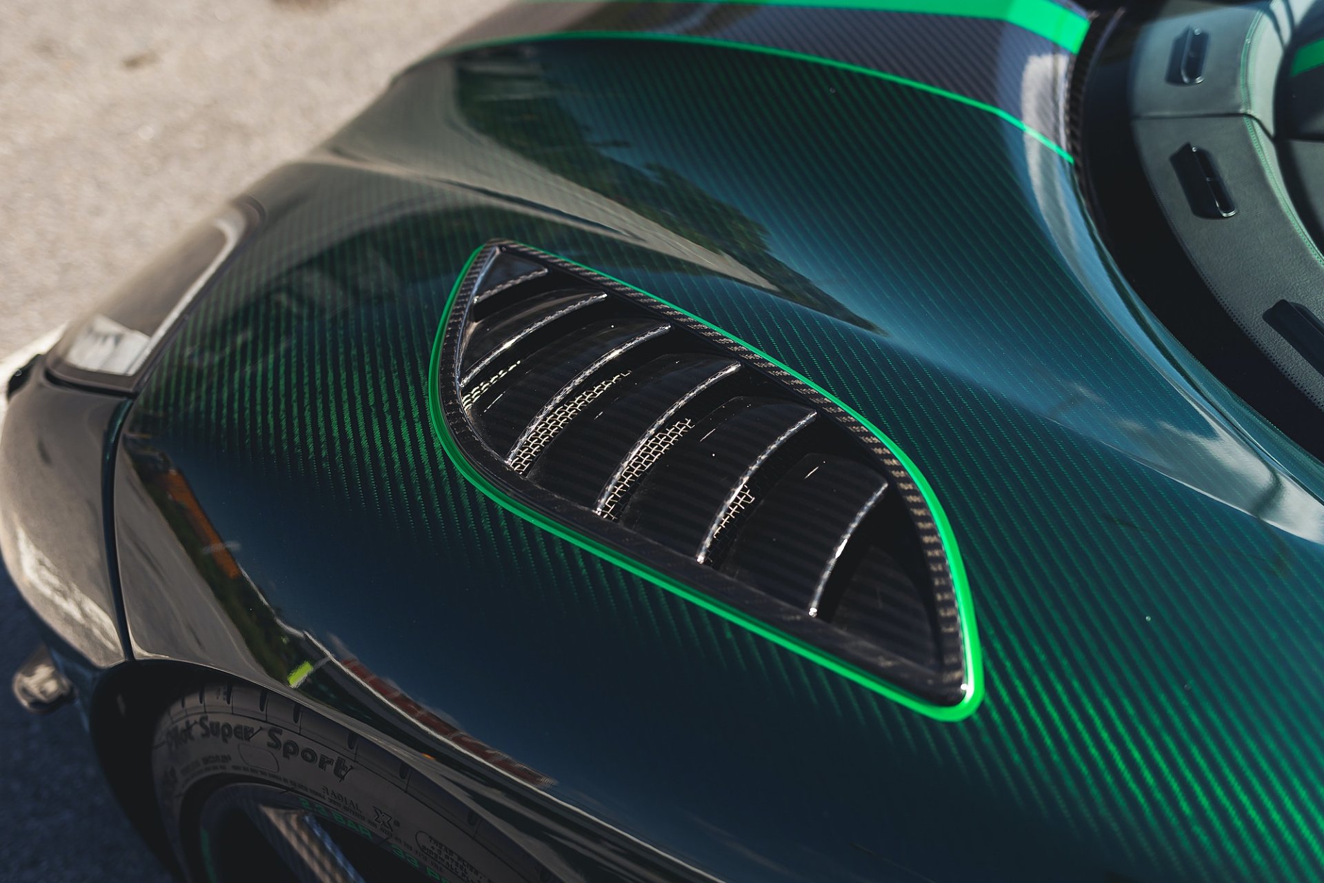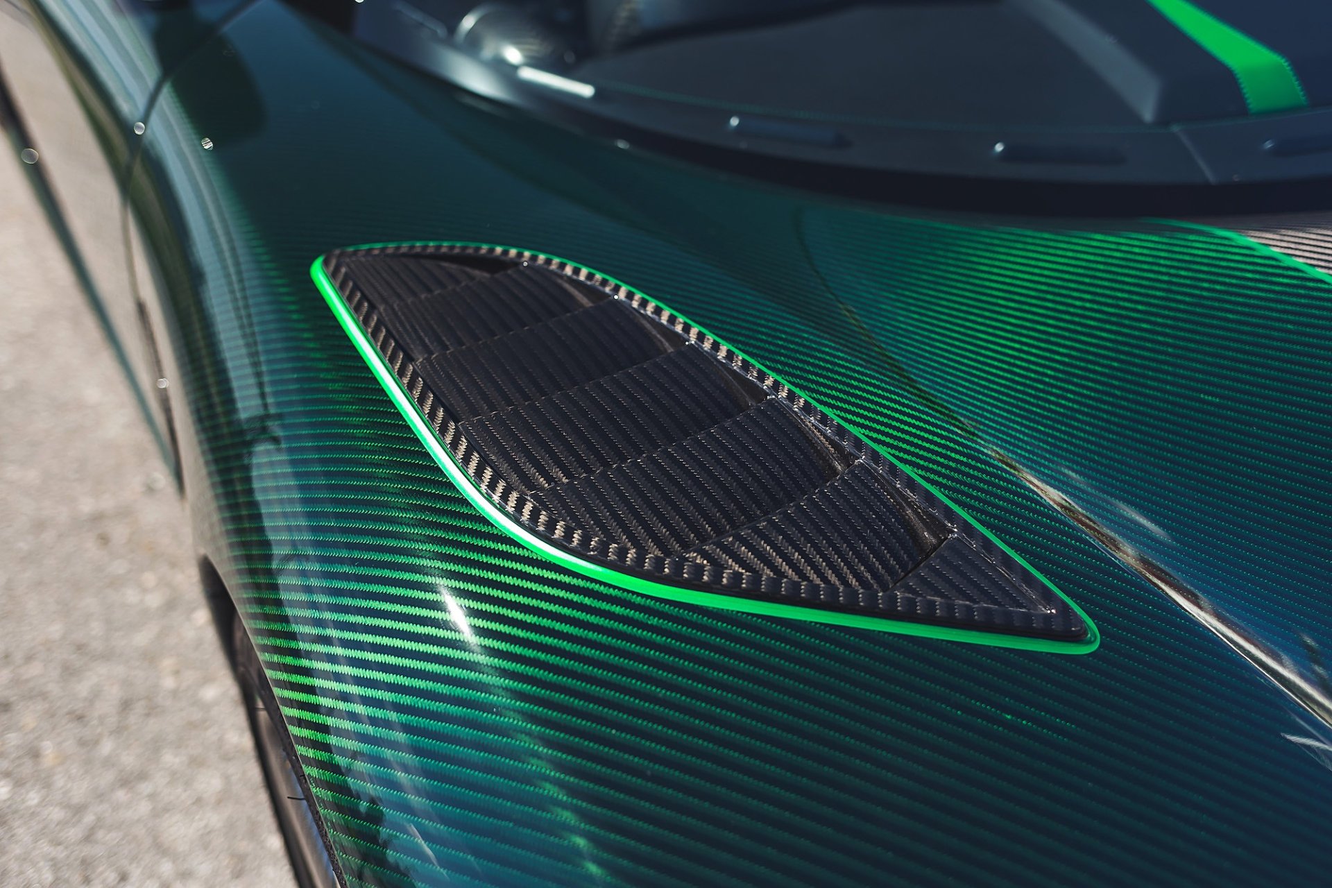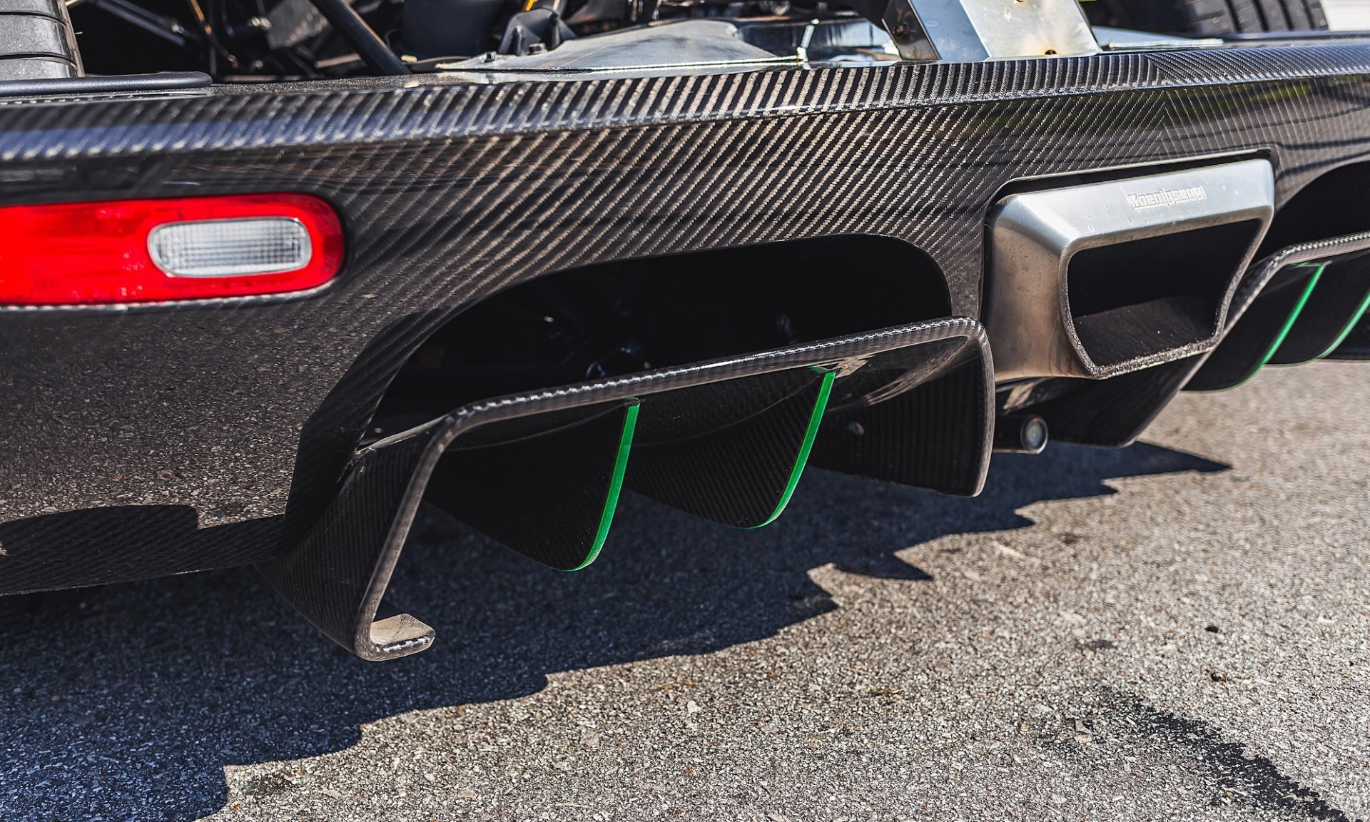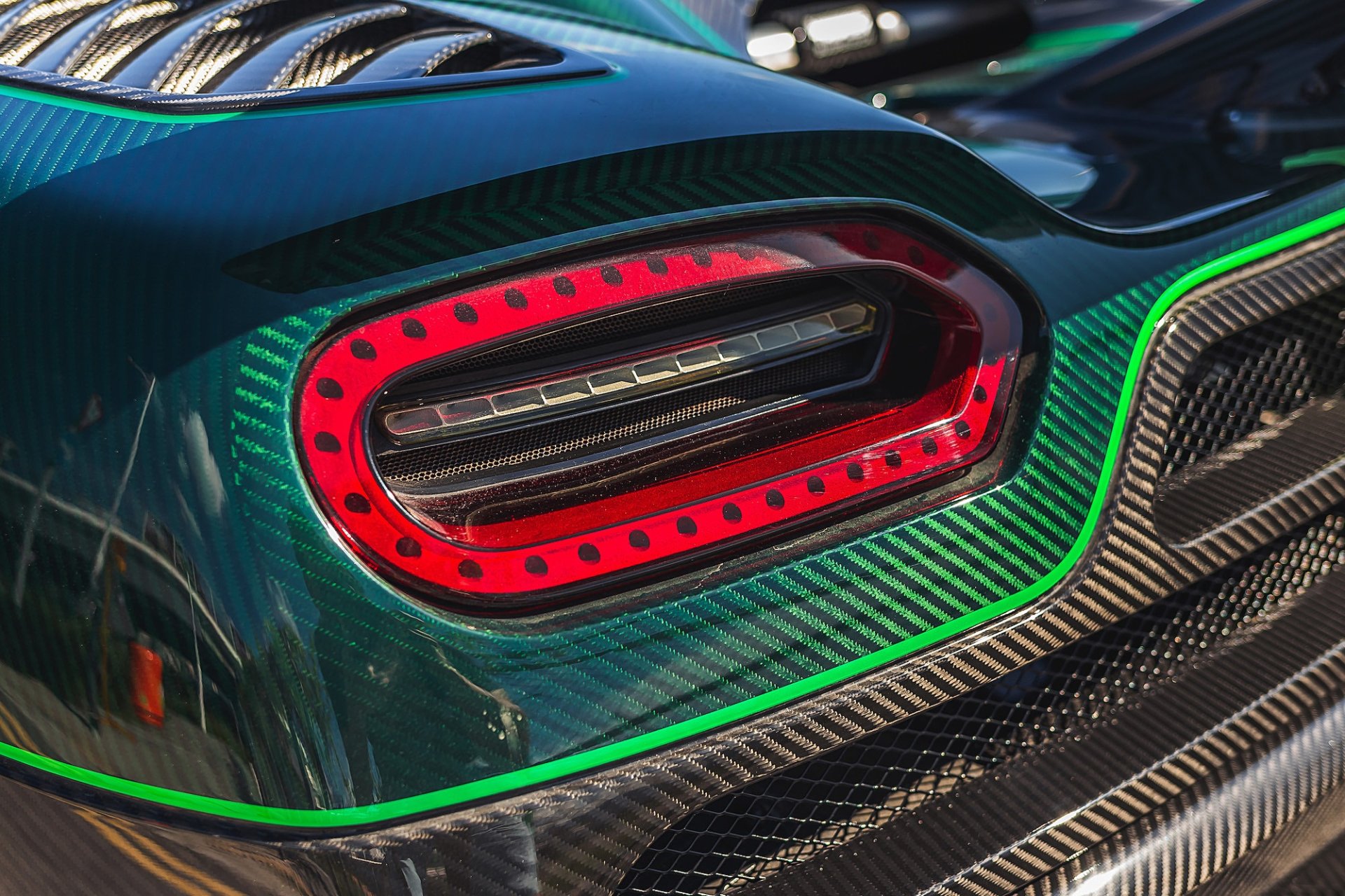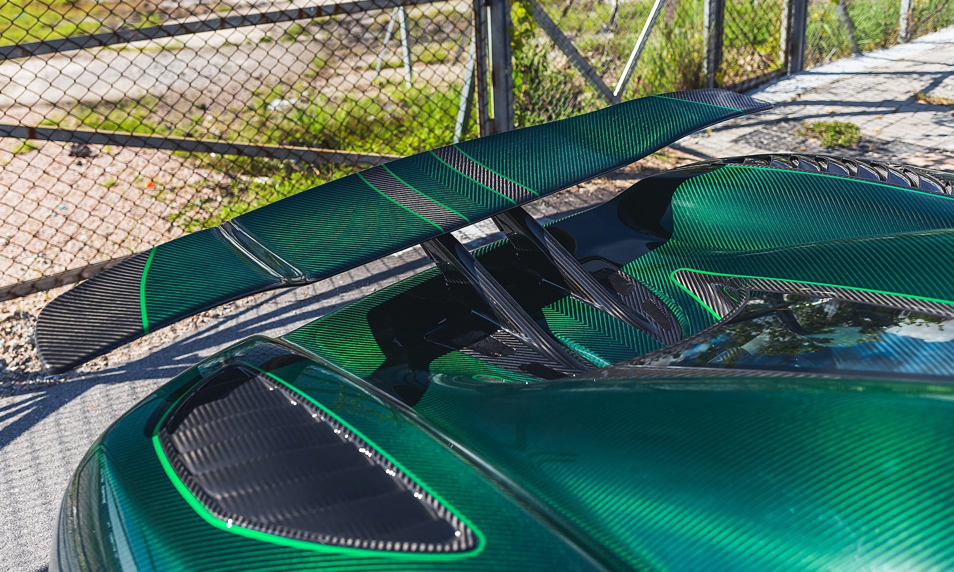 Koenigsegg Agera S ไฮเปอร์คาร์สุดหายากคันนี้ ผ่านการวิ่งมาเพียง 3,323 กม. ถูกเซ็คสภาพเปลี่ยนถ่ายน้ำมันเครื่องมาเรียบร้อยโดยทางโคนิกเซกก์ฮ่องกง ตัวถังภายนอกใหม่กริ๊บไร้ร่องรอยเป็นแบบ Exposed carbon โชว์ลายคาร์บอนสีเขียวทั้งคัน และเสริมลายเส้นสีเขียวนีออนให้ดูจิ๊ดจ๊าด ดีไซน์ตัวรถออกแบบมาเพื่อทำความเร็วสูง ให้แรงกดสูงถึง 300 กก. ที่ความเร็ว 250 กม./ชม. น้ำหนักรถเปล่าสุดเบาเพียง 1,330 กก. เบรกใช้จานคาร์บอน-เซรามิก ขนาดด้านหน้า 397 มม. คาลิปเปอร์ 6 สูบ และหลัง 380 มม. คาลิปเปอร์ 4 สูบ ล้อด้านหน้าขนาด 19 นิ้ว หลัง 20 นิ้ว ก็เป็นแบบคาร์บอนไฟเบอร์ Hollow Space Carbon Fiber Aircore ที่เบากว่าล้ออัลลอยปกติถึง 40%