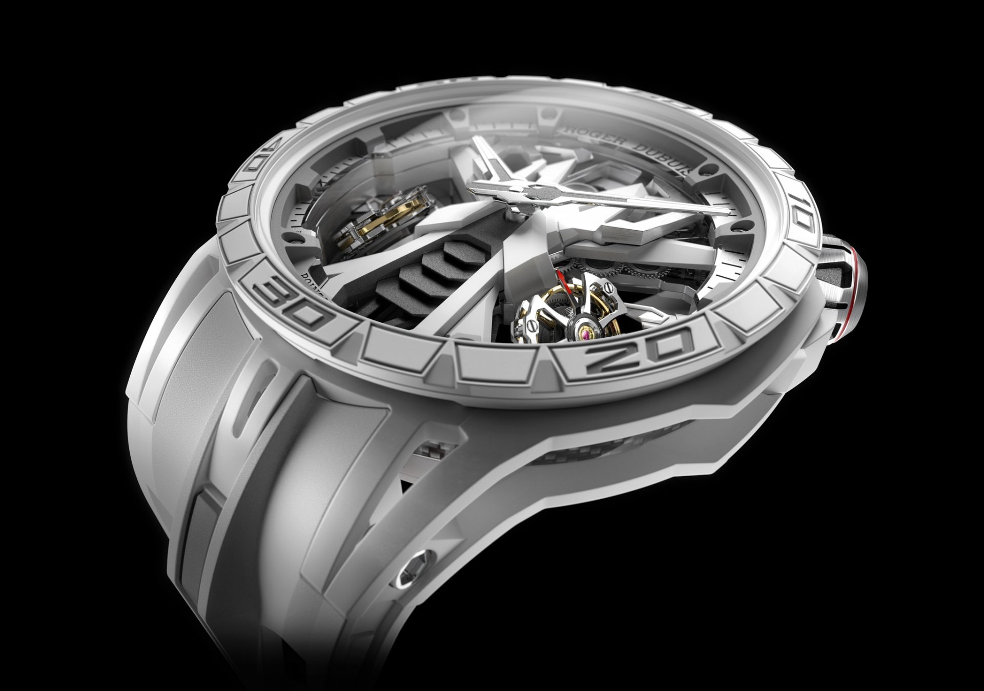 Roger Dubuis Excalibur Spider Countach DT/X หรือถ้าชื่อยาวไปเรียกสั้นๆ ว่า "RD112" ตัวเรือนขนาด 47 มม. มาในสีขาวมุก Bianco Siderale แบบเดียวกับรถ Countach ใช้วัสดุ Mineral Composite Fiber (MCF) ซึ่งเป็นเทคโนโลยีขั้นสูงเอกสิทธิ์เฉพาะพวกเขา วัสดุนี้เบากว่าเซรามิก 2.5 เท่า และเบากว่าคาร์บอน SMC 13% ดีไซน์หน้าปัด โชว์รายละเอียดที่พบได้บนรถ Countach เช่น บานเกล็ดฝาครอบเครื่องยนต์ หลังคากระจก Periscopio และช่องดักอากาศ NACA duct โดดเด่นด้วยกลไก Tourbillon คู่ แยกสองฝั่งเอียงทำมุม 90° เป็นตัว V เพื่อชดเชยผลกระทบของแรงโน้มถ่วงทั้งแนวนอนและแนวตั้ง สามารถสำรองพลังงานได้ 72 ชม. ชิ้นส่วนภายในมีมากถึง 295 ชิ้น