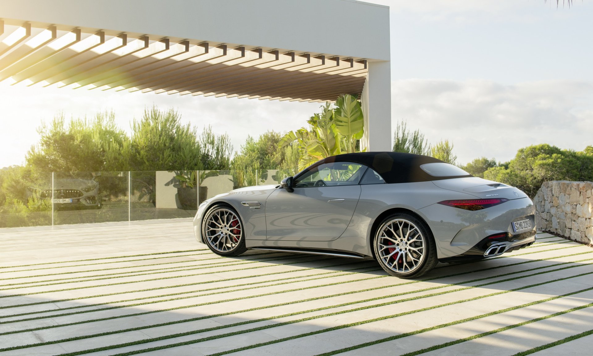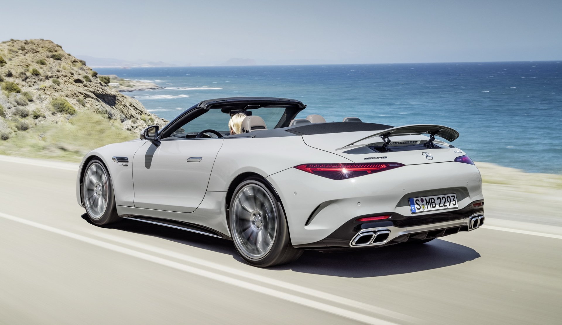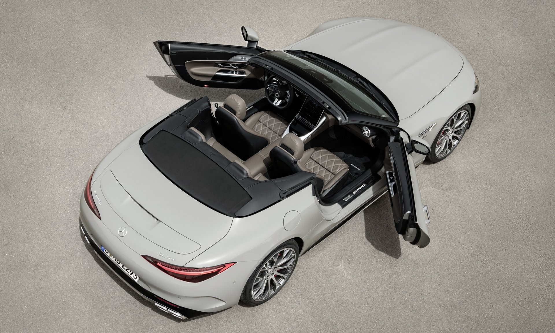 Mercedes-AMG SL นี่คือ Roadster รุ่นใหม่ที่จะมาแทนที่ AMG GT Roadster มากับโครงสร้าง Aluminium Spaceframe ใหม่ทั้งหมดไม่ใช้ร่วมกับรุ่นใด วัสดุผสานทั้ง อลูมิเนียม, เหล็ก, แมกนีเซียม, ไฟเบอร์ เพื่อมาช่วยลดน้ำหนัก ระบบกันสะเทือน 4 ล้อ แบบ Double Wishbone พร้อมระบบ AMG Active Ride Control หลังคาแบบผ้าใบทำงานในเวลา 15 วินาที มีสปอยเลอร์ท้ายแบบแอคทีฟ ตัวถังภายนอกสามารถเลือกแพ๊คเกจออกแบบได้ 3 สไตล์ คือ Chrome Package จะเน้นหรูมีโครเมียมเงารอบคัน, Night Package จะเน้นสีดำมันวาว และ Carbon Package เน้นดุๆ ด้วยคาร์บอนไฟเบอร์ บนสปลิตเตอร์ด้านหน้า กรอบกระจกมองข้าง และดิฟฟิวเซอร์หลัง ล้อรุ่น SL 63 จะได้ขอบ 20 นิ้ว สวมยางหน้า 265/40 ZR20 และหลัง 295/35 R20 ส่วน SL 55 ใส่ล้อ 19 นิ้ว พร้อมยางหน้า 255/45 ZR19 และหลัง 285/40 ZR19 ระบบเบรก 2 รุ่น ใช้จานหน้า 390 มม. คาลิปเปอร์เบรก 6 สูบ จานหลัง 360 มม. คาลิปเปอร์ 4 สูบ