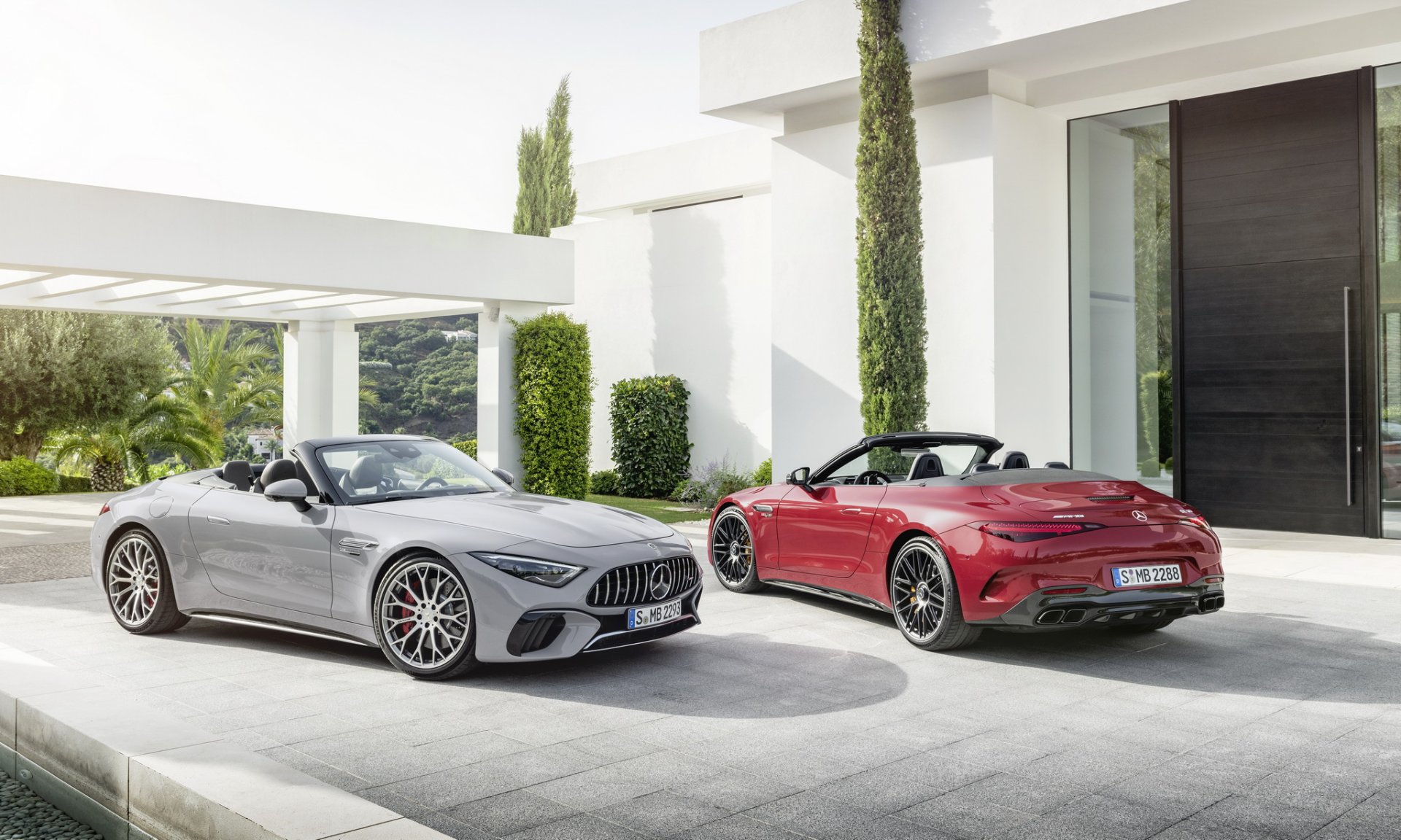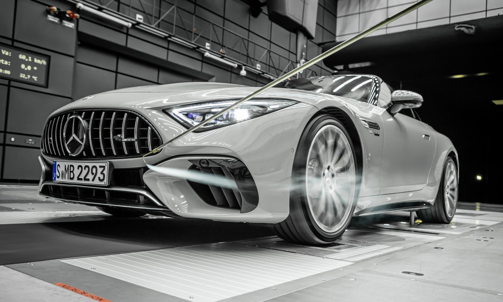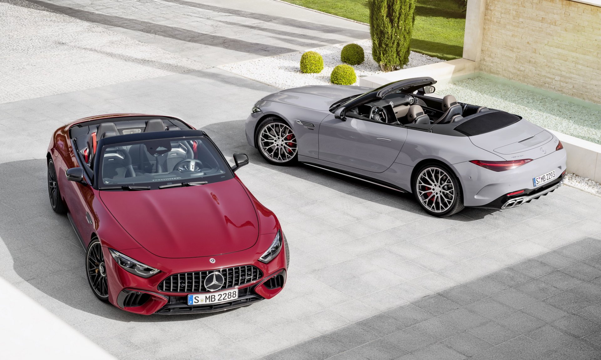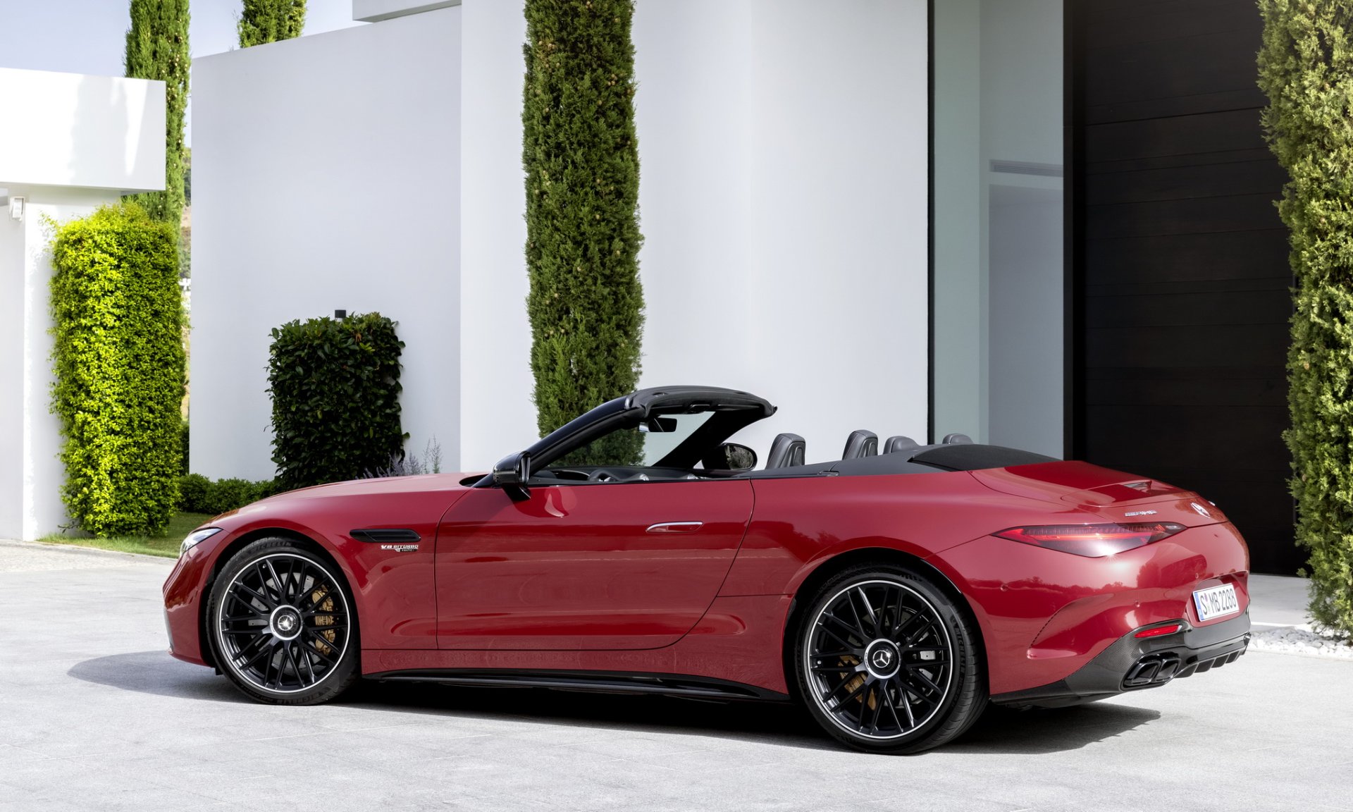 Mercedes-AMG SL นี่คือ Roadster รุ่นใหม่ที่จะมาแทนที่ AMG GT Roadster มากับโครงสร้าง Aluminium Spaceframe ใหม่ทั้งหมดไม่ใช้ร่วมกับรุ่นใด วัสดุผสานทั้ง อลูมิเนียม, เหล็ก, แมกนีเซียม, ไฟเบอร์ เพื่อมาช่วยลดน้ำหนัก ระบบกันสะเทือน 4 ล้อ แบบ Double Wishbone พร้อมระบบ AMG Active Ride Control หลังคาแบบผ้าใบทำงานในเวลา 15 วินาที มีสปอยเลอร์ท้ายแบบแอคทีฟ ตัวถังภายนอกสามารถเลือกแพ๊คเกจออกแบบได้ 3 สไตล์ คือ Chrome Package จะเน้นหรูมีโครเมียมเงารอบคัน, Night Package จะเน้นสีดำมันวาว และ Carbon Package เน้นดุๆ ด้วยคาร์บอนไฟเบอร์ บนสปลิตเตอร์ด้านหน้า กรอบกระจกมองข้าง และดิฟฟิวเซอร์หลัง ล้อรุ่น SL 63 จะได้ขอบ 20 นิ้ว สวมยางหน้า 265/40 ZR20 และหลัง 295/35 R20 ส่วน SL 55 ใส่ล้อ 19 นิ้ว พร้อมยางหน้า 255/45 ZR19 และหลัง 285/40 ZR19 ระบบเบรก 2 รุ่น ใช้จานหน้า 390 มม. คาลิปเปอร์เบรก 6 สูบ จานหลัง 360 มม. คาลิปเปอร์ 4 สูบ