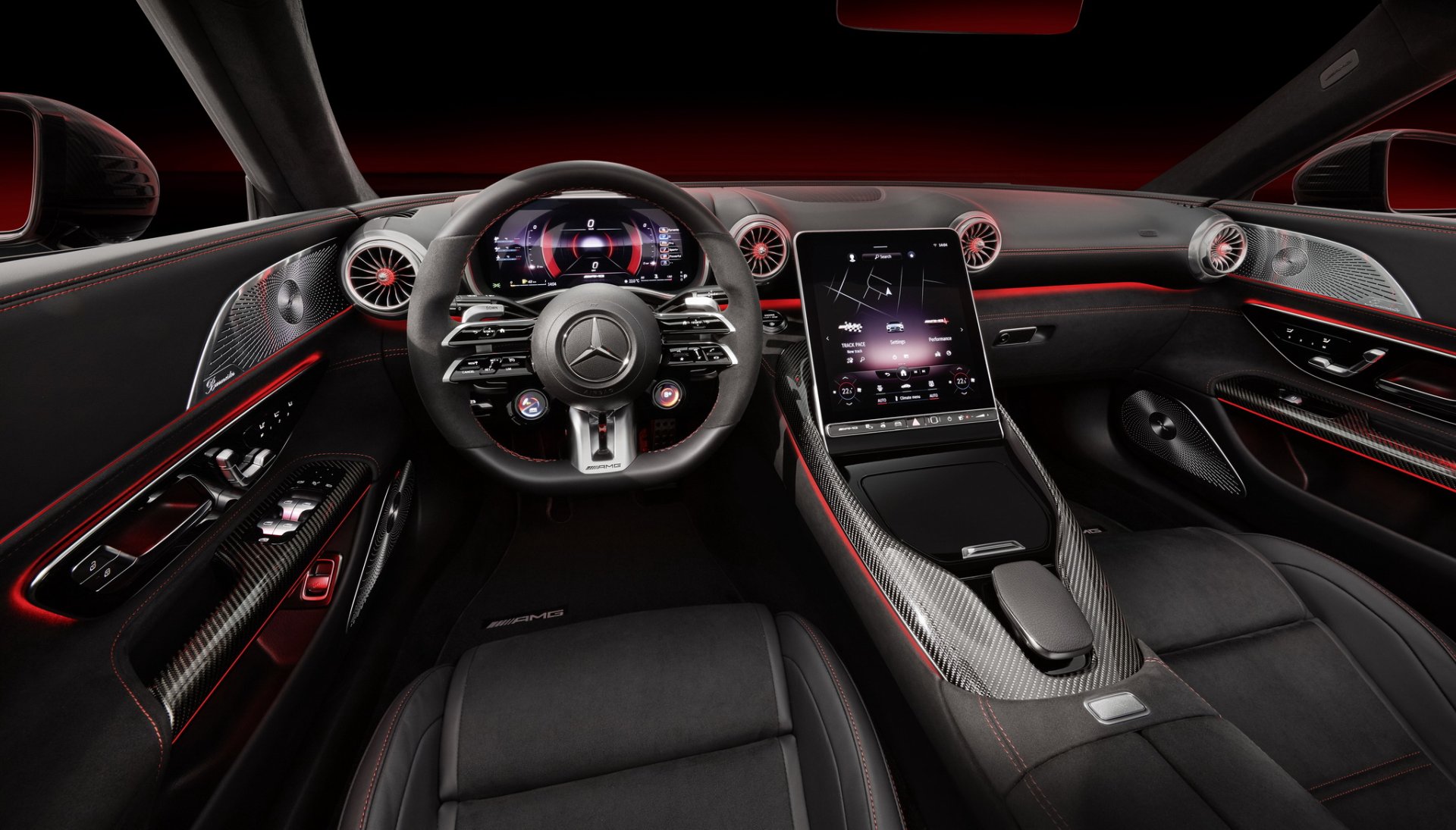 ภายในห้องโดยสารสปอร์ตพรีเมี่ยมทีเดียว พวงมาลัยแบบ AMG Performance มีลูกบิดจอสีพร้อมให้คุณเลือกโหมดการขับขี่ได้เลยทั้ง Comfort, Sport, Sport+ และ Race มาตรวัดเป็นแบบดิจิตอลใหญ่ถึง 12.3 นิ้ว ถูกครอบด้วยกระบังกันแสงแดดทรงล้ำ ช่องแอร์แบบกังหันเครื่องบิน คอนโซลกลางเน้นความเรียบง่าย มีดีไซน์เว้าเป็นช่องดักอากาศ NACA Duct แบบที่พบใน AMG GT และ GT 4-Door Coupé หน้าจอสัมผัสแบบแนวตั้งขนาด 11.9 นิ้ว ที่ตัวจอยังมีฟังก์ชั่นปรับเอียงได้เป็นระบบไฟฟ้า ตั้งแต่ 12-32 องศา ไว้ใช้เอียงหลบแสงสะท้อนเวลาเปิดประทุน และในรุ่น SL 65 ยังติดตั้ง AMG TRACK PACE มาให้มาตรฐาน (SL 55 ต้องจ่ายเพิ่ม) เป็นตัวบันทึกข้อมูลการขับขี่ของเรา เหมือนของพวก ลัมโบ เฟอร์ เช่น ความเร็ว, อัตราเร่ง, องศาการเลี้ยว, การกดคันเร่ง และอิ่นๆ รวมกว่า 80 อย่าง ซึ่งสามารถโชว์ให้ดูได้เลยแบบ Real Time กว่า 40 รายการ ผ่านหน้าจอกลาง และยังมีกล้องวิดีโอให้คุณซื้อเพิ่มด้วย ใครชอบวิ่งในสนามแข่งน่าจะถูกใจสิ่งนี้