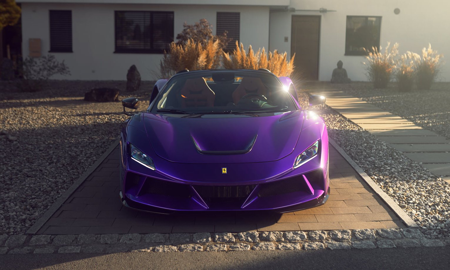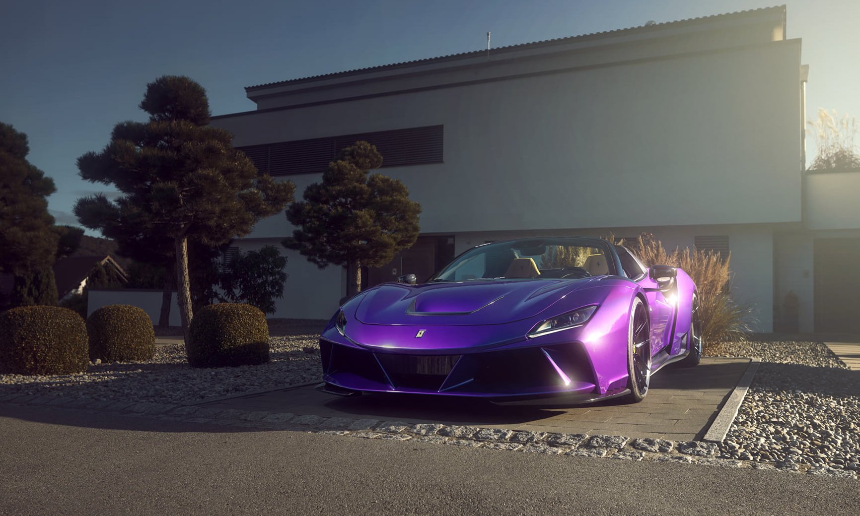 Novitec Ferrari F8 N-Largo Spider ถือเป็นตัวจบสุดทางของ Novitec แล้ว ภายนอกจัดมาให้ดุๆ ด้วยชุดตัวถังคาร์บอนไฟเบอร์ Wide body ออกแบบโดยดีไซน์เนอร์ชาวเยอรมัน Vittorio Strosek ตัวรถดูบึกขึ้นกว้างกว่าเดิม 13 ซม. มีการทดสอบด้านแอร์โรไดนามิกในอุโมงค์ลมเรียบร้อย พร้อมเสริมด้วยชิ้นส่วนคาร์บอนฯ อัดแน่นรอบคัน ใส่ล้อฟอร์จหน้าขนาด 21 หลัง 22 นิ้ว ลาย NF10 NL ZV (เลือกสีเองได้) คู่กับยางขนาดด้านหน้า 255/30 หลัง 335/25 ตัวรถเตี้ยลงจากเดิม 35 มม. จากการได้สปริงใหม่สวมเข้ากับโช๊คเดิมโรงงาน และสามารถติดชุดปรับไฮดรอลิคเพิ่มได้ เอาไว้หลบลูกระนาดขึ้นทางลาด หน้ารถจะยกขึ้นได้อีก 40 มม. เพียงกดปุ่ม และจะกลับไปในระดับมาตรฐานเองอัตโนมัติเมื่อความเร็วเกิน 80 กม./ชม.