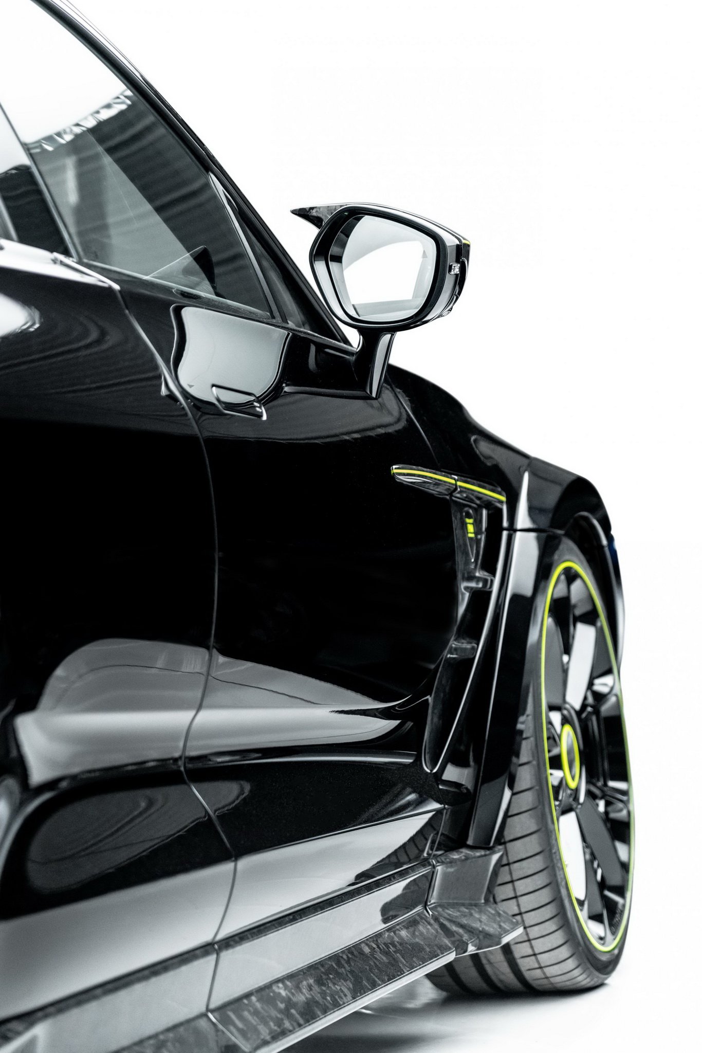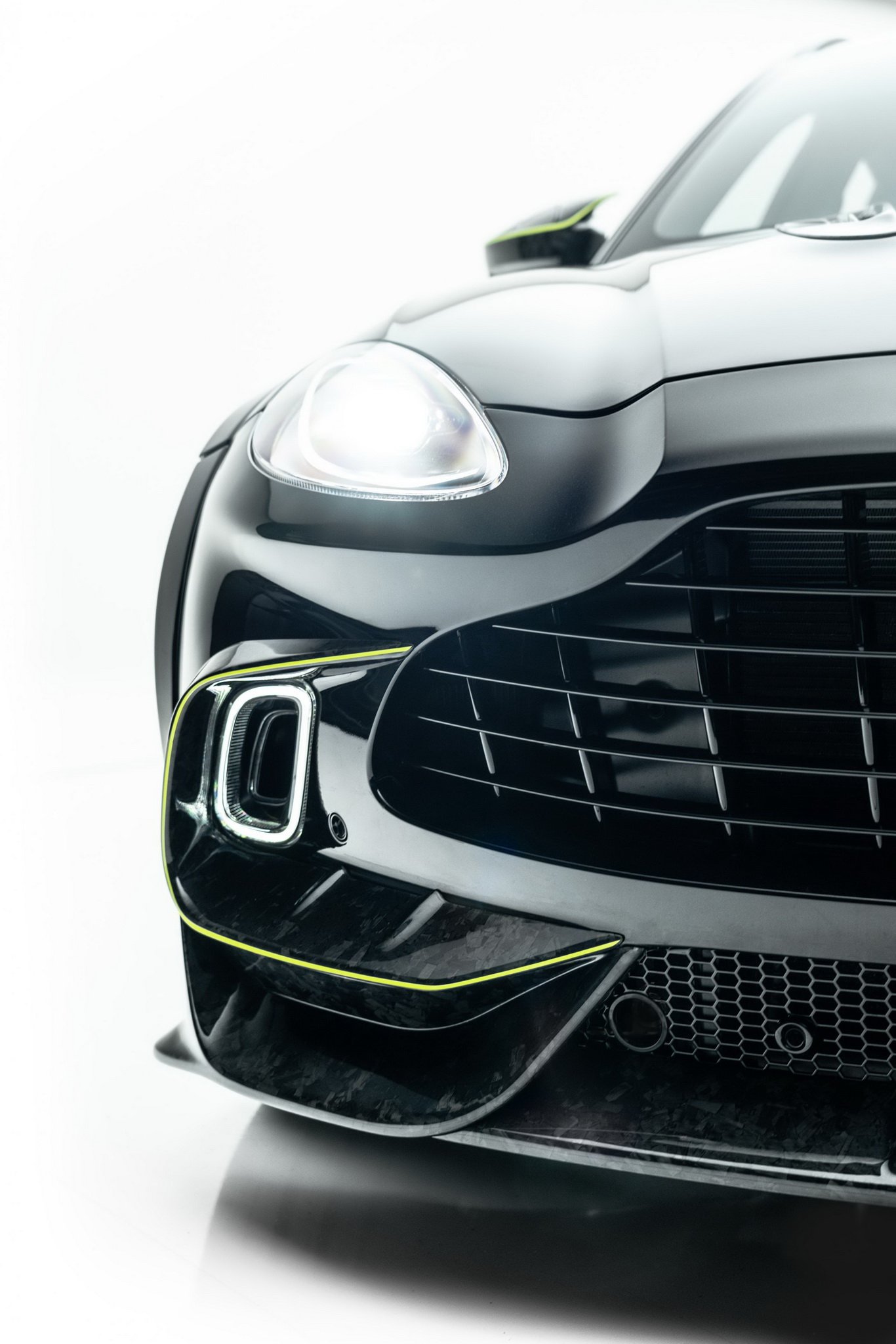 Mansory DBX มาแนวดุๆ สาดด้วยสีดำเมทัลลิค และตัดเส้นด้วยสีเขียว Limegreen ตัวถังถูกแปลงใหม่หมดรอบคันมาในสไตล์ Wide Body ที่ทั้งหล่อแล้ว ยังเพิ่มประสิทธิภาพแรงกดตัวรถด้วย ชิ้นส่วนทั้งหมดทำจากฟอร์จคาร์บอน ตั้งแต่ กันชนหน้าที่เสริมลิ้น ฝากระโปรงหน้า กรอบกระจกมองข้าง สกิร์ตข้าง แผงช่องลมข้างติดตรา P800 Performance ด้านหลังได้สปอยเลอร์แยก 2 ชิ้น บนหลังคากับฝากระโปรงท้าย สเกิร์ตหลังแบบใหม่พร้อมดิฟฟิวเซอร์ขนาดใหญ่โชว์ปลายท่อชุดใหม่แบบเต็มตา และได้ล้อลาย DX.5 ขนาด 24 นิ้ว ที่ดีไซน์มาคำนึงถึงการระบายความร้อนระบบเบรก คู่กับยางหน้าขนาด 295/30R24 และหลัง 355/25R24