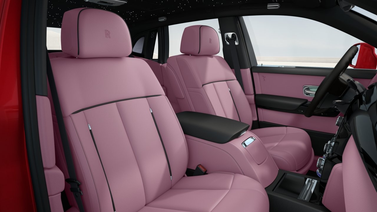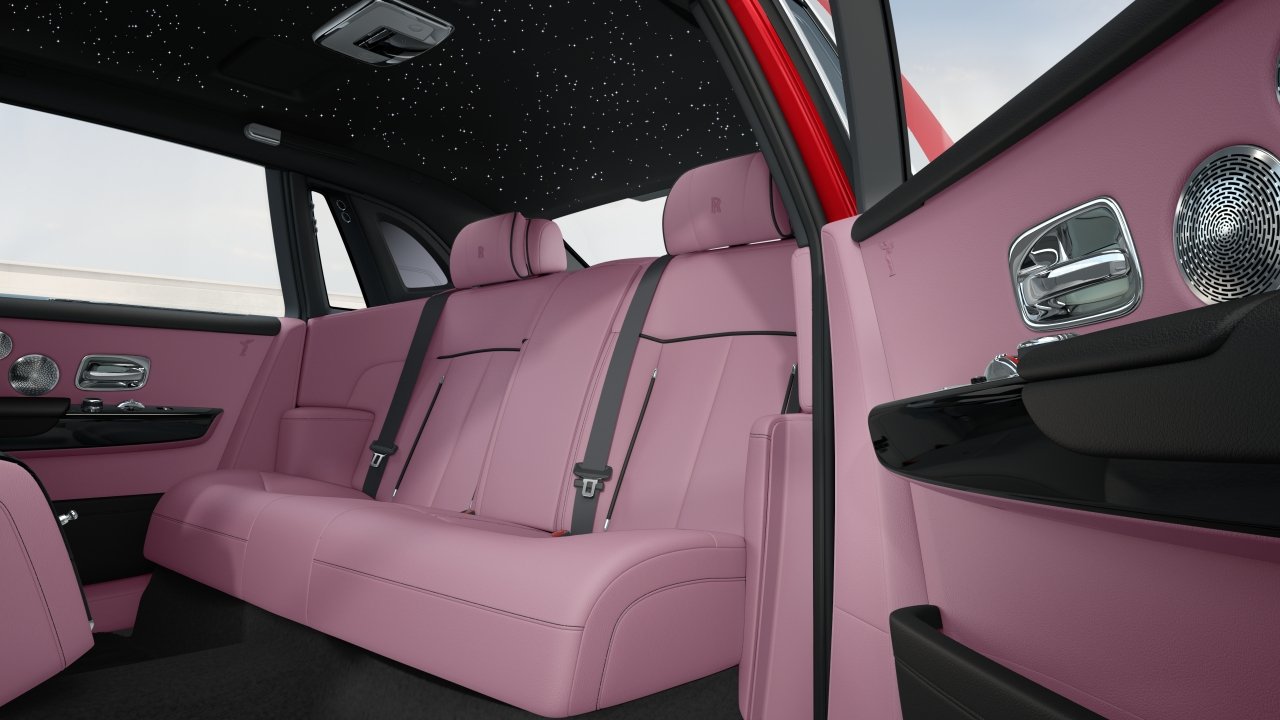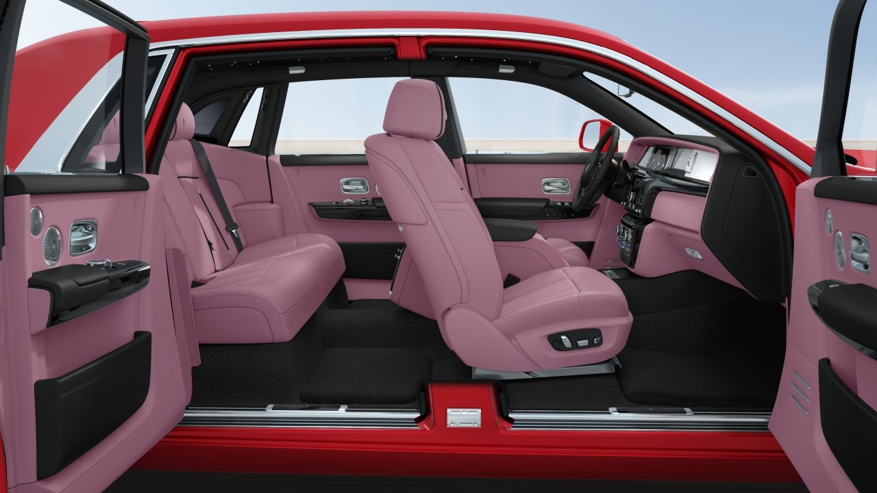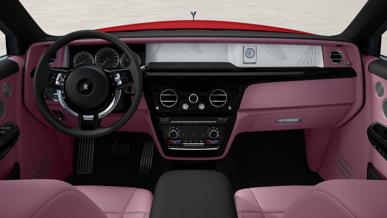 น่าเสียดายไม่มีภาพเต็มๆ ห้องโดยสารคันที่ลิซ่านั่ง แต่ถ้าให้เราสังเกตภาพนึงจะแอบเห็นมุมแผงประตู ภายใน Phantom คันนี้น่าจะทำให้สอดคล้องกับความเป็น BLACKPINK (งานมโนล้วนๆ) ใช่แล้วเรากำลังจะบอกว่า ข้างในอาจมาเป็นสีทูโทน ดำ-ชมพู โดยสีชมพูที่แอบเห็นแว๊บๆ น่าจะเป็นโทนสีพิเศษอย่าง Blushing Pink ซึ่งเข้ากันกับแฟชั่นเสื้อคลุมและชุดครอปท๊อป จากแบรนด์ Alexander Wang ที่ลิซ่าใส่มาด้วยพอดี ใครมองภาพไม่ออกว่าข้างในเป็นยังไง ทางเรามีภาพ Config ตัวรถเล่นๆ มาให้ดูด้านล่างด้วย