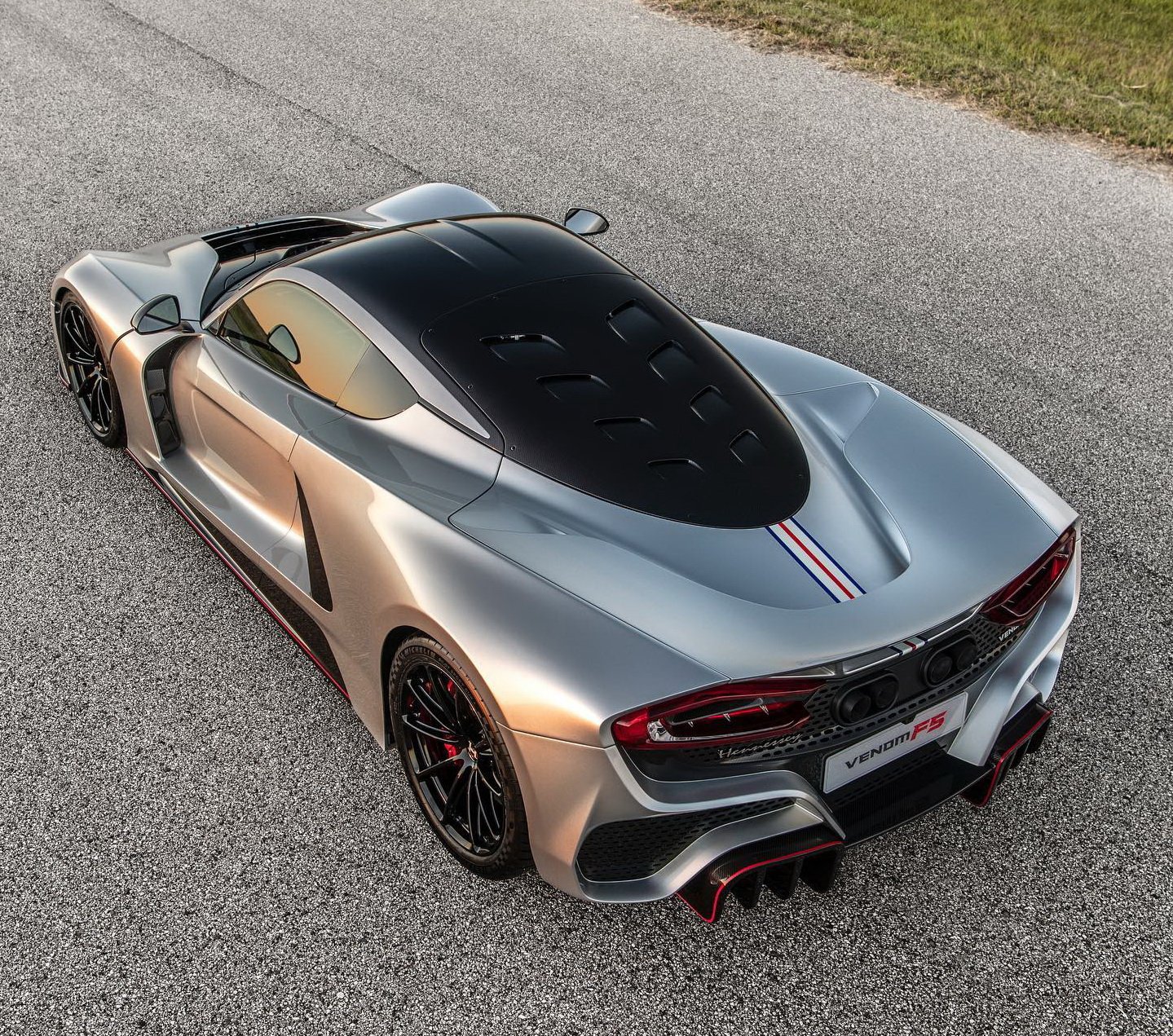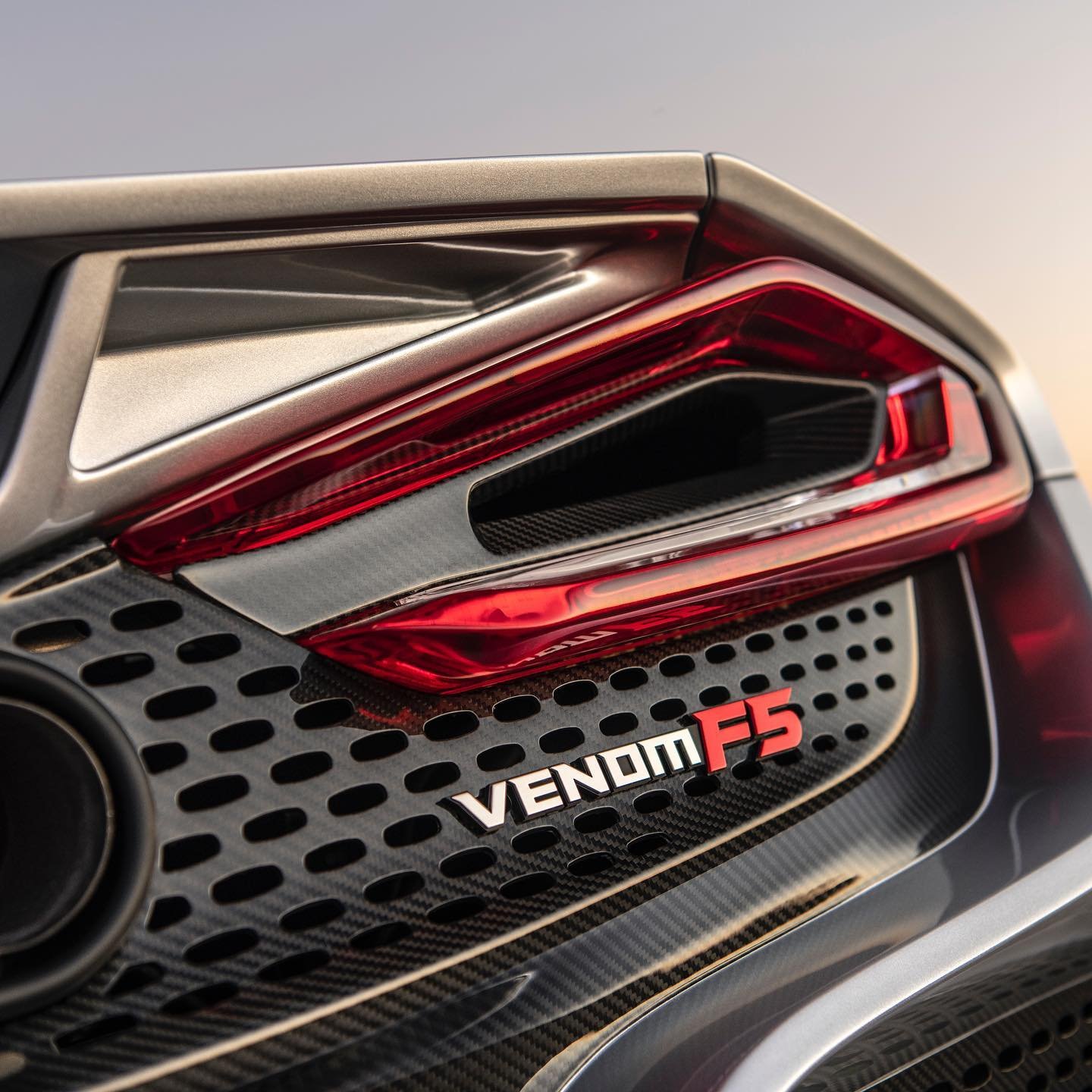 Venom F5 มีเพียง 25 คัน ในโลก โครงสร้างแซสซีส์ทำจากคาร์บอนไฟเบอร์ ตัวรถสุดเบาเพียง 1,360 กก. ใช้ขุมพลังสุดโหดนามว่า “Fury” รูปแบบวางกลาง V8 ขนาด 6,555 ซีซี เทอร์โบคู่ แตะ Redline ที่ 8,500 รอบ/นาที ส่งกำลังด้วยเกียร์ 7 สปีด คลัทซ์เดี่ยว ขับเคลื่อนล้อหลัง รีดกำลังสูงสุด 1,817 แรงม้า ที่ 8,000 รอบ/นาที แรงบิดสูงถึง 1,617 นิวตัน-เมตร ที่ 5,500 รอบ/นาที เร่ง 0-100 กม./ชม. ใน 2.6 วินาที, 0-200 ใน 4.7 วินาที, 0-300 ใน 8.4 วินาที, 0-400 ใน 15.5 วินาที กับท๊อปสปีดจัดหนักถึง 500+ กม./ชม.