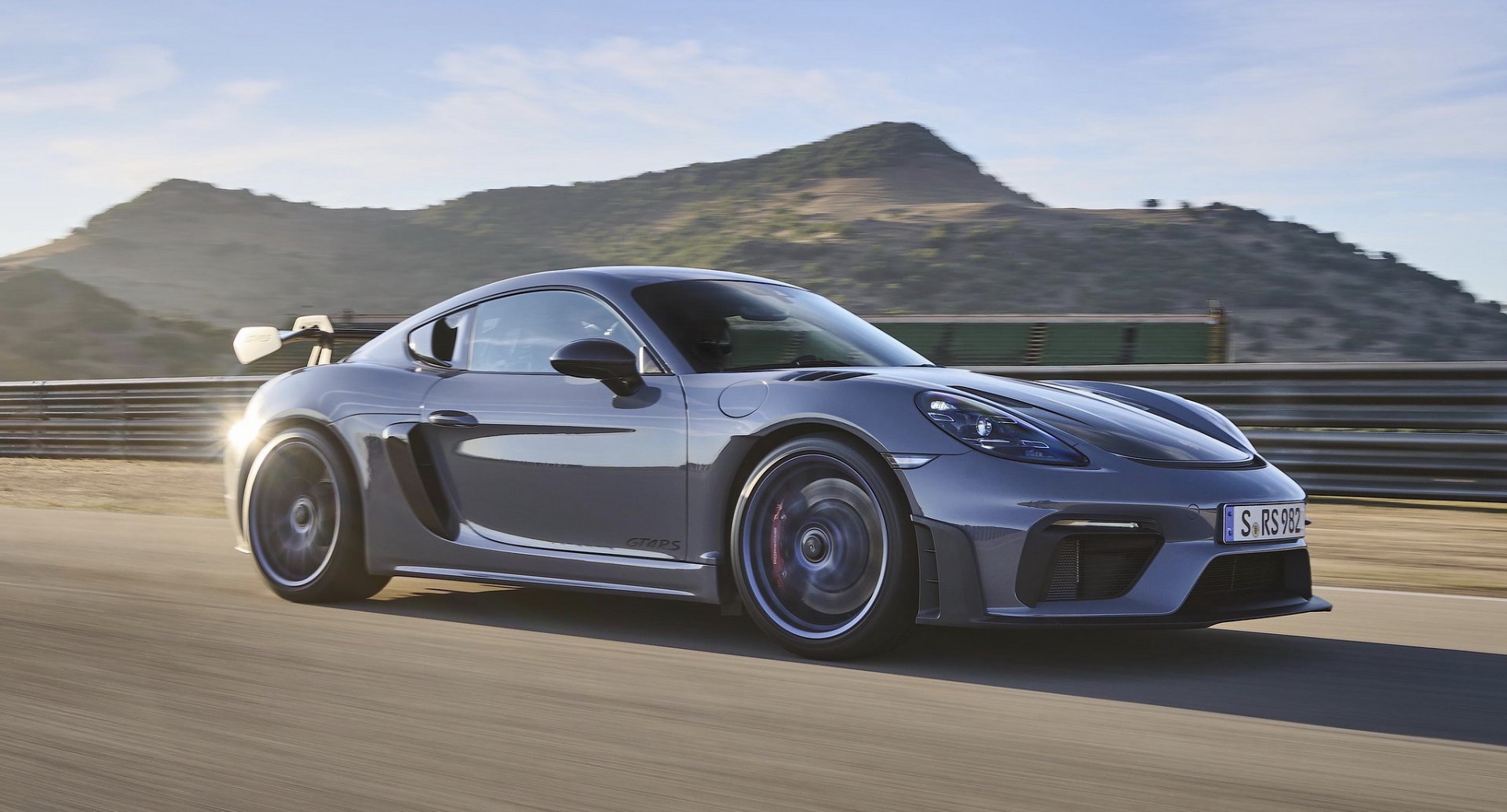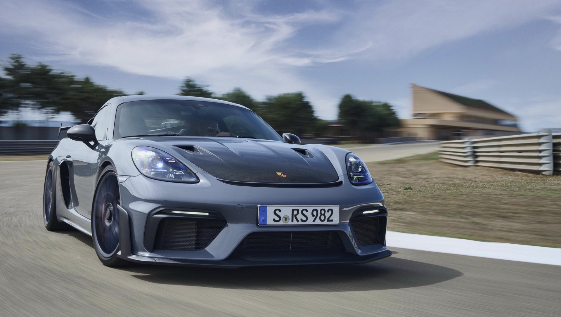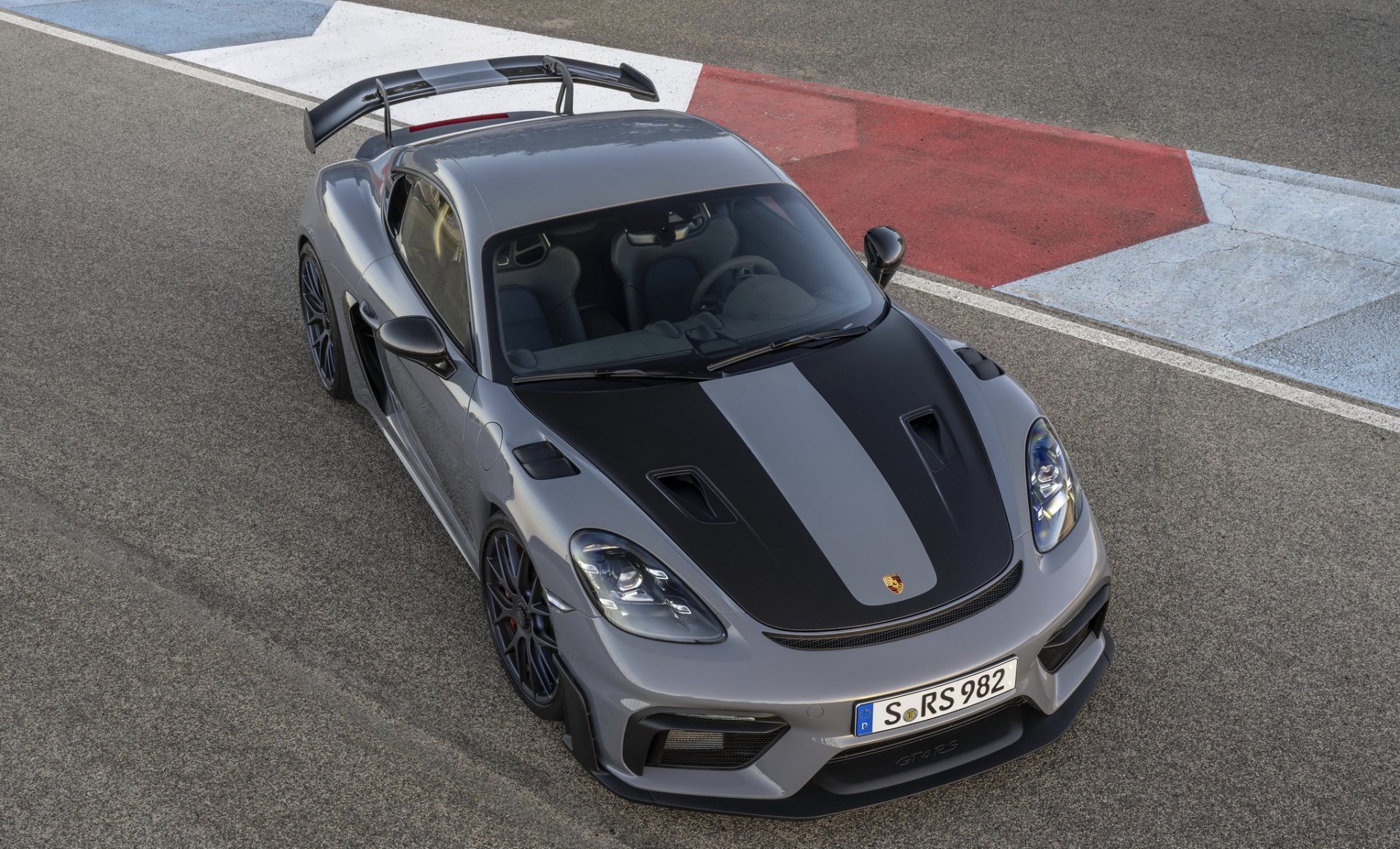 718 Cayman GT4 RS รถถนนจิตวิญญาณรถแข่ง รูปลักษณ์ภายนอกดุกว่า Cayman รุ่นอื่นชัดเจน เริ่มจากด้านหน้า กันชนจะได้ดิฟฟิวเซอร์แบบปรับได้บวกกับช่องม่านอากาศด้านข้าง ฝากระโปรงทำจากพลาสติกผสมเส้นใยคาร์บอนเสริมแรง (CFRP) เสริมด้วยช่องลม NACA Duct เอาไปช่วยระบายความร้อนระบบเบรก เหนือซุ้มล้อมีช่องบานเกล็ดช่วยระบายแรงดันอากาศส่วนเกินออกจากซุ้มล้อและเพิ่มแรงกด ด้านข้างรถตรงหน้าต่างชิ้นเล็กถูกแทนที่ด้วยช่องดักอากาศส่งเข้าเครื่องยนต์ บั้นท้ายได้ปีกหลังยึดตายตัวขนาดใหญ่ ปรับองศาด้วยมือได้ 4 ระดับ ได้ท่อไอเสียไทเทเนียมลั่นสุดในรุ่น และดิฟฟิวเซอร์ทรงเดียวกับตัว GT4 แต่แอบเสริมครีบด้านข้าง ตัวรถสร้างแรงกดได้มากกว่ารุ่น GT4 ถึง 25% ช่วงล่างมีการปรับจูนใหม่เฉพาะในรุ่น RS ให้ล้ออลูมิเนียมขนาด 20 นิ้ว แบบ Center Lock เป็นมาตรฐาน และล้อแบบแม็กนีเซียมให้จ่ายเงินเพิ่ม เบรกใช้จานเหล็ก ด้านหน้าขนาด 408 มม. คาลิปเปอร์ 6 สูบ และด้านหลังขนาด 380 มม. คาลิปเปอร์ 4 สูบ ส่วนจานคาร์บอน-เซรามิค เป็นออฟชั่นเสริมจะได้ขนาดใหญ่ขึ้น ด้านหน้า 410 มม. กับหลัง 390 มม. แถมเบากว่าแบบเหล็กถึง 50%