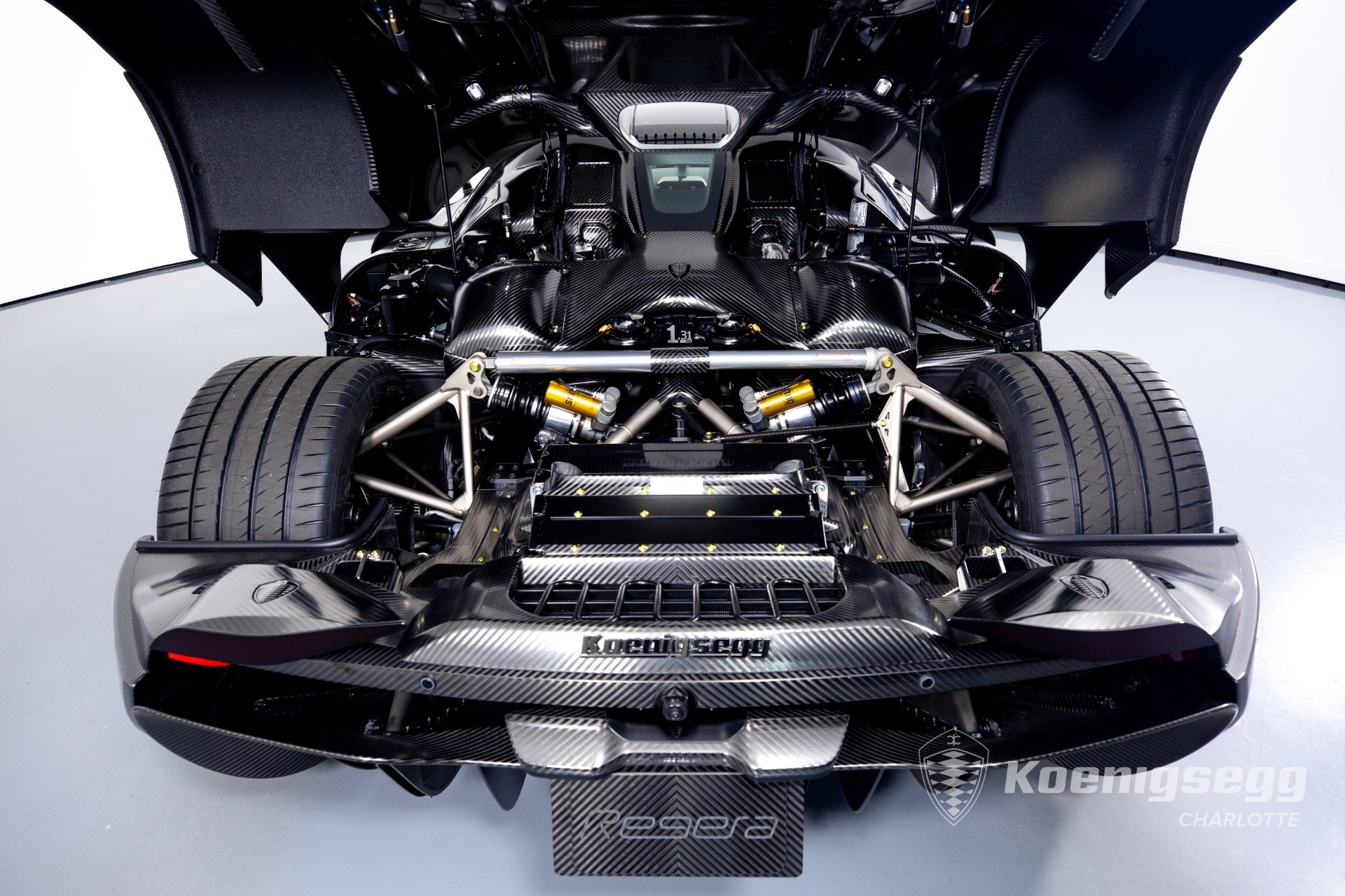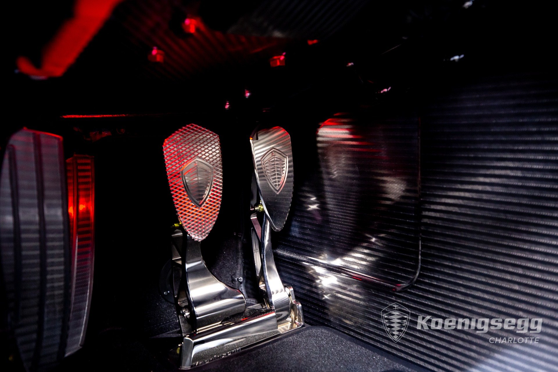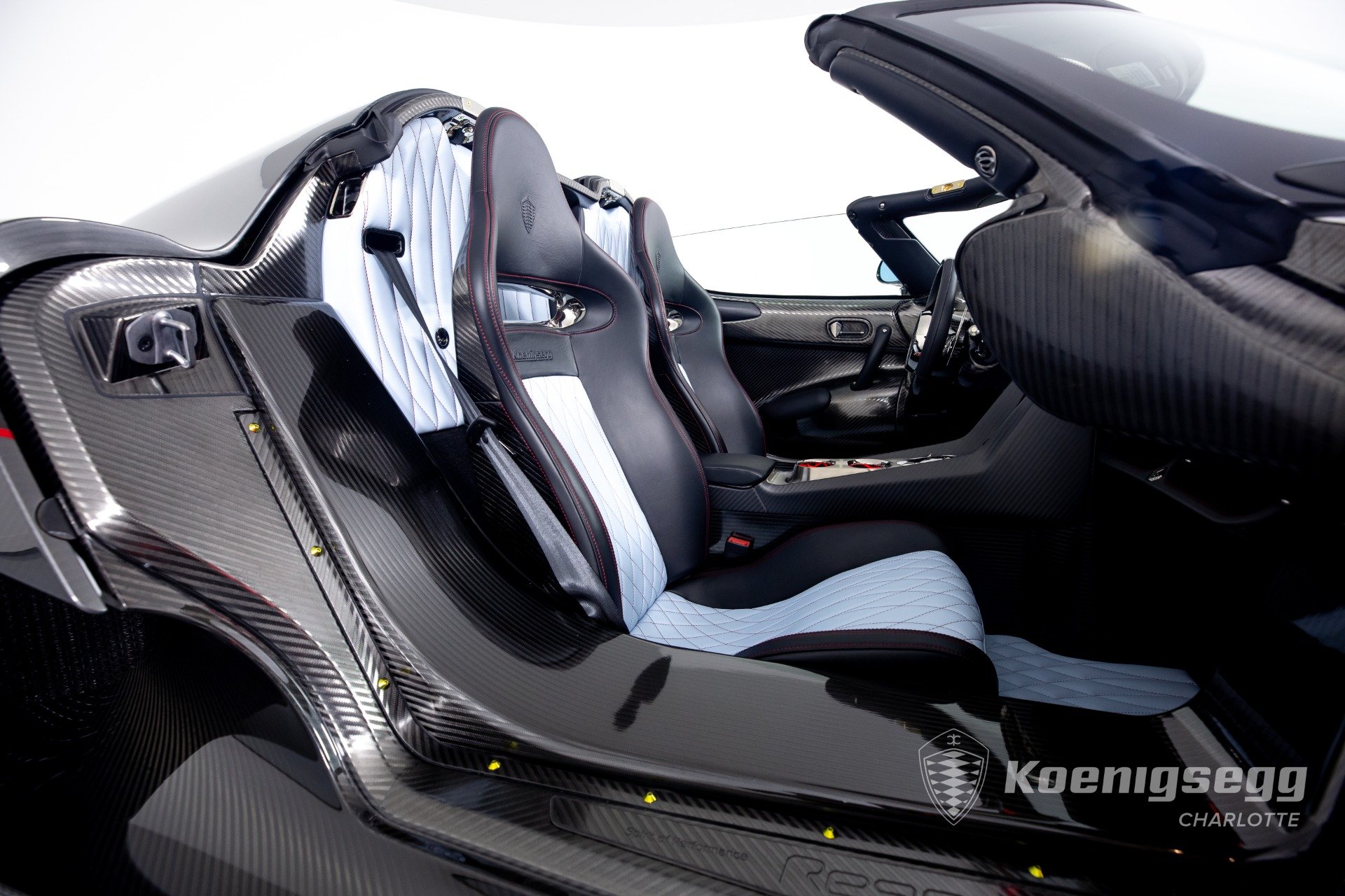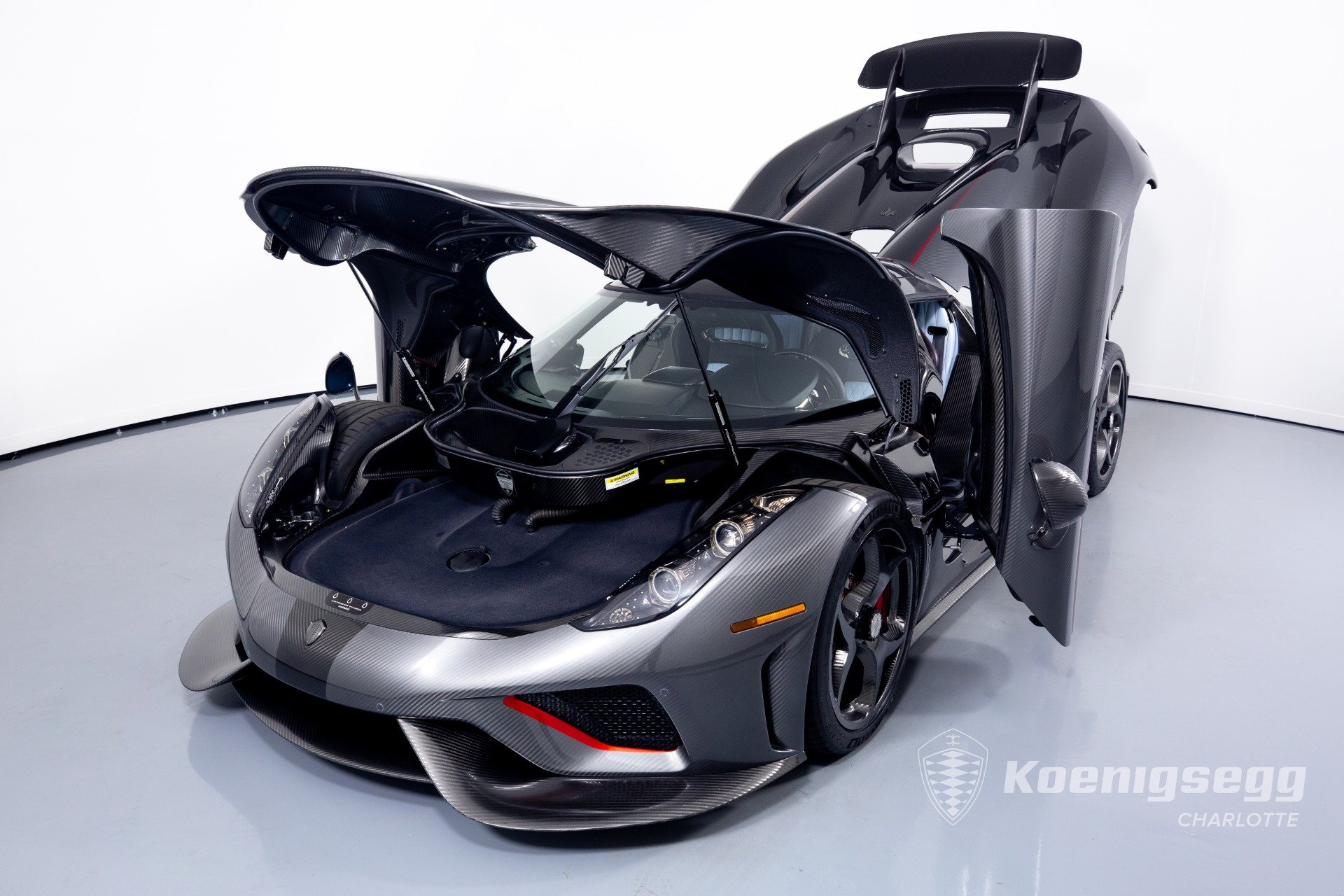 Regera คันนี้สั่งทำพิเศษแบบจัดเต็ม มากับตัวถังงาน Exposed carbon รอบคันสีเงิน Silver Carbon กับตัดเส้นสีแดง Apple Red คาดยาวกลางรถกับด้านข้าง ล้อก็เป็นคาร์บอนไฟเบอร์ Center Lock ขอบหน้า 19 นิ้ว กับหลัง 20 นิ้ว คู่กับจานคาร์บอน-เซรามิก หน้าขนาด 397 มม. หลัง 380 มม. คาลิปเปอร์สีแดงสด