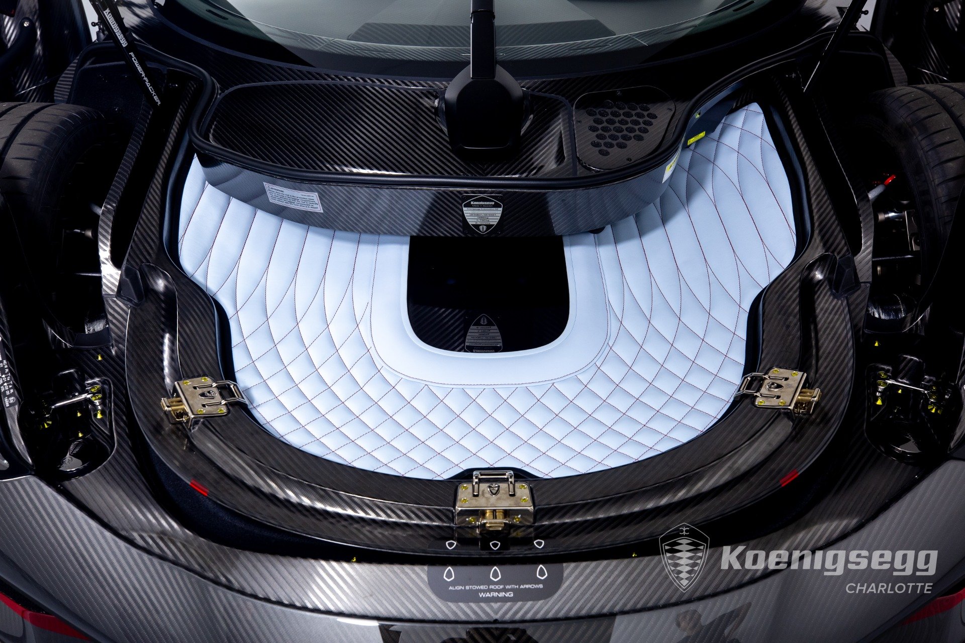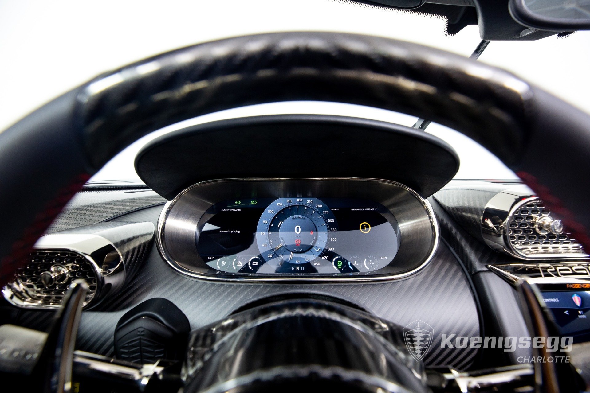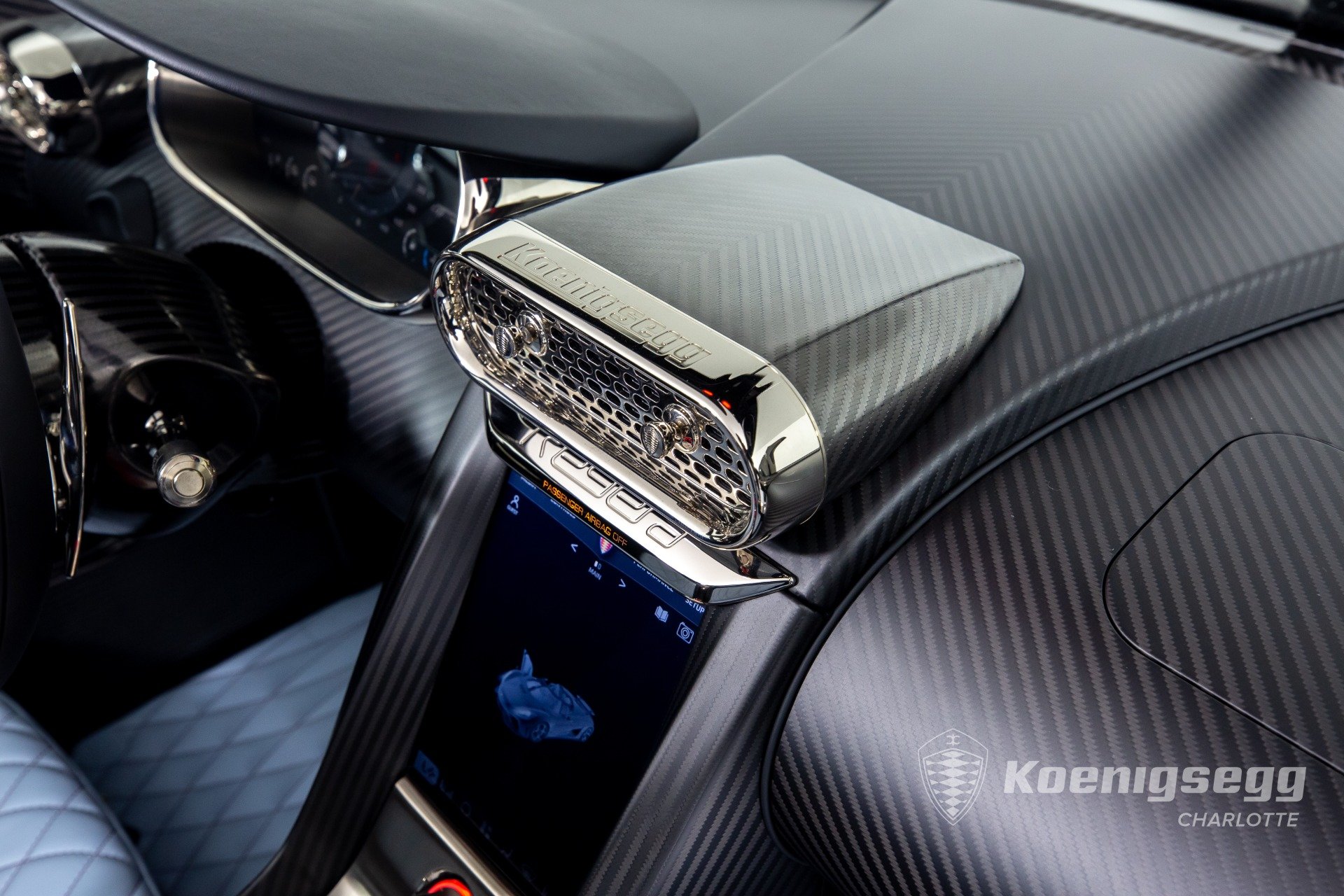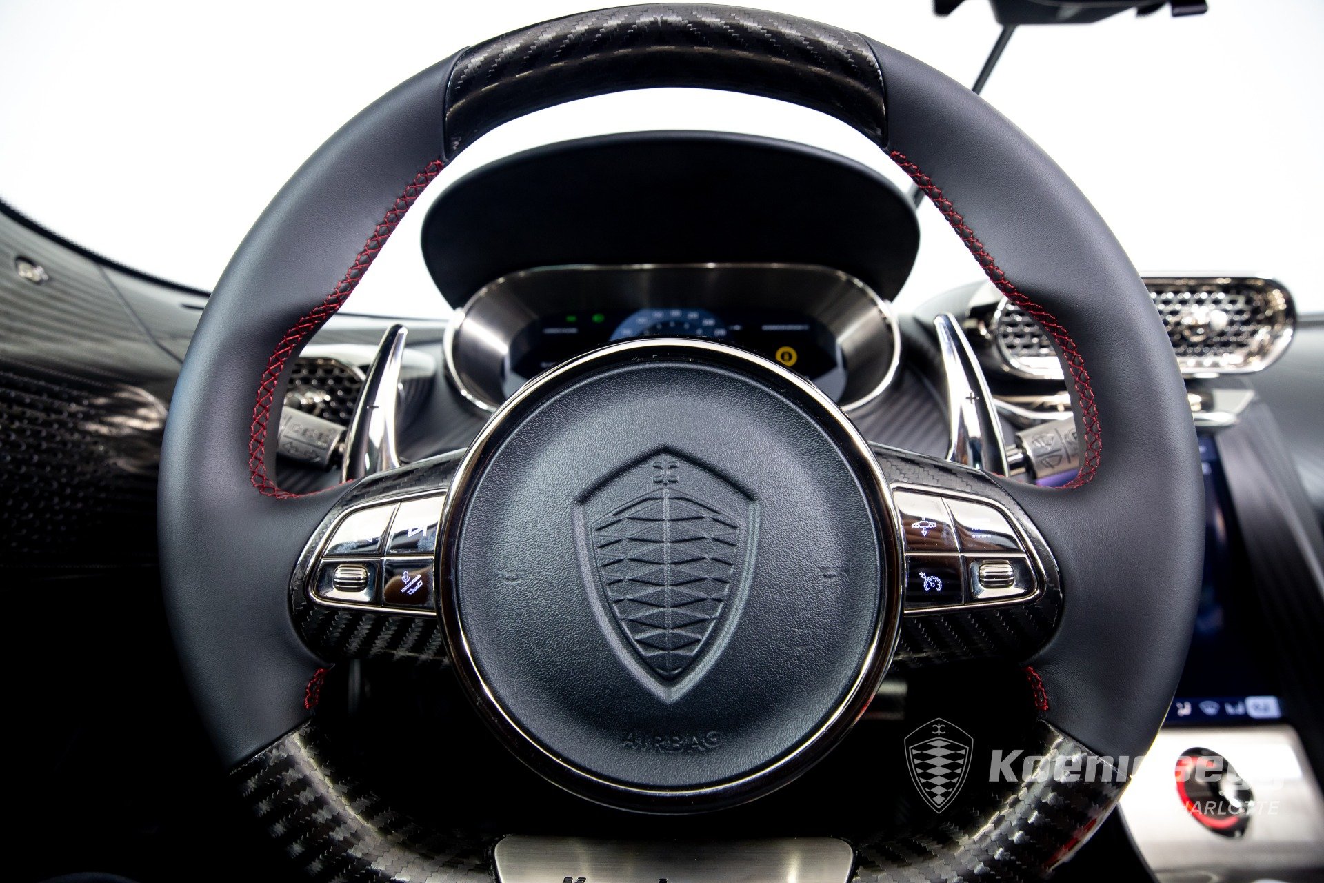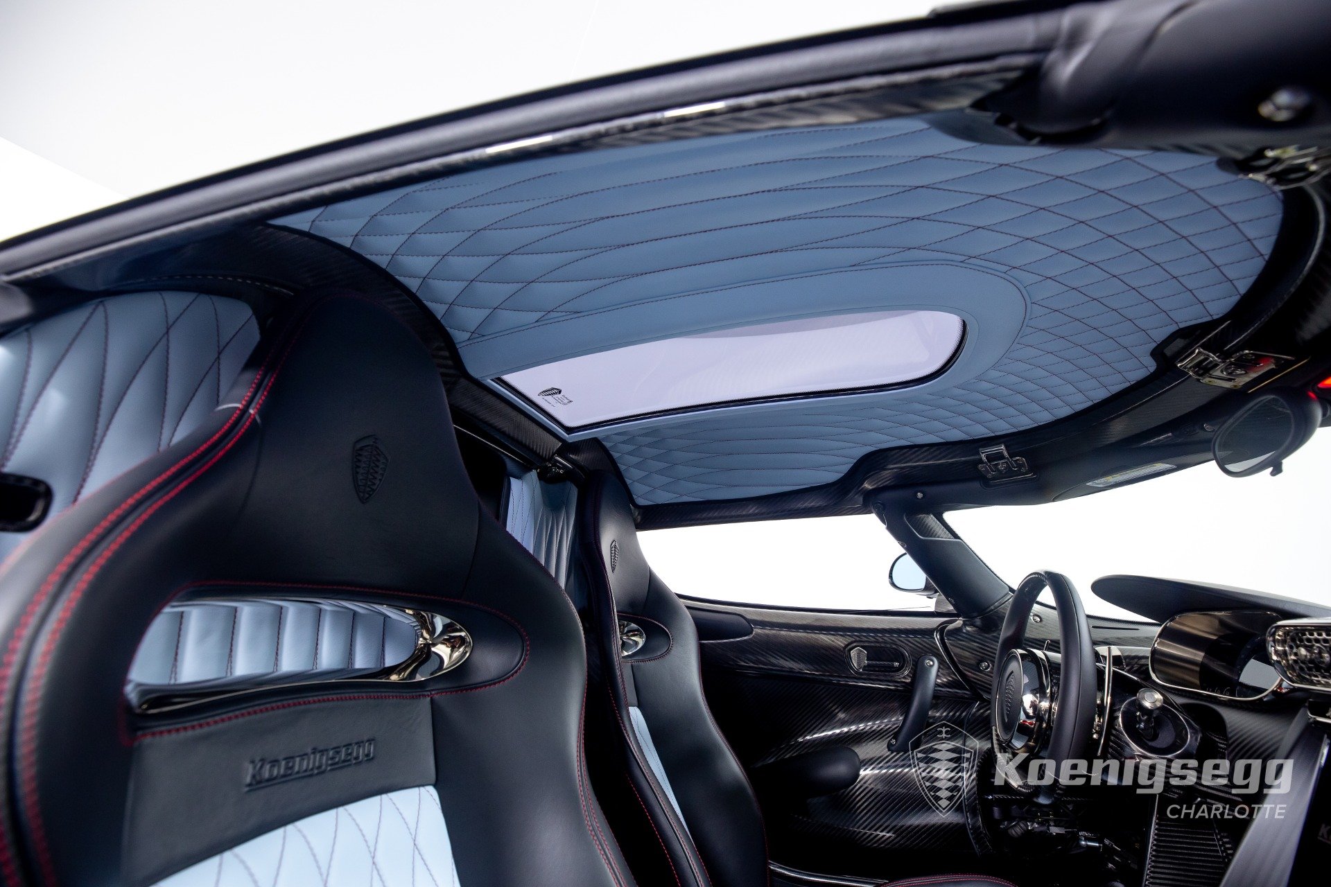 Regera คันนี้สั่งทำพิเศษแบบจัดเต็ม มากับตัวถังงาน Exposed carbon รอบคันสีเงิน Silver Carbon กับตัดเส้นสีแดง Apple Red คาดยาวกลางรถกับด้านข้าง ล้อก็เป็นคาร์บอนไฟเบอร์ Center Lock ขอบหน้า 19 นิ้ว กับหลัง 20 นิ้ว คู่กับจานคาร์บอน-เซรามิก หน้าขนาด 397 มม. หลัง 380 มม. คาลิปเปอร์สีแดงสด
