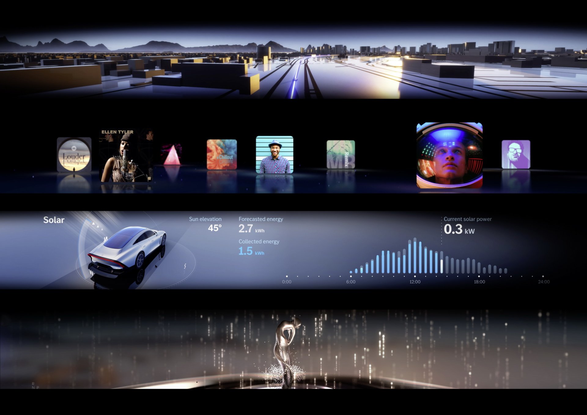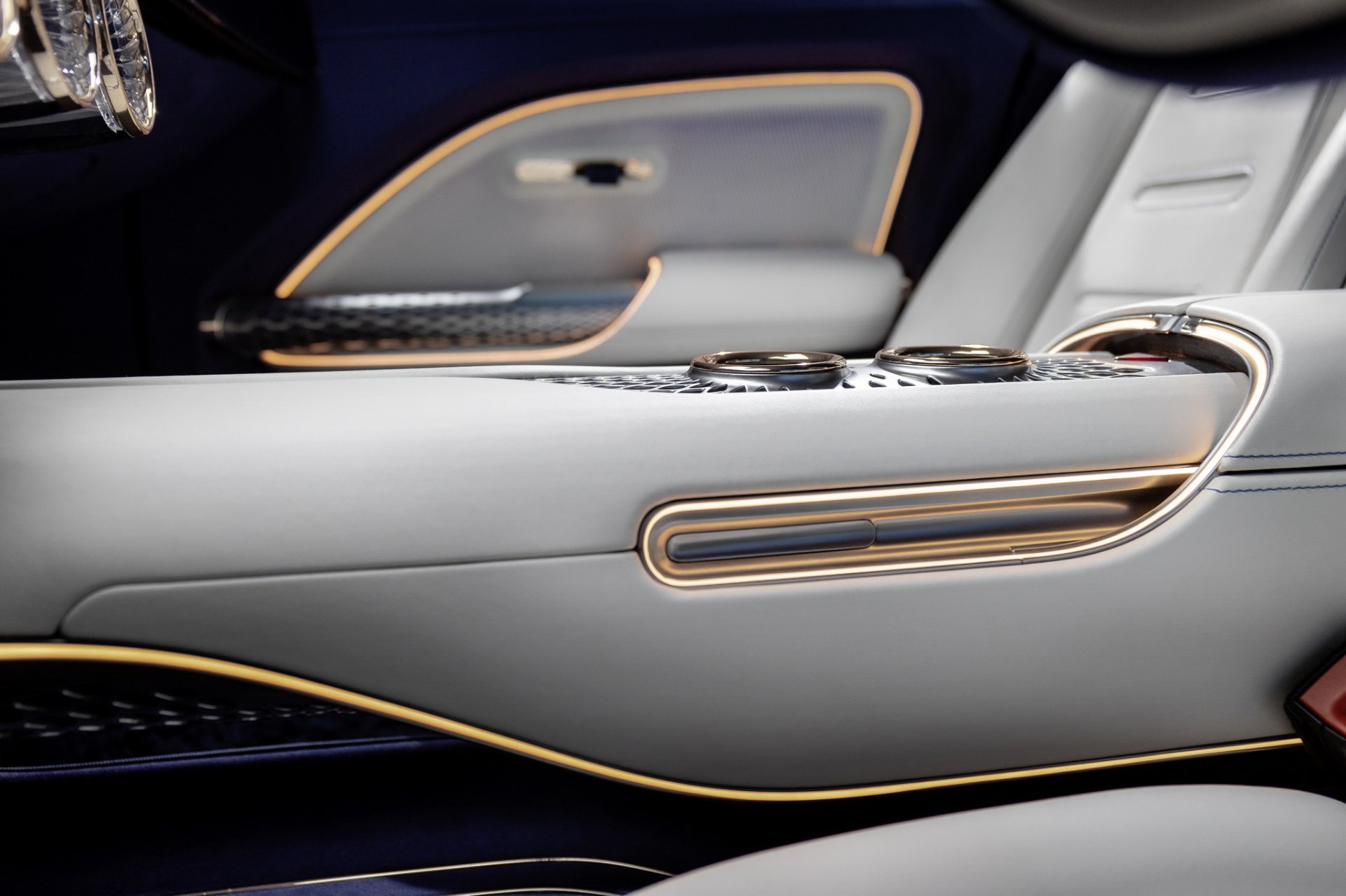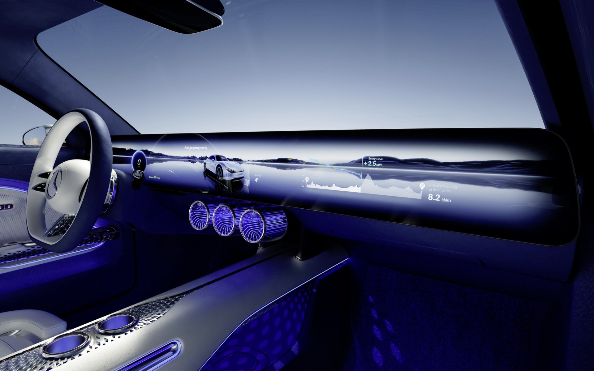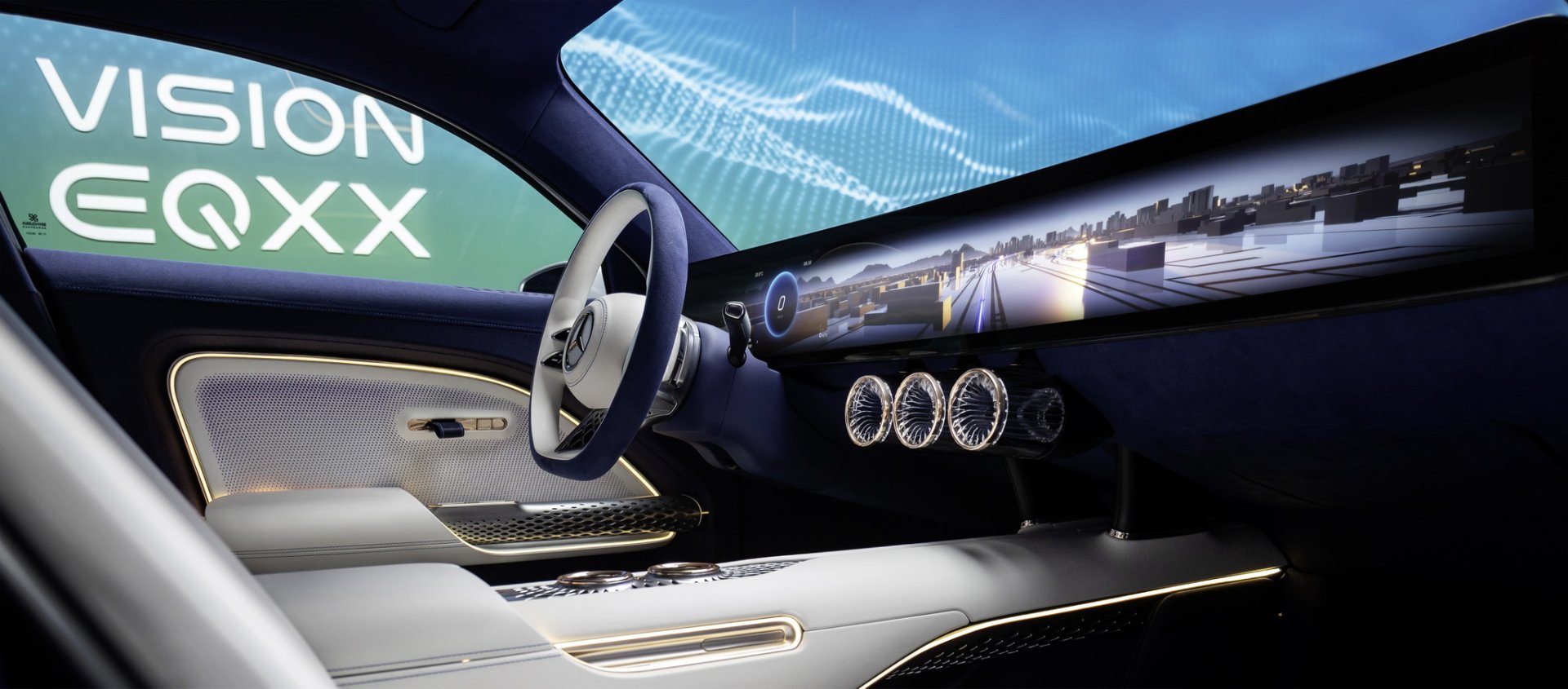ห้องโดยสารจะมาแนวหรูล้ำ มากับหน้าจอ Mini LED ขนาด 47.5 นิ้ว ยาวไร้รอยต่อความละเอียดถึง 8K (7,680 x 660 พิกเซล) แสดงผลระบบนำทางแบบ 3 มิติ วัสดุของห้องโดยสารจะไม่พบหนังแท้ หรืออะไรที่มาจากสัตว์อีกต่อไป จะเน้นมาใช้วัสดุจากธรรมชาติทั้งหมด เช่น มือจับประตูทำจากเส้นใย Biosteel® ของ AMSilk, พรมทำจากเส้นใยไม้ไผ่, เบาะนั่งจากกระบองเพชร และเห็ดก็มีด้วยนะ