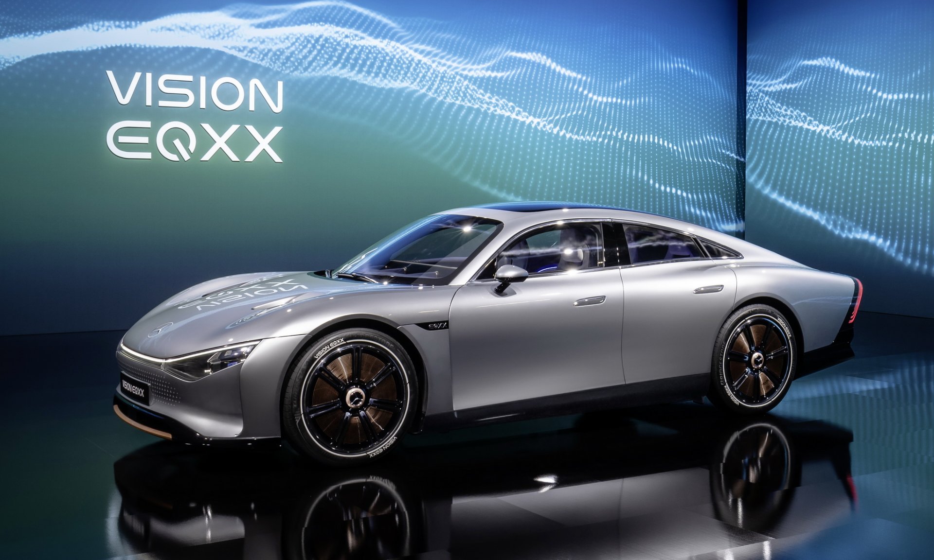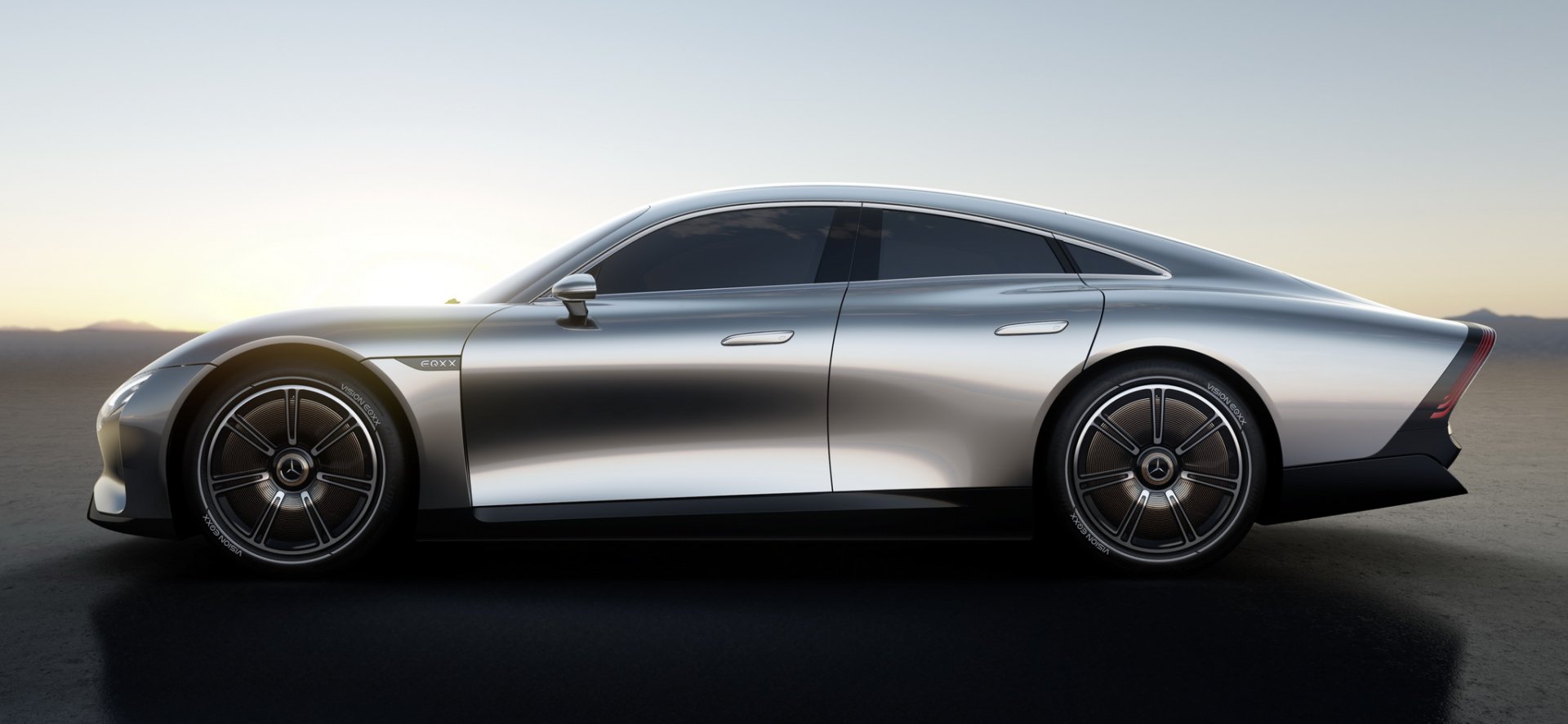 VISION EQXX มาในรูปแบบเก๋ง 4 ประตู ทรงสปอร์ต น้ำหนักรถจะอยู่ราว 1,750 กก. มีความยาวฐานล้อ 280 ซม. (ใกล้เคียง Taycan) ดีไซน์ภายนอกเน้นความเพรียวโฉบเฉี่ยว หลายจุดทำมาเพื่อเน้นลดแรงต้านโดยเฉพาะ ทั้งแก้มกันชนหน้ามีช่อง Air Curtain ล้อฟอร์จแมกนีเซียมขนาด 20 นิ้ว มีฝาครอบปิด Aero Wheel บั้นท้ายมาในสไตล์ Longtail ติดตั้งดิฟฟิวเซอร์แบบแอคทีฟ 2 ชั้น ยืดหดได้ ส่งผลให้มันลู่ลมด้วยค่าสัมประสิทธิ์แรงต้านอากาศเพียง 0.17 cd เท่านั้น ด้านบนหลังคายาวไปถึงกระจกหลังยังทำเป็นแผงโซลาร์เซลล์ที่บางพิเศษจำนวน 117 เซลล์ พลังงานส่วนนี้จะถูกกักเก็บในแบตเตอรี่ลิเธียมไอออนฟอสเฟตน้ำหนักเบา เอาไปจ่ายไฟพวกหลอดไฟรถ, จอ Infotainment และระบบอื่นๆ รวมถึงช่วยเพิ่มระยะทางวิ่งให้ตัวรถได้อีก 25 กม.