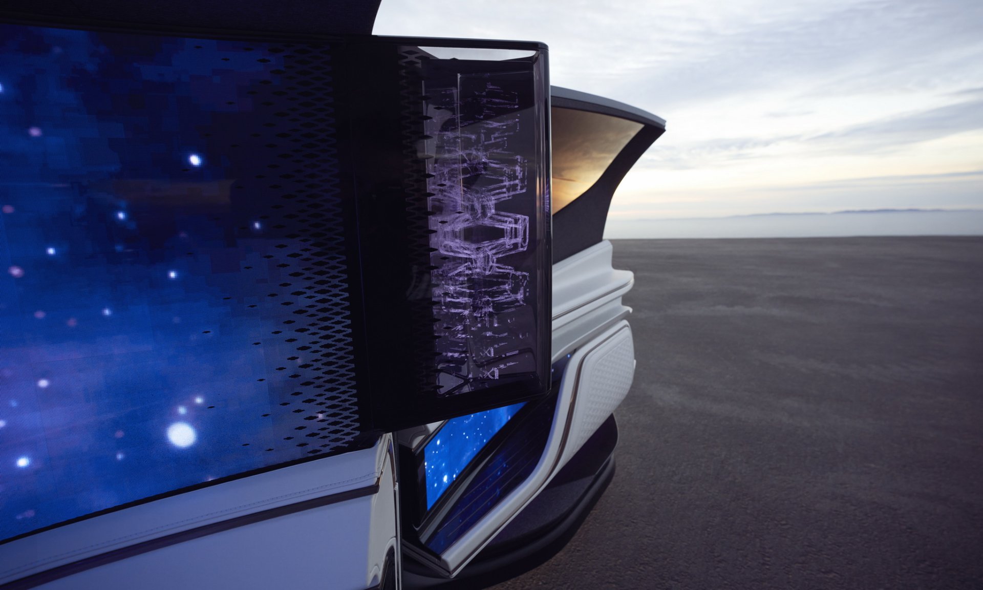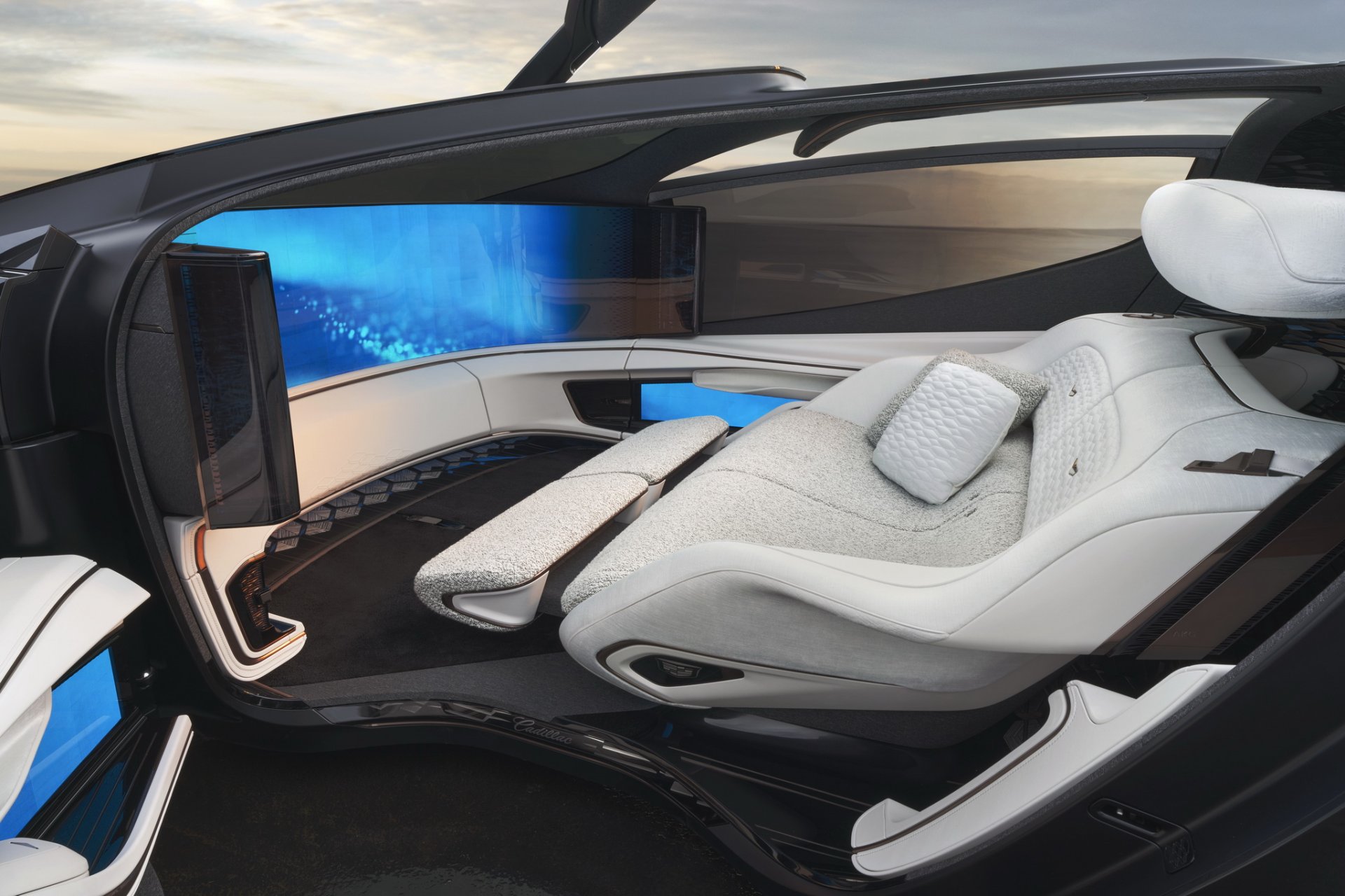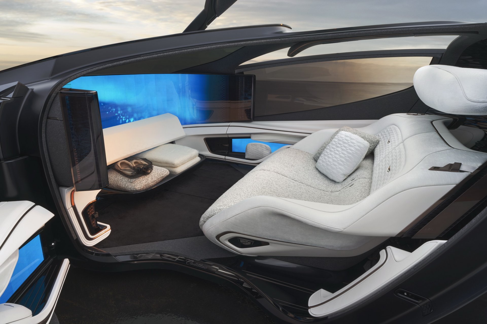 ด้วยความที่เป็นรถขับเคลื่อนอัตโนมัติโดยสมบูรณ์ ไม่มีทั้งพวงมาลัย หรือแป้นคันเร่ง พวกเขาจึงเน้นภายในห้องให้หรูหราราวกับห้องนั่งเล่นในบ้าน เบาะนั่งแบบโซฟาพื้นที่วางขากว้างใหญ่ มีช่องเก็บของใช้ส่วนตัว อลังกาลด้วยจอ LED โค้งพาโนรามา และยังมีจอย่อยที่แผงประตู 2 ฝั่ง เราสามารถเลือกธีมที่ชอบ Augmented Reality Engagement, Entertainment และ Wellness Recovery