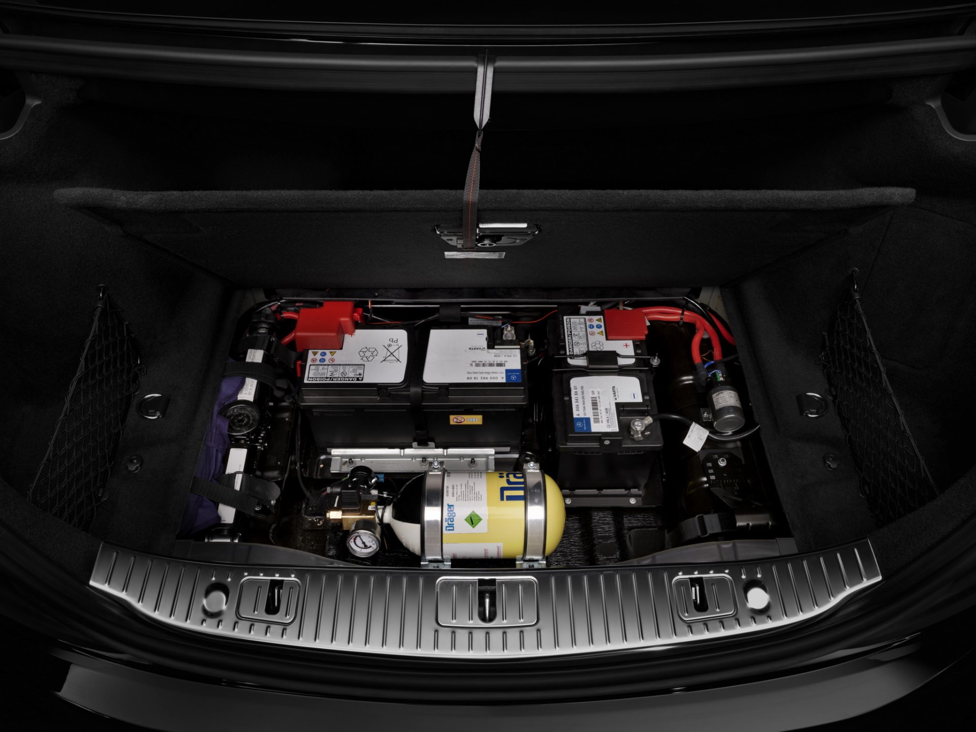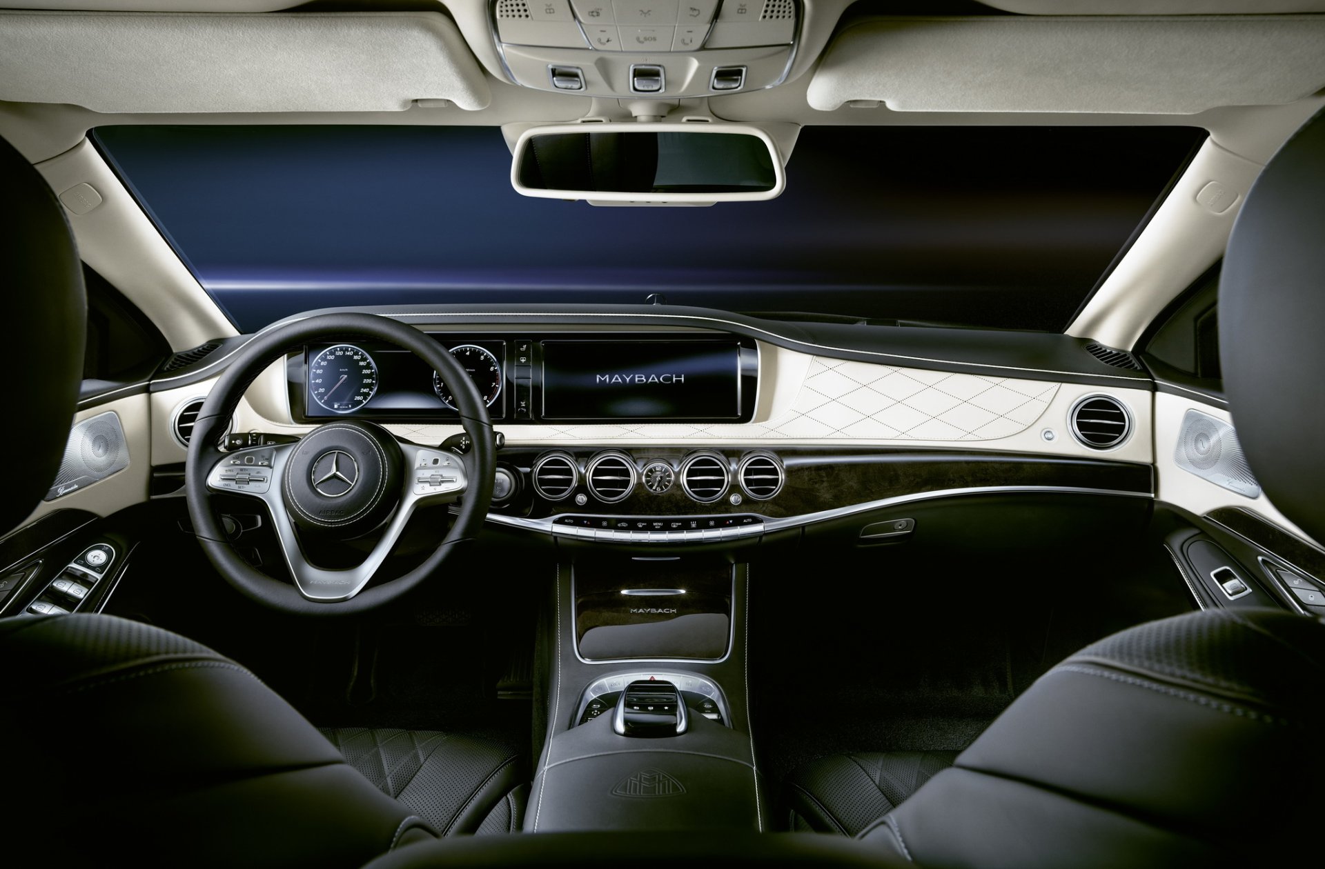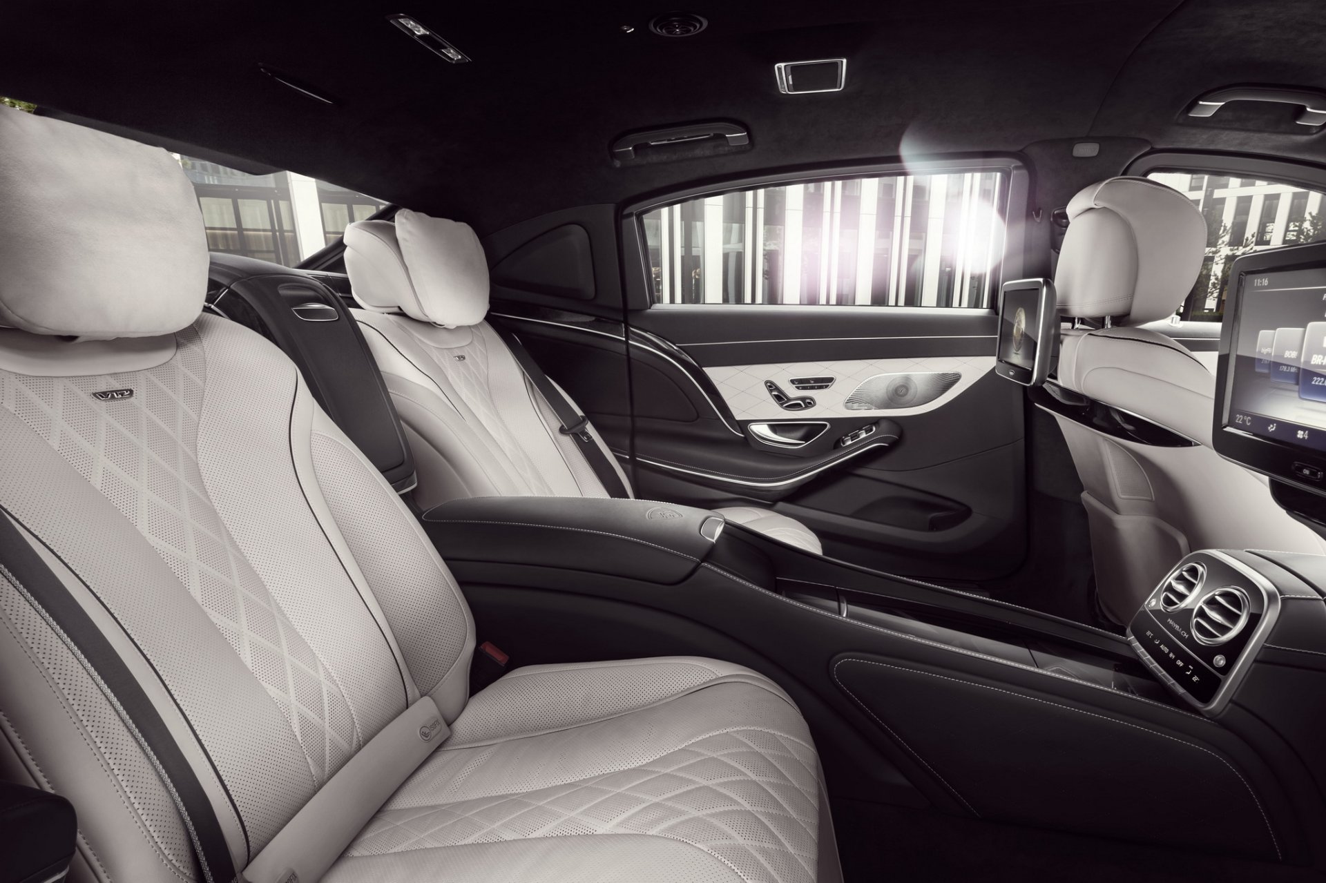 มาในห้องโดยสาร ยังติดตั้งระบบอากาศบริสุทธิ์ป้องกันควันหรือก๊าซพิษต่างๆ คอนโซลหน้ามีซ่อนปุ่มควบคุมแนวสายลับ เช่น ลำโพงไว้สื่อสารกับคนภายนอกรถ, ไมค์ไว้ฟังเสียงภายนอกรถ, สลับแบตเตอร์รี่ฉุกเฉิน (กรณีอันแรกเสียหาย) หรือใช้ระบบดับเพลิงอัตโนมัติ ส่วนความหรูยังคงแบบ Mercedes-Maybach ครบถ้วน เบาะหลังมาแบบแยกส่วน 2 ที่นั่ง ยืดเยียดขาได้สบาย มีรีโมทไว้คุมระบบความบันเทิงต่างๆ มีโต๊ะพับได้ไว้เซ๋นเอกสาร ช่องแช่เครื่องดื่ม ที่เก็บแก้วแชมเปญครบ