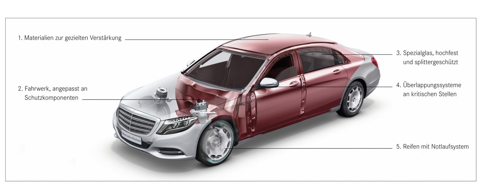 เฉลย!! รถที่ประยุทธ์นั่งไปนั้นคือ Mercedes-Maybach S650 Guard (W222 Facelift) รถหุ้มเกราะที่ทางซาอุจัดเตรียมไว้รับรองบุคคลสำคัญ มิติตัวรถยาว 5,462 มม. กับระยะฐานล้อ 3,365 มม. เพิ่มขึ้น 20 ซม. จาก S-Class รุ่นฐานล้อยาว เมื่อมองจากภายนอกเราแทบไม่รู้เลยว่าคือรถหุ้มเกราะ แต่เมื่อเปิดประตูจะพบบานประตูที่หนาและหนักกว่ารถทั่วไปมาก จึงต้องติดตั้งมอเตอร์ไฮดรอริคมาช่วยผ่อนแรงขณะเปิด โครงสร้างตัวรถเดิมยังถูกปกคุลมด้วยโครงสร้างเหล็กแบบพิเศษอีกชั้น ซึ่งมีส่วนประกอบจากเส้นใย Aramid และ PE (โพลีเอทิลีน) ให้การป้องกันในระดับ VR10 สูงที่สุดของรถพลเรือนที่หาซื้อได้ เอาอยู่หมดพวกปืนไรเฟิล สไนเปอร์ และระเบิด หน้าต่างทุกบานใช้กระจกลามิเนตหนาหลายชั้น ที่มีฟิล์มโพลีคาร์บอเนตคั้นกลางระหว่างชั้นกระจก เหนียวพอรับมือการยิงในระยะประชิดและป้องกันเศษกระจกได้ดี เบรกก็ใหญ่กว่า S-Class ปกติ ยางเป็นแบบรันแฟลต Michelin PAX ถ้ายางแตกเสียหายยังสามารถวิ่งต่อไปได้อีก 30 กม.