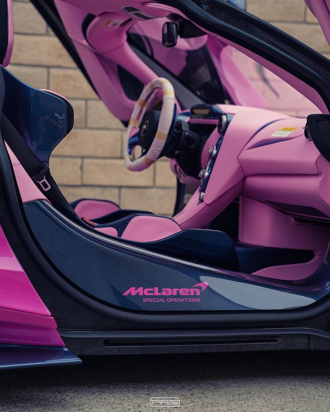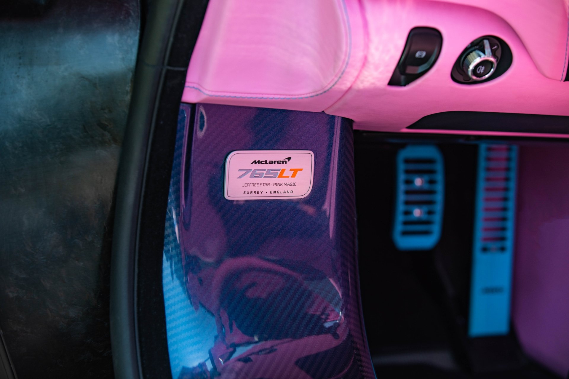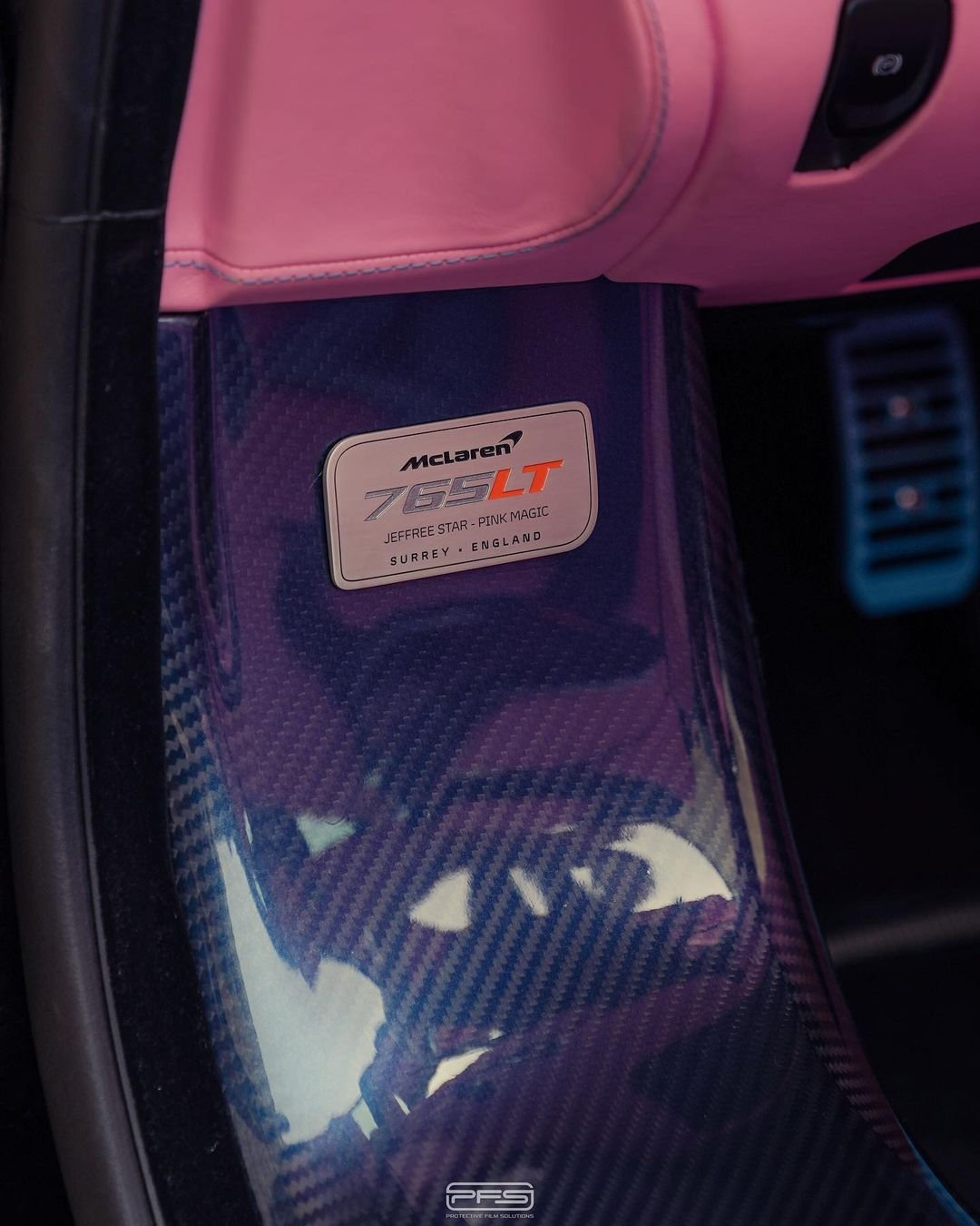 765LT คันนี้เป็นของ Jeffree Star ช่างแต่งหน้าอินฟลูเอนเซอร์ชื่อดัง รวมถึงเป็นเจ้าของแบรนด์เครื่องสำอาง Jeffree Star Cosmetics ซึ่งเขาก็มีรถหรูครอบครองอยู่หลายคันทีเดียว สำหรับ 765LT คันใหม่ล่าสุด เขาต้องการคอนเซ็ปต์แนวหวานๆ เหมือน Cotton Candy (ขนมสายไหม) ซึ่งนั่นไม่ใช่ปัญหา แผนกพิเศษอย่าง MSO (McLaren Special Operations) จัดให้ได้สบาย มากับตัวถังสีชมพู Pink Magic สุดระยิบระยับ พิเศษด้วยคาร์บอนไฟเบอร์รอบคันป็นสีน้ำเงินมีประกายด้วย
