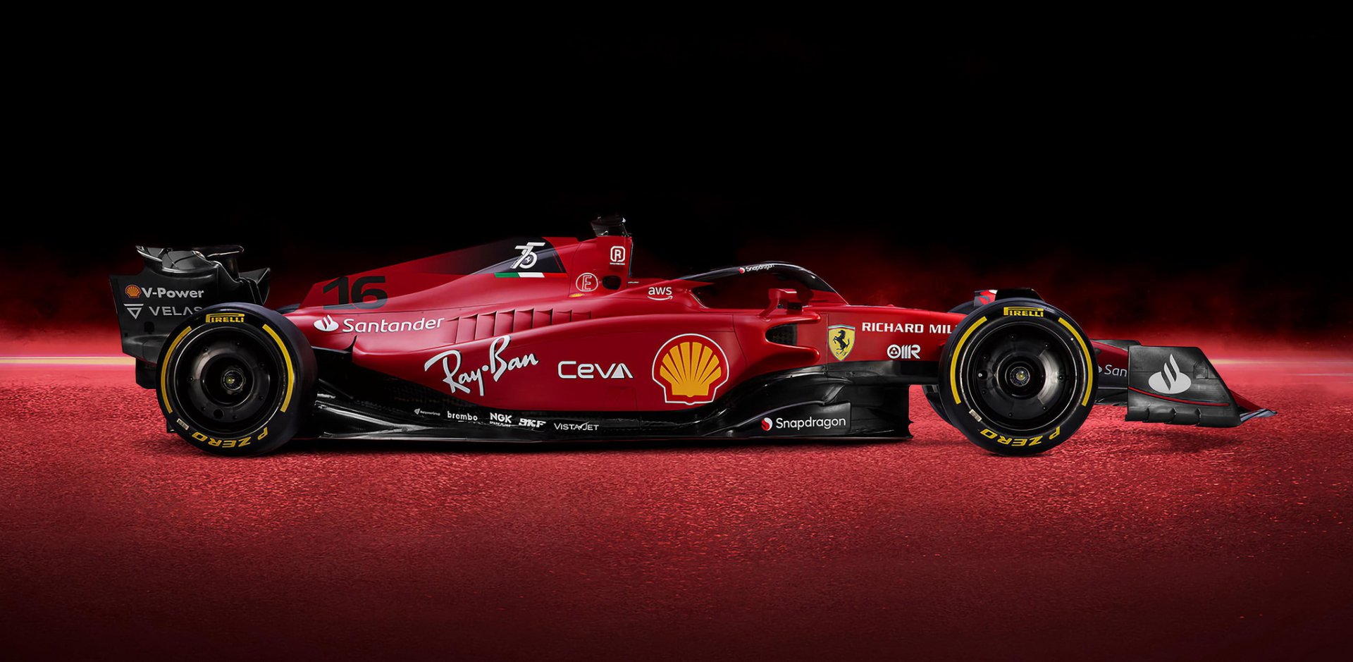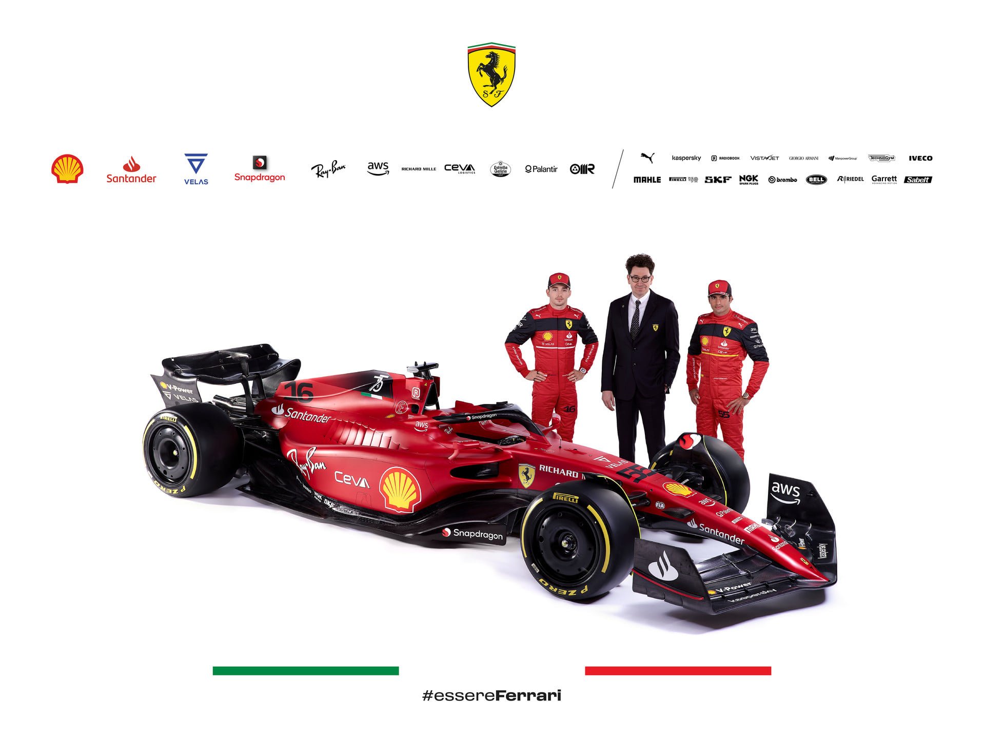 F1-75 รุ่นใหม่ของทีม Scuderia Ferrari แน่นอนตัวถังมากับสีแดง-ดำตามสไตล์ ด้านดีไซน์ถือว่าเปลี่ยนไปมากเมื่อเทียบกับซีซั่นก่อน เริ่มตั้งแต่ปีกหน้ารถดูเรียบง่ายและเต็มพื้นที่กว่าเดิมเพราะตัด 'Y250 vortex' ออกไป จะเห็นว่าปีกหน้าของซีซั่นก่อนมีช่องว่างใกล้จมูกและโค้งเกลียวกว่า ส่วนนั้นแหละคือ 'Y250 vortex' ซึ่งจะสร้างกระแสลมวนที่ปั่นป่วนรถที่ตามหลังอย่างมาก ล้อใส่มาขนาด 18 นิ้ว ยางแก้มเตี้ยดูเท่กว่าเดิม (ซีซั่นก่อน 13 นิ้ว) พร้อมฝาครอบล้อเข้ามาช่วยเรื่องแอโรฯ และตรงหลังล้อหน้ายังมีปีกเล็กๆ ใส่เข้ามาด้วย ช่องลม 2 ฝั่งข้างรถก็ทรงใหม่ ปีกท้ายดูโค้งมลยิ่งขึ้น ยังมีระบบลดแรงต้าน Drag Reduction System (DRS) ที่ปรับตำแหน่งใหม่ และใต้ท้องรถก็ทำเป็นช่องอุโมงค์ลมขนาดใหญ่ สร้างแรงกดได้มหาศาลทีเดียว F1-75 มีน้ำหนักรวมของเหลวน้ำมันเครื่องกับคนขับแล้ว จะอยู่ที่ 795 กก. นักขับ 2 คน คือ Charles Leclerc และ Carlos Sainz