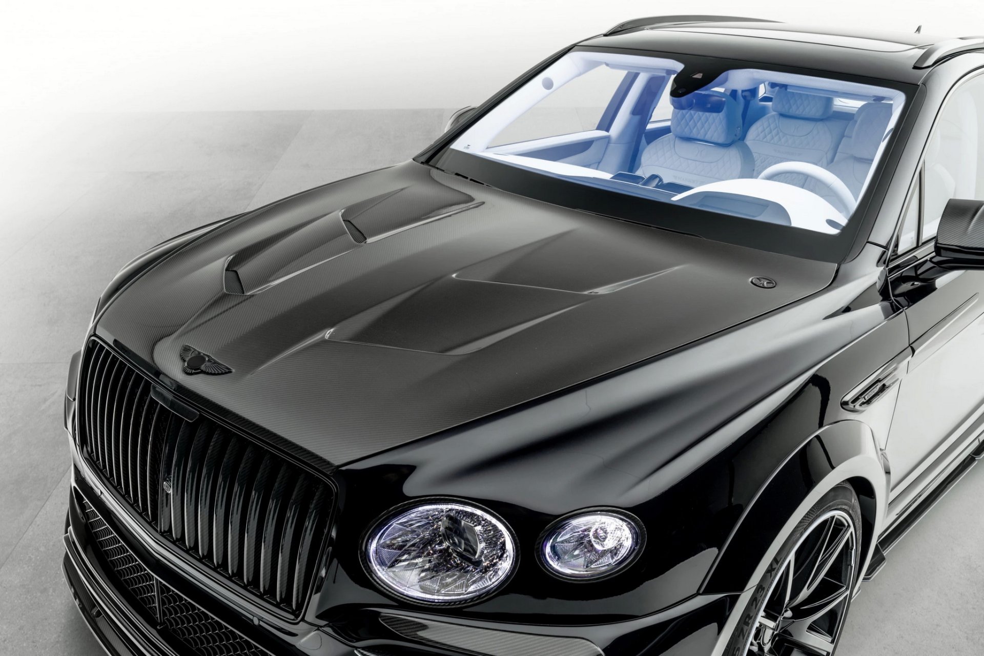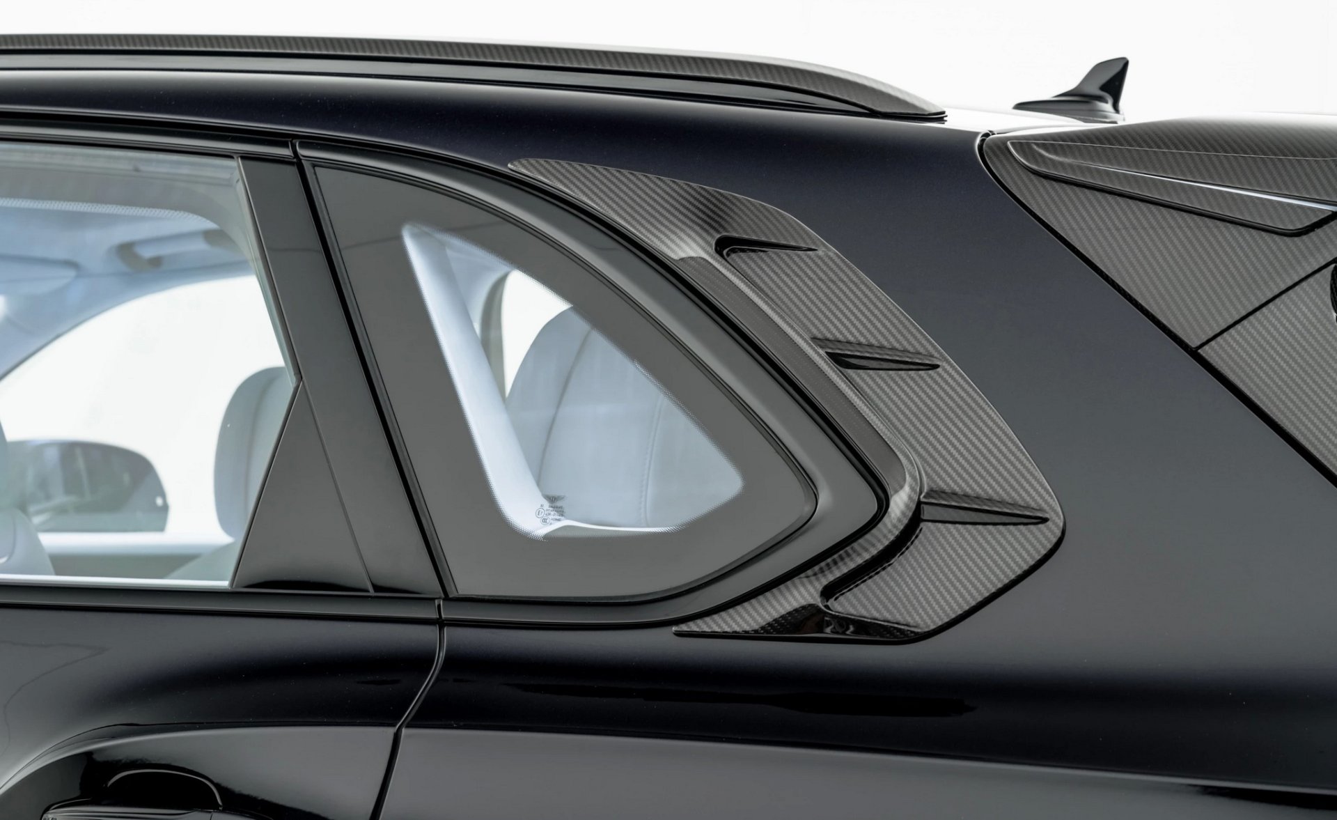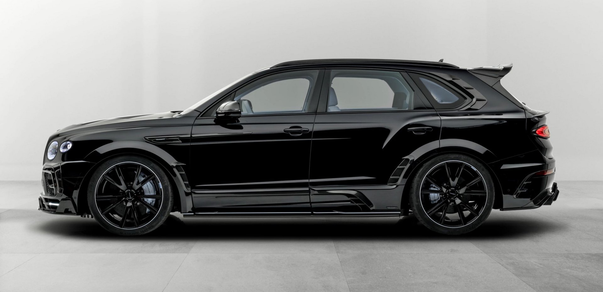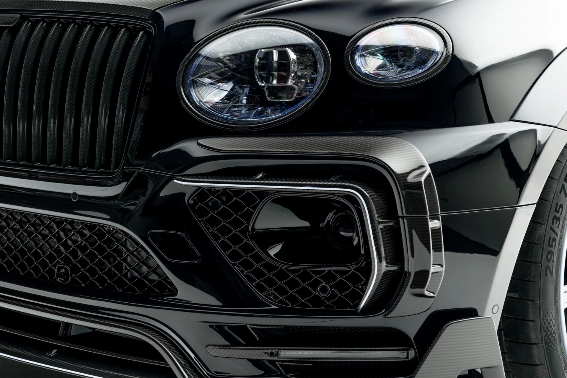 Bentley Bentayga W12 มาเต็มตามสไตล์ Mansory ด้วยชุดแต่ง Wide body ที่ทำจากคาร์บอนไฟเบอร์ทั้งหมด ด้านหน้ากันชนมีลิ้นทรงสปอร์ตติดไฟ DRL ทรงเรียบหรู กระจังแนวตั้งเป็นคาร์บอนฯ พ่นสีดำ ฝากระโปรงเสริมช่องระบายความร้อน 4 ช่อง สกิร์ตข้างทรงดุ ช่องลมตัว B แบบปีกยาว ฝาครอบกระจกมองข้างมีครีบ บั้นท้ายติดสปอยเลอร์หลังคาทรงใหม่ลดอาการลอยตัว บวกกับสปอยเลอร์ชิ้นเล็กที่ฝาท้าย ดูโหดด้วยดิฟฟิวเซอร์ 6 ครีบ ปลายท่อไอเสียแบบ 4 ท่อ และล้อจะใส่มาขนาด 23 นิ้ว สีดำเงา แต่ถ้ายังไม่ถูกใจสามารถสั่งล้อฟอร์จที่เบาลงขนาด 24 นิ้ว ได้