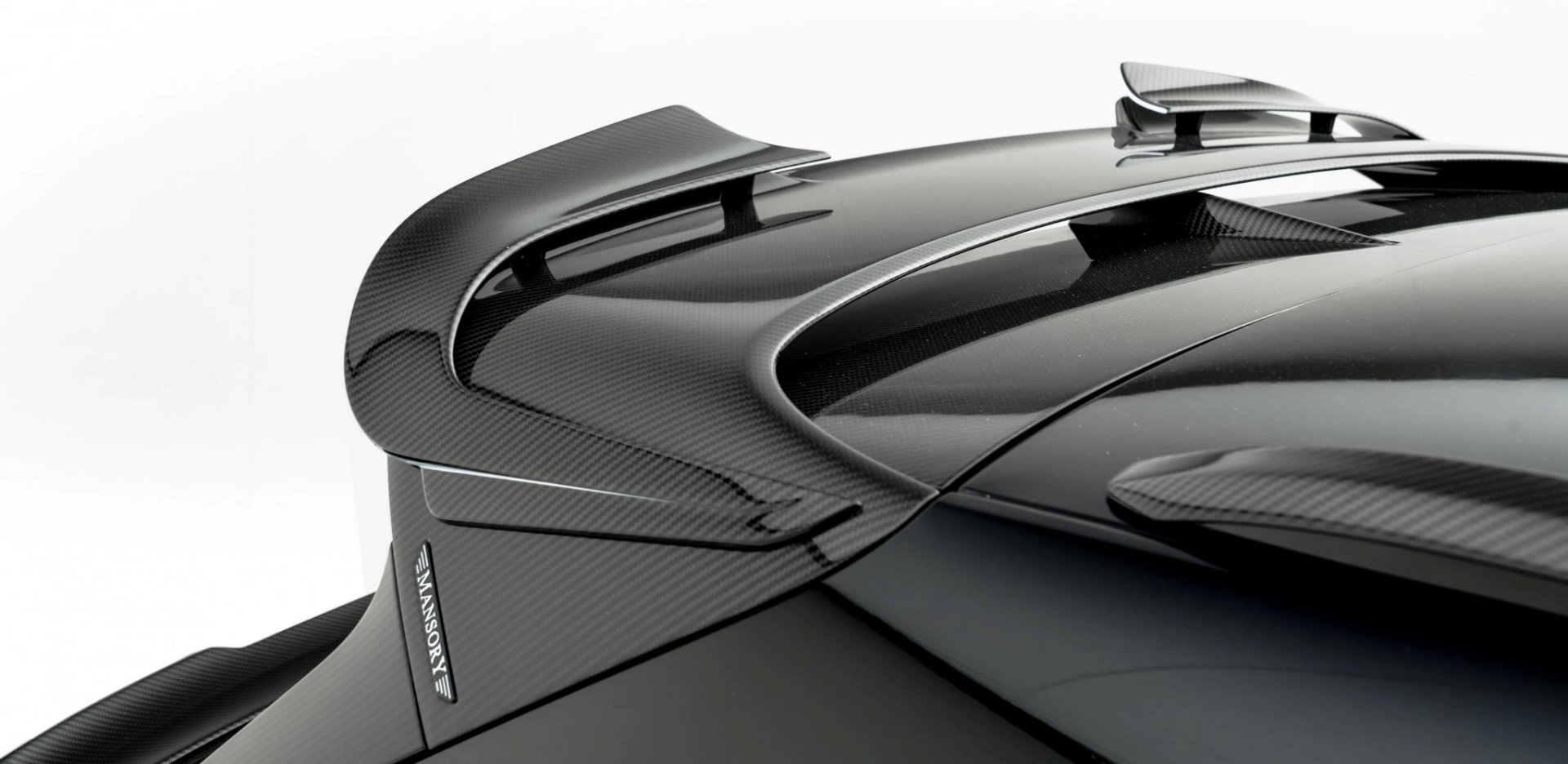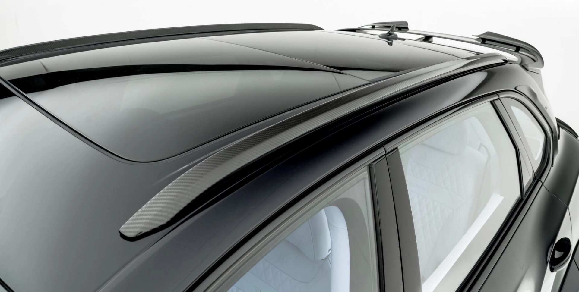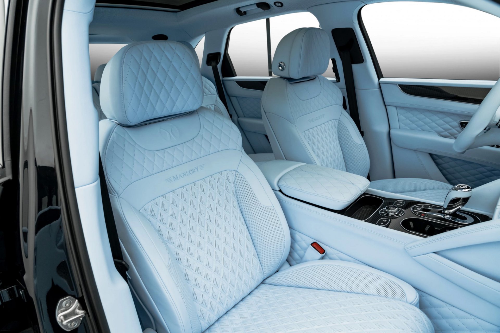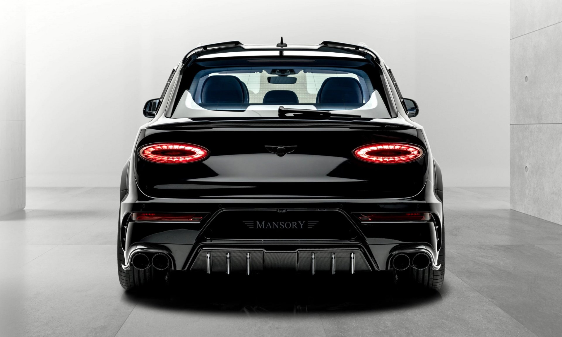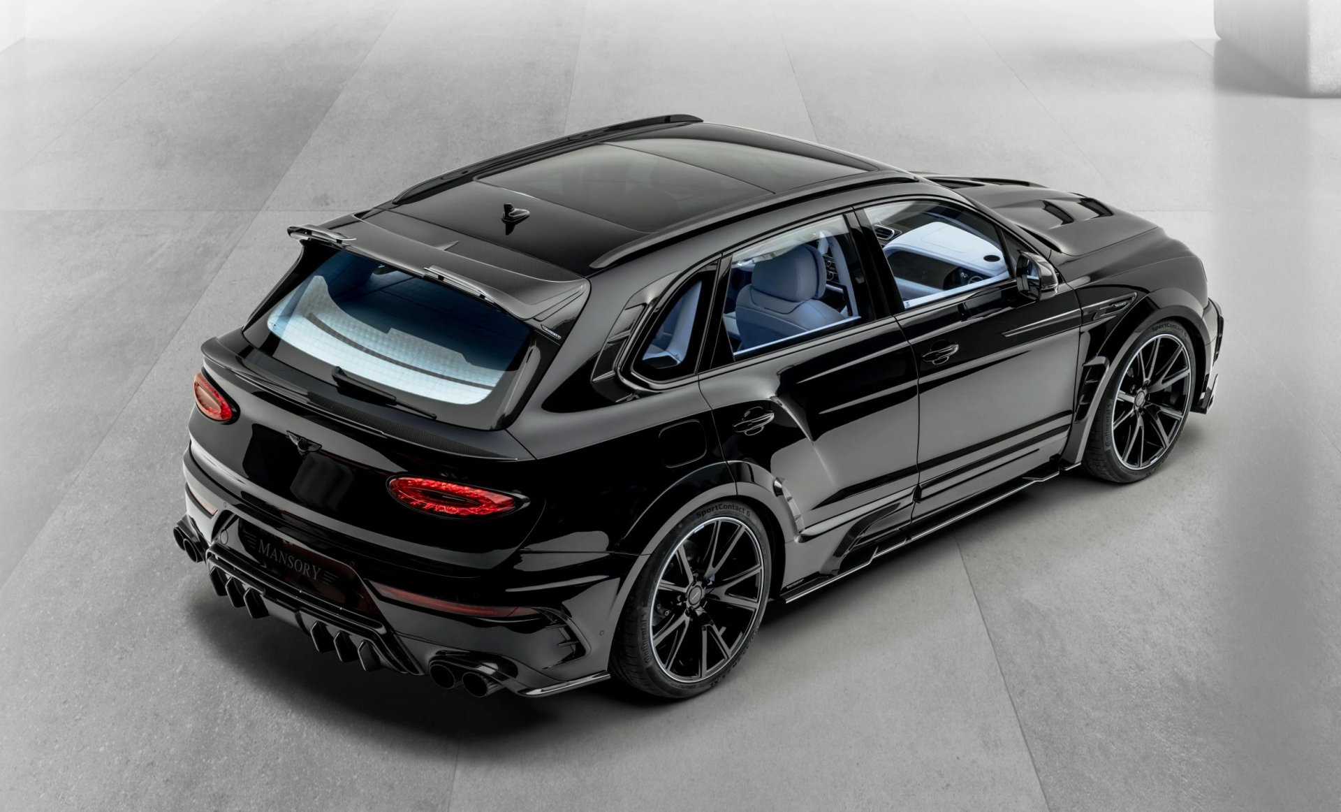 Bentley Bentayga W12 มาเต็มตามสไตล์ Mansory ด้วยชุดแต่ง Wide body ที่ทำจากคาร์บอนไฟเบอร์ทั้งหมด ด้านหน้ากันชนมีลิ้นทรงสปอร์ตติดไฟ DRL ทรงเรียบหรู กระจังแนวตั้งเป็นคาร์บอนฯ พ่นสีดำ ฝากระโปรงเสริมช่องระบายความร้อน 4 ช่อง สกิร์ตข้างทรงดุ ช่องลมตัว B แบบปีกยาว ฝาครอบกระจกมองข้างมีครีบ บั้นท้ายติดสปอยเลอร์หลังคาทรงใหม่ลดอาการลอยตัว บวกกับสปอยเลอร์ชิ้นเล็กที่ฝาท้าย ดูโหดด้วยดิฟฟิวเซอร์ 6 ครีบ ปลายท่อไอเสียแบบ 4 ท่อ และล้อจะใส่มาขนาด 23 นิ้ว สีดำเงา แต่ถ้ายังไม่ถูกใจสามารถสั่งล้อฟอร์จที่เบาลงขนาด 24 นิ้ว ได้