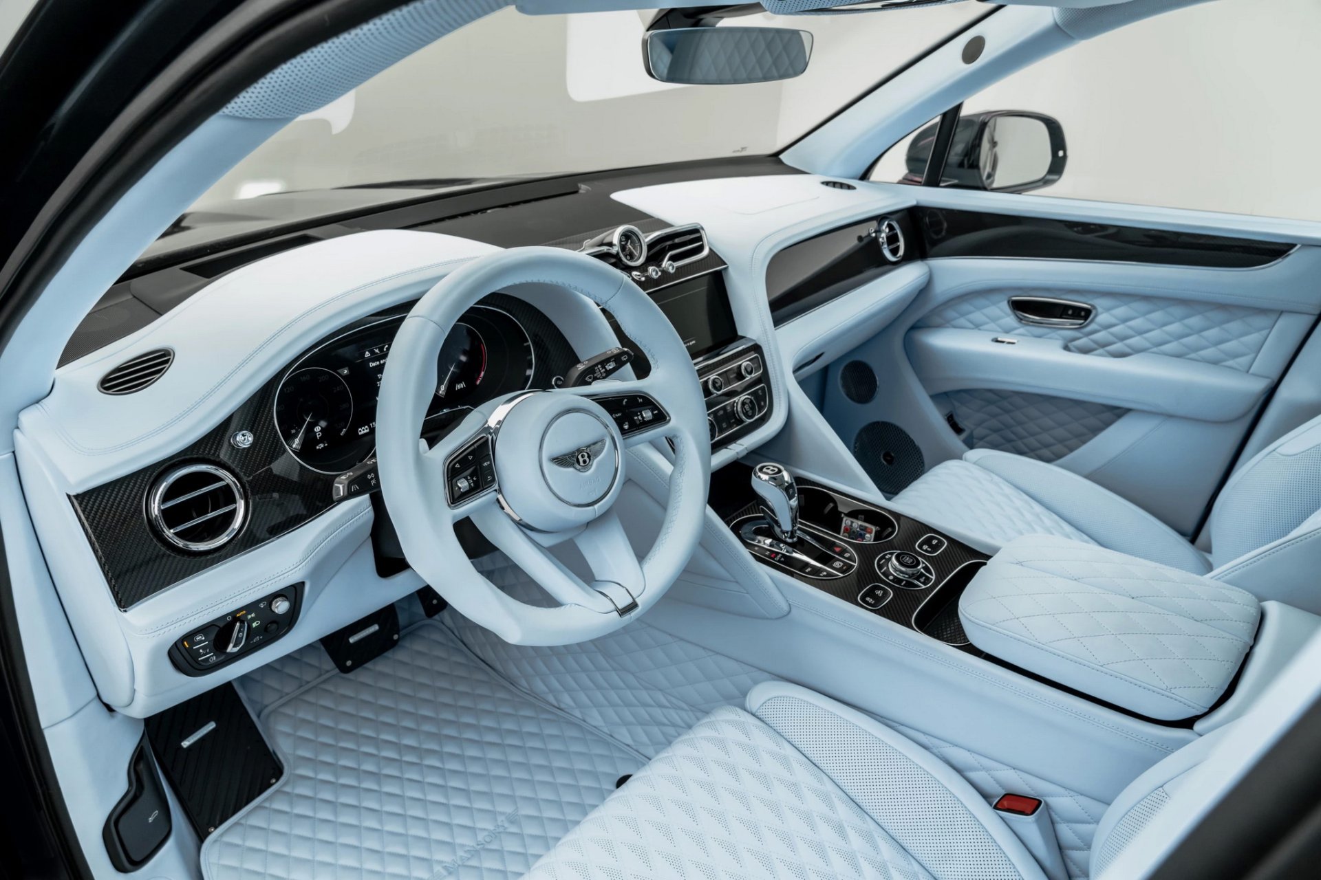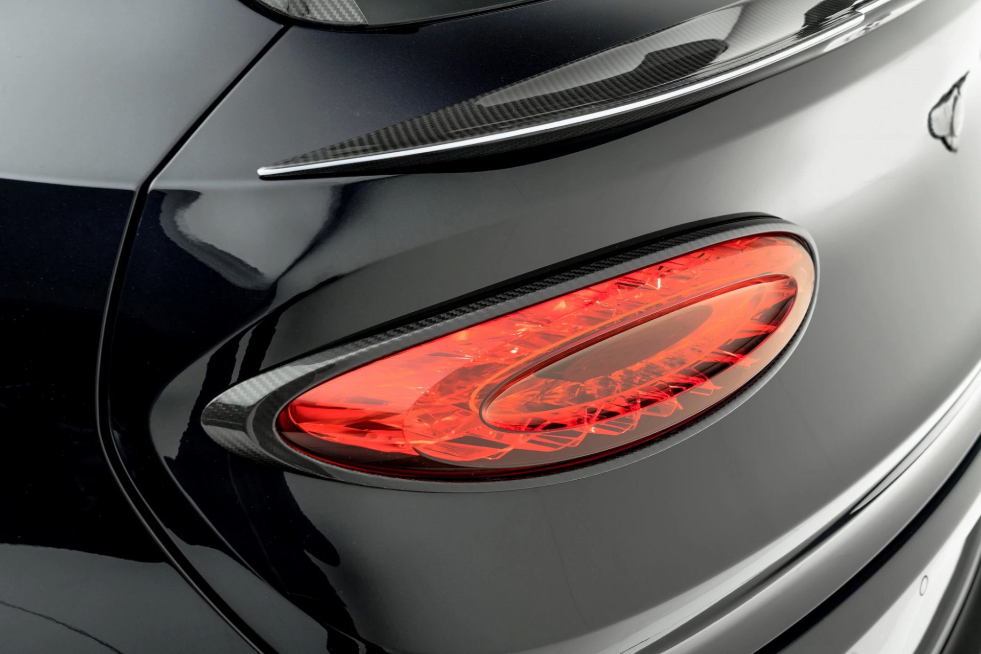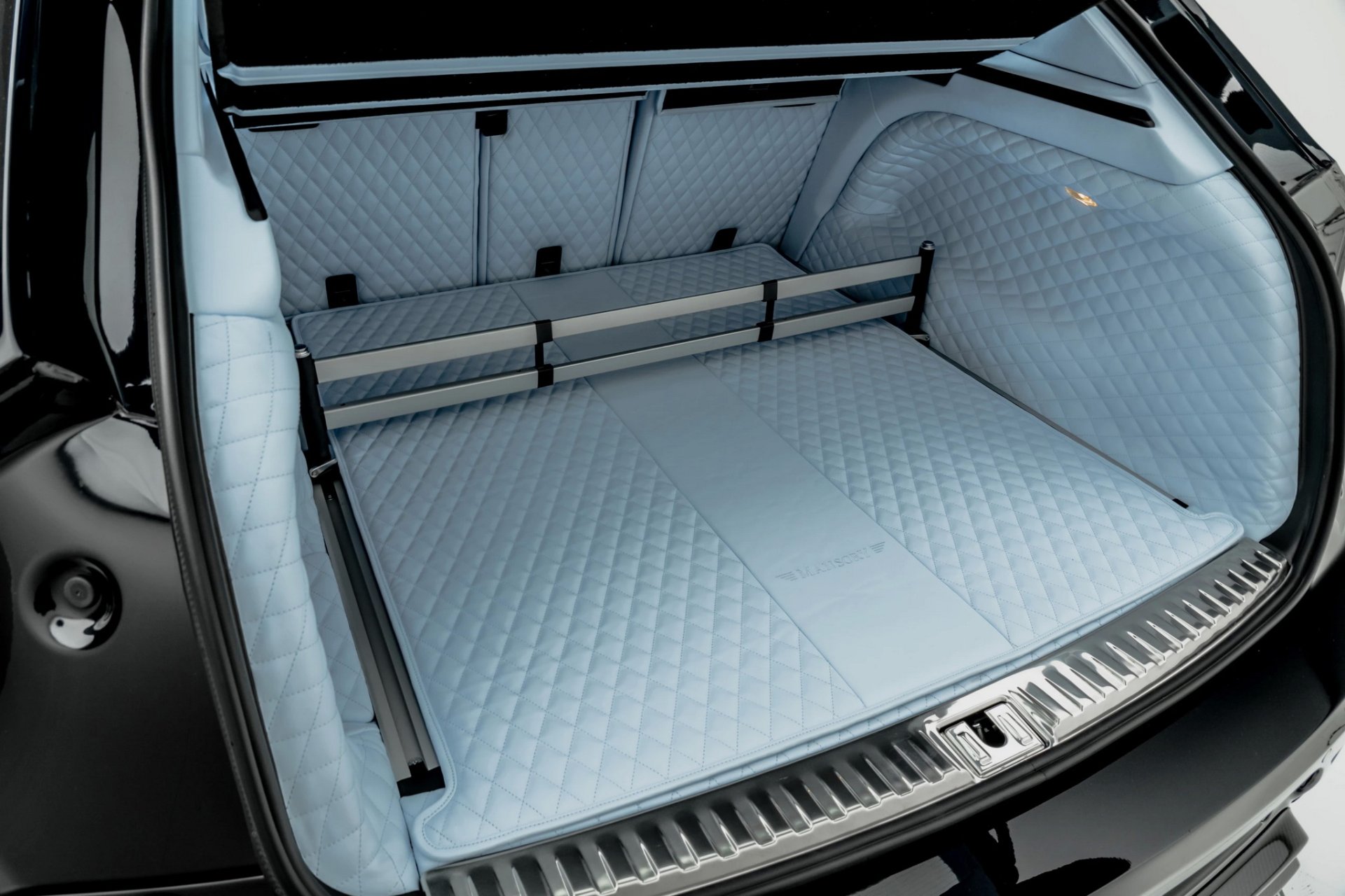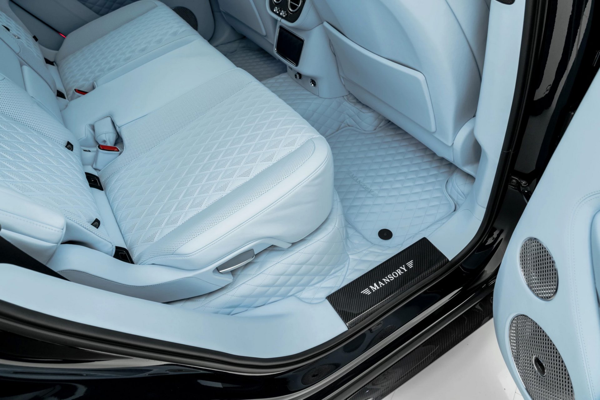 Bentley Bentayga W12 มาเต็มตามสไตล์ Mansory ด้วยชุดแต่ง Wide body ที่ทำจากคาร์บอนไฟเบอร์ทั้งหมด ด้านหน้ากันชนมีลิ้นทรงสปอร์ตติดไฟ DRL ทรงเรียบหรู กระจังแนวตั้งเป็นคาร์บอนฯ พ่นสีดำ ฝากระโปรงเสริมช่องระบายความร้อน 4 ช่อง สกิร์ตข้างทรงดุ ช่องลมตัว B แบบปีกยาว ฝาครอบกระจกมองข้างมีครีบ บั้นท้ายติดสปอยเลอร์หลังคาทรงใหม่ลดอาการลอยตัว บวกกับสปอยเลอร์ชิ้นเล็กที่ฝาท้าย ดูโหดด้วยดิฟฟิวเซอร์ 6 ครีบ ปลายท่อไอเสียแบบ 4 ท่อ และล้อจะใส่มาขนาด 23 นิ้ว สีดำเงา แต่ถ้ายังไม่ถูกใจสามารถสั่งล้อฟอร์จที่เบาลงขนาด 24 นิ้ว ได้