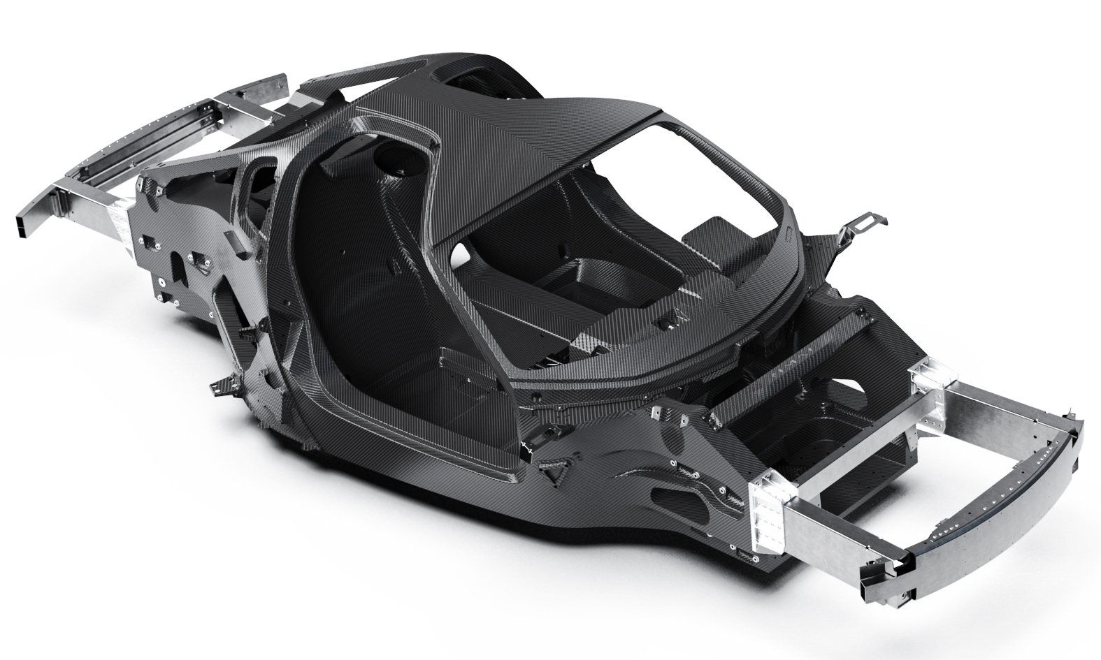 Rimac Nevera สร้างขึ้นจากโครงสร้างคาร์บอนไฟเบอร์โมโนค๊อกชิ้นเดี่ยว ที่ขยายครอบคลุมถึงส่วนติดตั้งระบบกันสะเทือนด้านหน้าและด้านหลัง ทำให้ Nevera เป็นรถ Production car ที่แข็งแกร่งที่สุดเท่าที่เคยสร้างมา โดยมีความแข็งแกร่งต่อแรงบิด (torsional rigidity) 70,000 นิวตันเมตร/องศา เมื่อเทียบกับซุปเปอร์คาร์ทั่วไปแล้วจะอยู่ที่ 40,000 นิวตันเมตร/องศา ไม่ใช่แค่แข็งมันยังกระจายพลังงานได้ดีลดผลกระทบต่อผู้โดยสารให้มากที่สุดขณะเกิดอุบัติเหตุ และหลังคารถก็ไม่ธรรมดาเพราะสามารถรับน้ำหนักได้มากกว่า 3 เท่า ของน้ำหนักตัวรถเลยทีเดียว