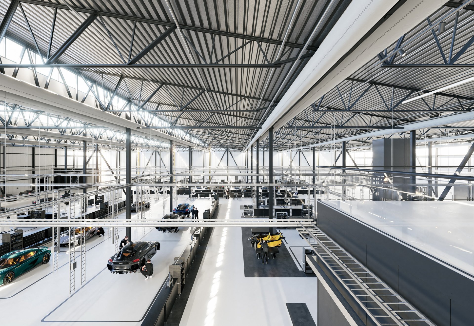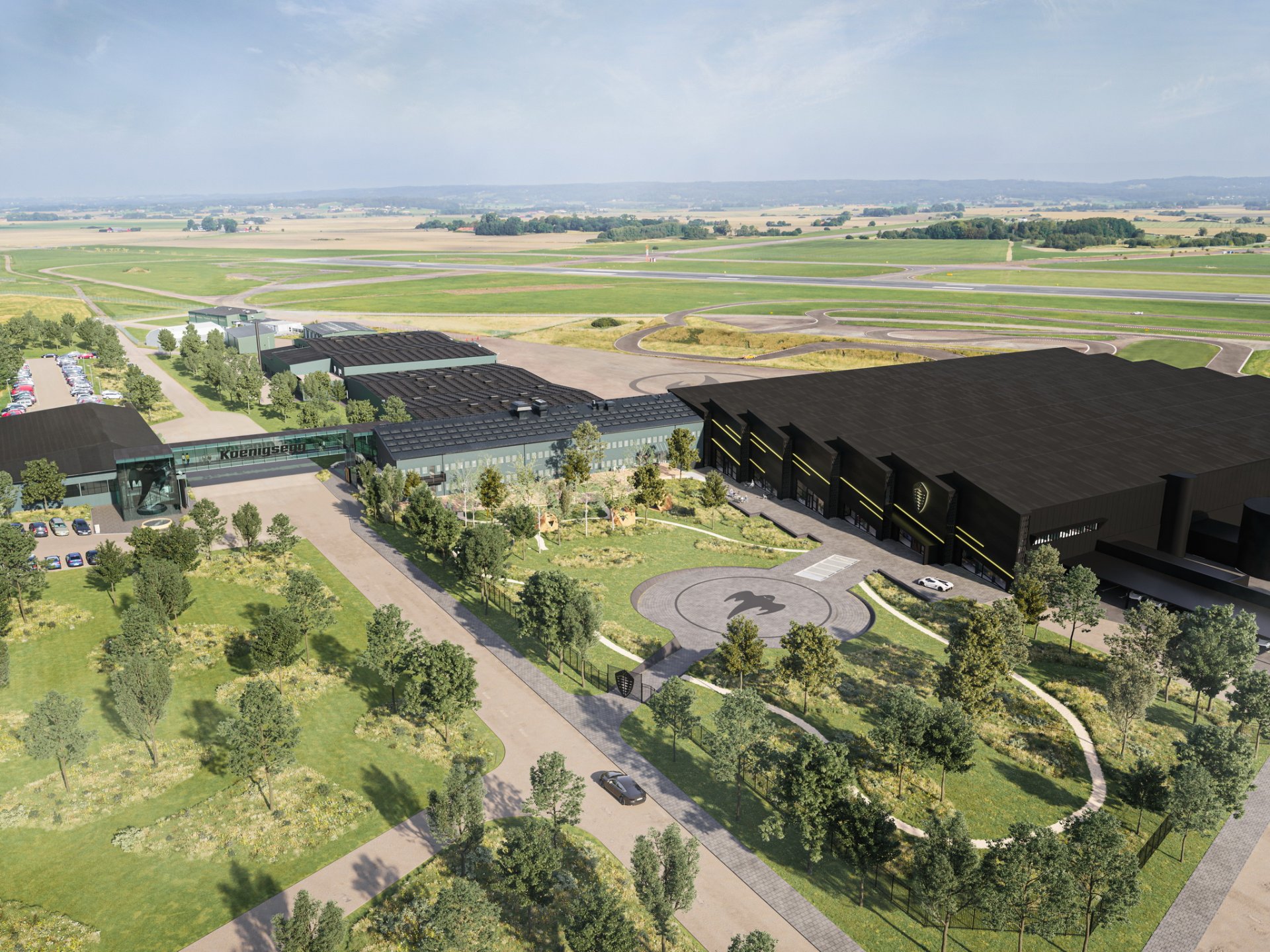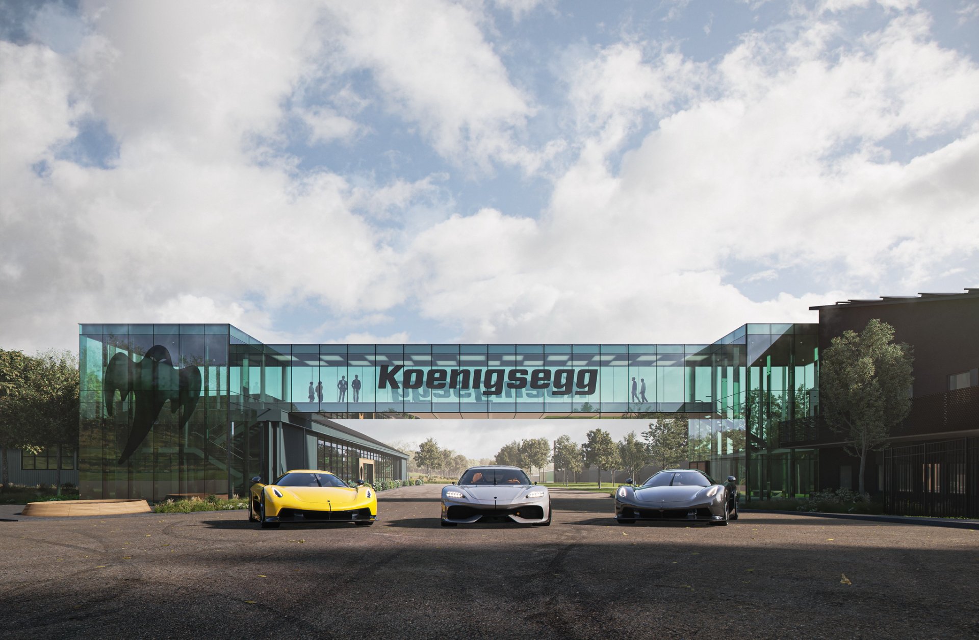 โรงงานใหม่ Koenigsegg ใหม่ที่เราเห็นนี้ ไม่ได้ย้ายไปสร้างใหม่ที่ไหนยังคงอยู่ที่เมืองแองเกลโฮล์ม สวีเดน เหมือนเดิม โดยตัวอาคารใหม่จะเชื่อมกับอาคารสำนักงานใหญ่ที่มีอยู่ในปัจจุบัน การออกมาภายนอกดูล้ำสมัยติดตั้งแผงโซล่าเซลล์ เน้นความโปร่งโล่งแสงสาดส่องเข้ามาได้ง่าย ที่นี่จะเป็นโรงงานสำหรับสร้าง Gemera และพัฒนาเทคโนโลยีต่างๆ รวมถึงมีห้องรับรองลูกค้าสไตล์ ultra-modern, โชว์รูม, ที่จัดอีเว้นไว้เปิดตัวรถใหม่, ออฟฟิศสำนักงาน และพื้นที่ค้าปลีก บริเวณภายนอกอาคารก็ปรับปรุงใหม่หมดให้มีความสวยงาม เพิ่มพื้นที่สีเขียว ยิมกลางแจ้ง ที่รับประทานอาหารพนักงาน มีลานจอดเฮลิคอปเตอร์ และจะมีสนามแข่งไว้พัฒนาทดสอบรถ หรือให้ลูกค้ามาลองรถได้เลย