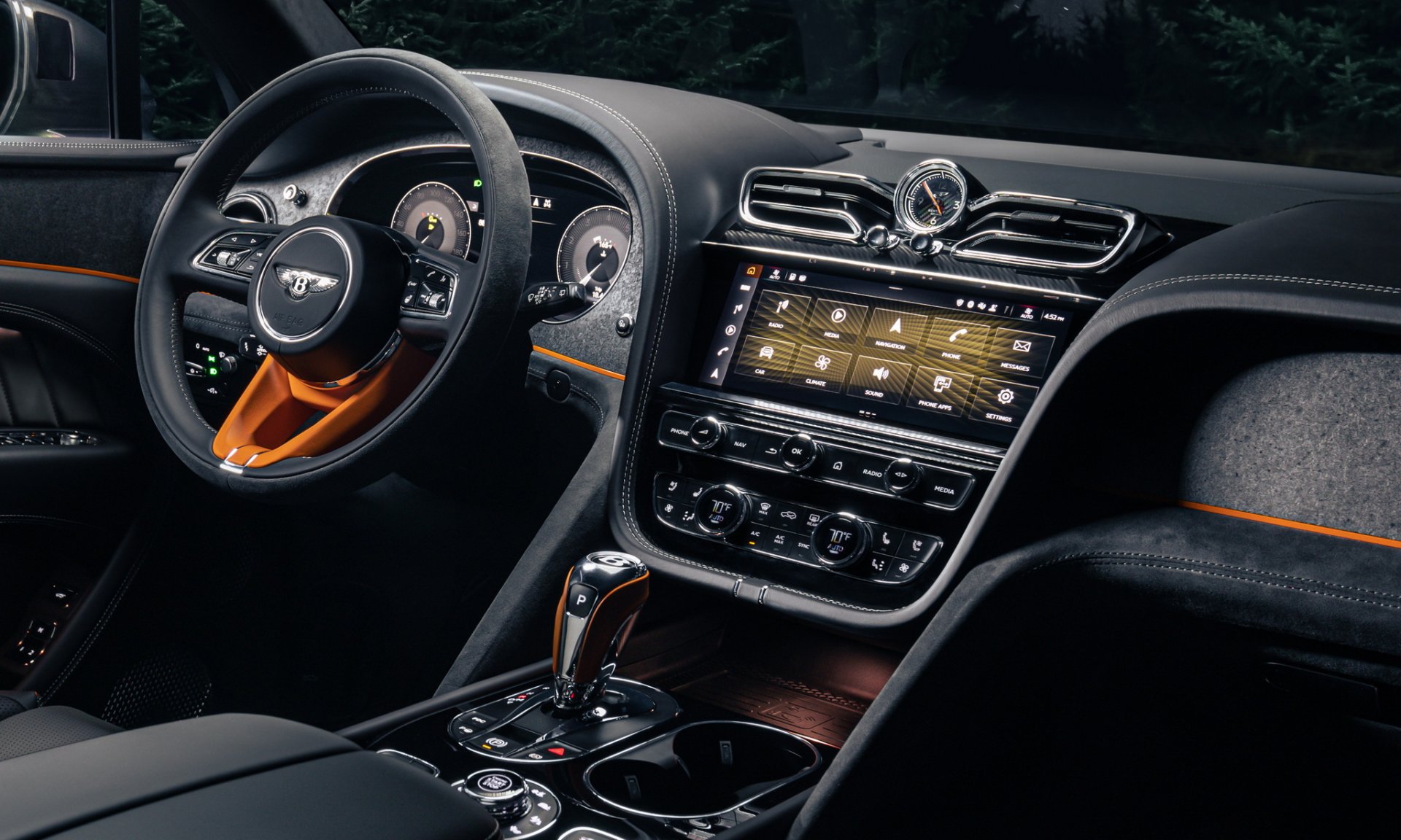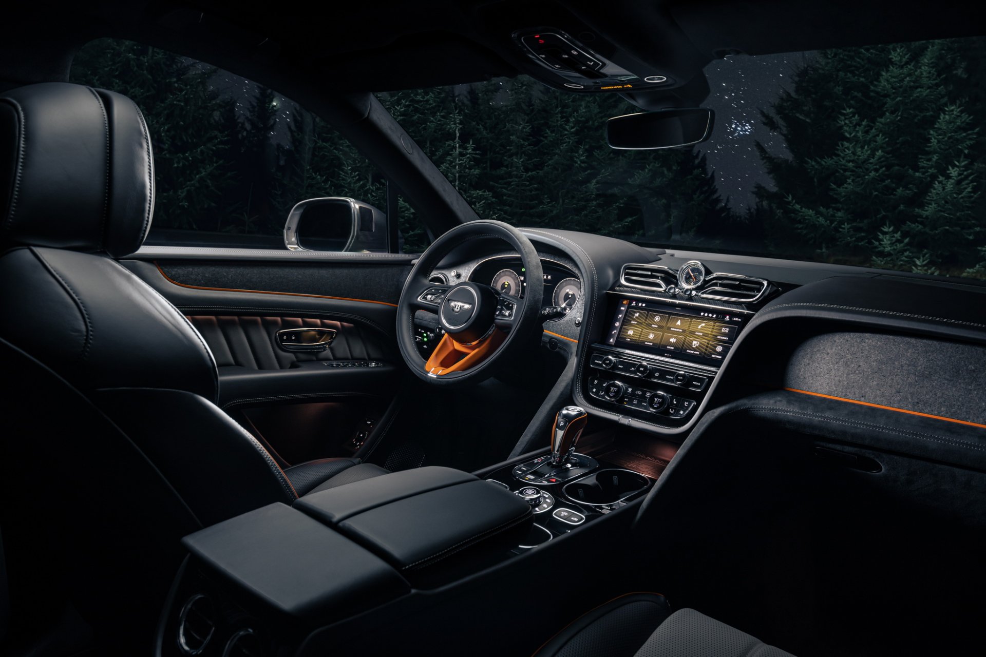ห้องโดยสารก็ทำพิเศษตั้งแต่ กาบบันไดอลูมิเนียมมีไฟเรืองแสงเป็นภาพดาวเคราะห์ที่โคจรรอบระบบสุริยะ แผงคอนโซลหน้าก็เป็นลวดลายพิเศษเหมือนหินดาวเคราะห์ล่องลอย วัสดุหนังเน้นโทนมืดคือดำ Beluga และเทา Porpoise ตัดเด่นด้วยสีส้ม Orange Flame มีทอดแทรกด้วย Alcantara บริเวณพวงมาลัย แผงประตู และส่วนล่างคอนโซลหน้า ช่องตะแกรงลำโพง Naim ก็ทำเป็นสีดำด้านด้วย