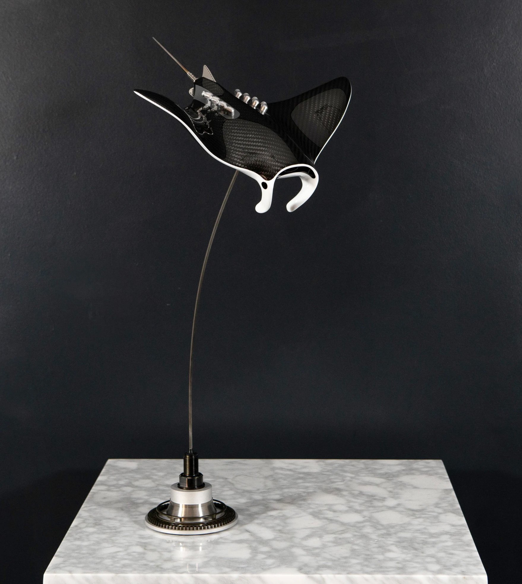ผลงานนี้รังสรรค์โดย Alastair Gibson ผู้ซึ่งนำความรู้ความสามารถของเขาสมัยเป็นหัวหน้าช่างทีมแข่งรถ F1 ฮฮนด้า จนผันตัวกลายเป็นศิลปินสร้างประติมากรรมจากคาร์บอนไฟเบอร์รูปแบบต่างๆ (ดูตัวอย่างได้ด้านล่าง) หรือลองพิมพ์ชื่อเขาใน Google ดู ผลงานสวยๆ ทั้งนั้น และมูลค่าก็สูงเอาเรื่อง