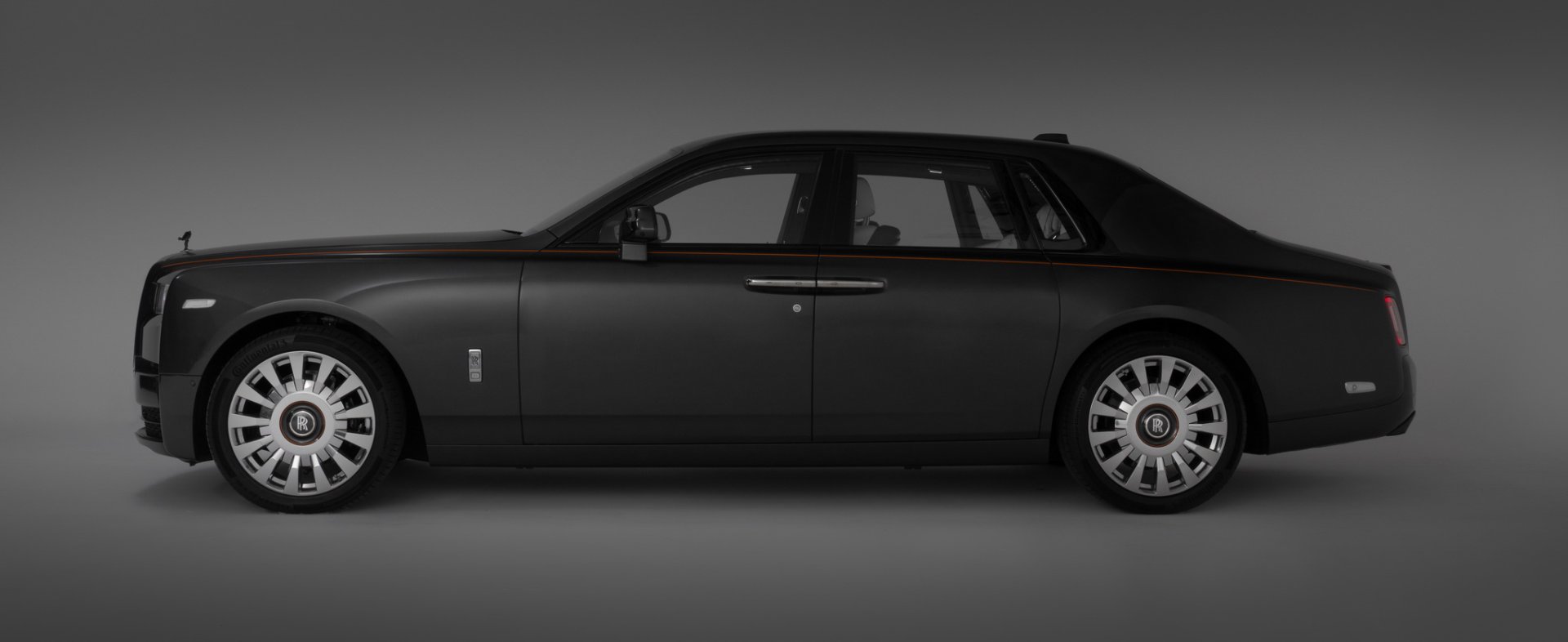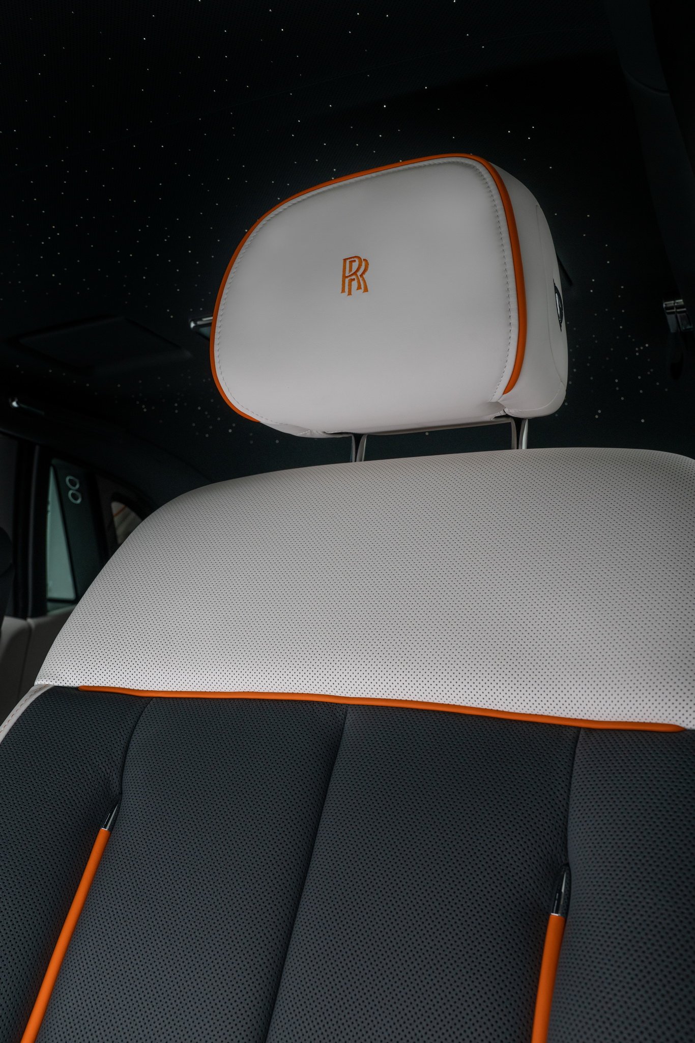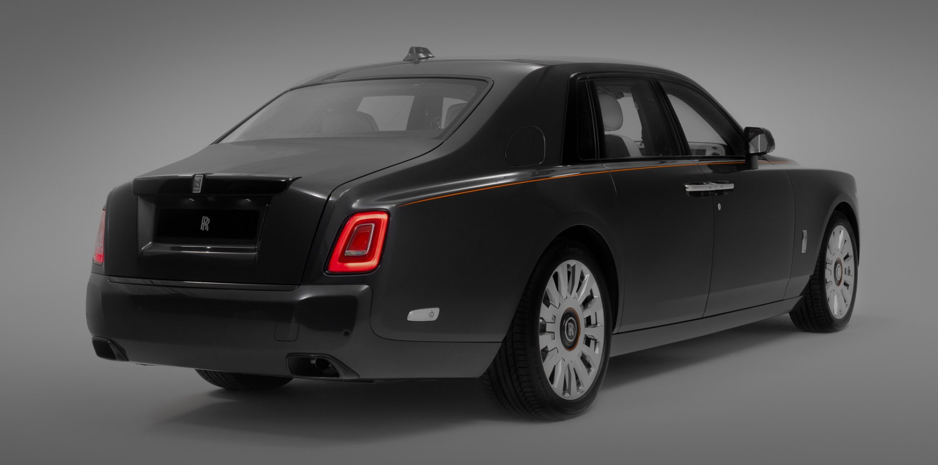 Phantom คันนี้เป็นรุ่นฐานล้อปกติ ภูมิฐานด้วยตัวถังสีเทา Gunmetal ตัดเด่นด้วยเส้น Coachline แบบยาวสีส้ม Mandarin วาดตั้งแต่ปลายฝากระโปรงหน้าไปสุดใกล้ไฟท้าย ซึ่งสีส้ม Mandarin ก็ใส่ไปที่บริเวณดุมล้อด้วย เพิ่มความวัยรุ่นด้วยออฟชั่น Black Detailing เป็นสีดำทั้งหมด ตั้งแต่ กระจังหน้า, กันชนหน้าโครเมียม, กรอบกระจกหน้าต่าง, กรอบไฟท้าย, ปลายท่อไอเสีย, โครเมียมกันชนหลัง และคิ้วฝากระโปรงท้าย และนางฟ้าหน้ารถ Spirit of Ecstasy ก็เลือกเป็นออฟชั่นพิเศษทำจากคาร์บอนไฟเบอร์ทั้งชิ้น
