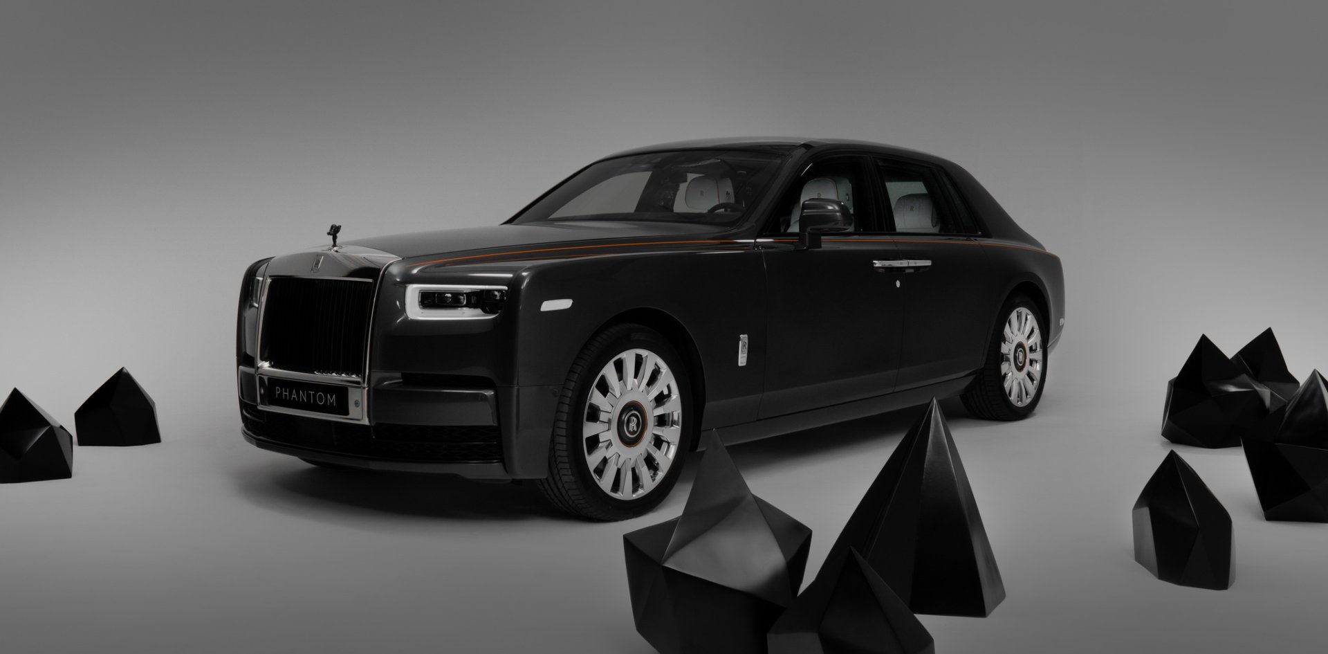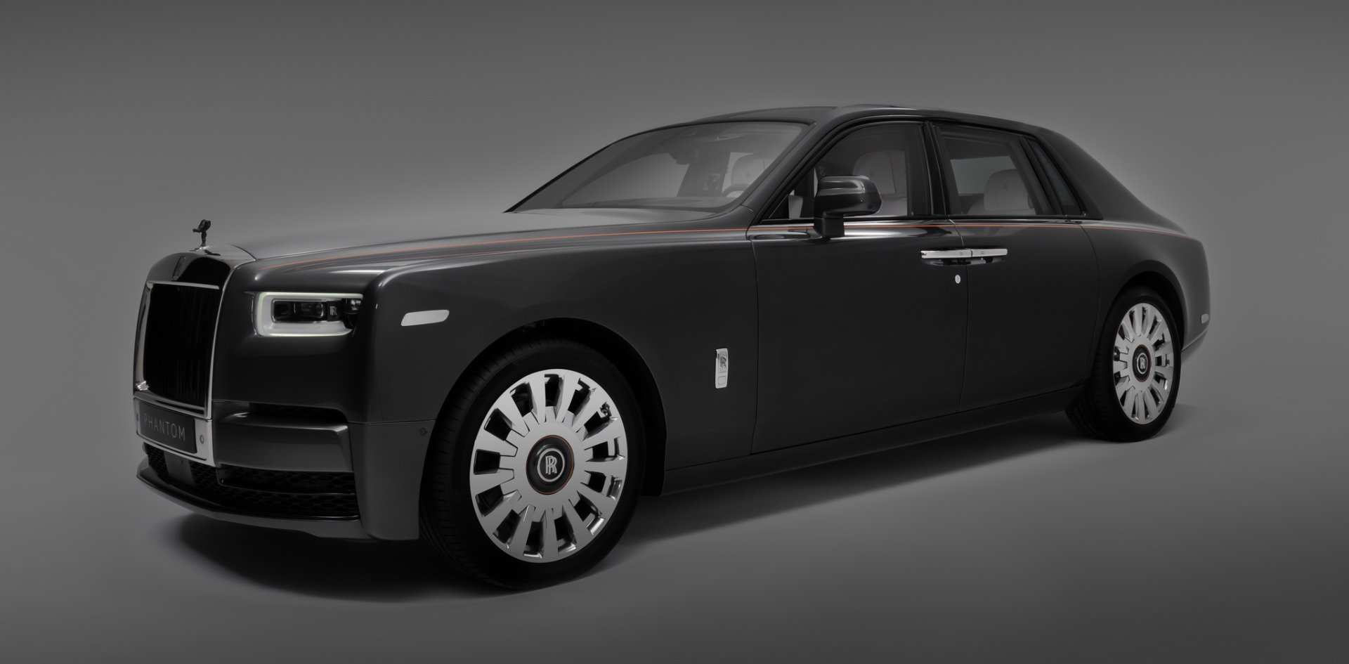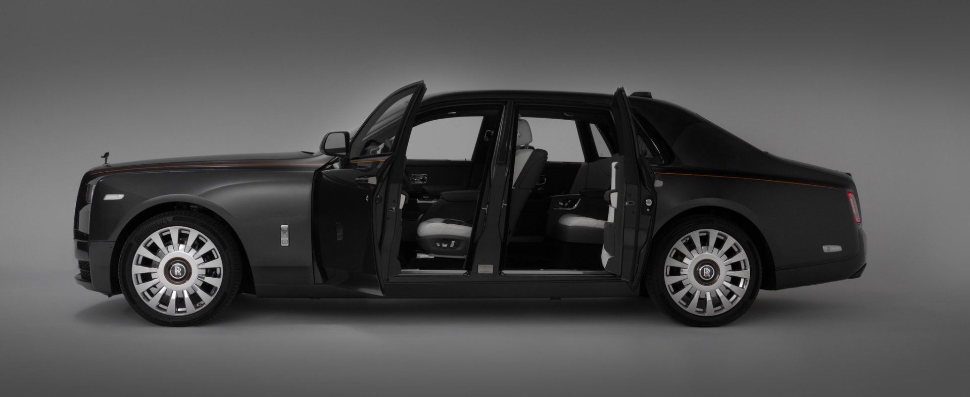 Phantom คันนี้เป็นรุ่นฐานล้อปกติ ภูมิฐานด้วยตัวถังสีเทา Gunmetal ตัดเด่นด้วยเส้น Coachline แบบยาวสีส้ม Mandarin วาดตั้งแต่ปลายฝากระโปรงหน้าไปสุดใกล้ไฟท้าย ซึ่งสีส้ม Mandarin ก็ใส่ไปที่บริเวณดุมล้อด้วย เพิ่มความวัยรุ่นด้วยออฟชั่น Black Detailing เป็นสีดำทั้งหมด ตั้งแต่ กระจังหน้า, กันชนหน้าโครเมียม, กรอบกระจกหน้าต่าง, กรอบไฟท้าย, ปลายท่อไอเสีย, โครเมียมกันชนหลัง และคิ้วฝากระโปรงท้าย และนางฟ้าหน้ารถ Spirit of Ecstasy ก็เลือกเป็นออฟชั่นพิเศษทำจากคาร์บอนไฟเบอร์ทั้งชิ้น