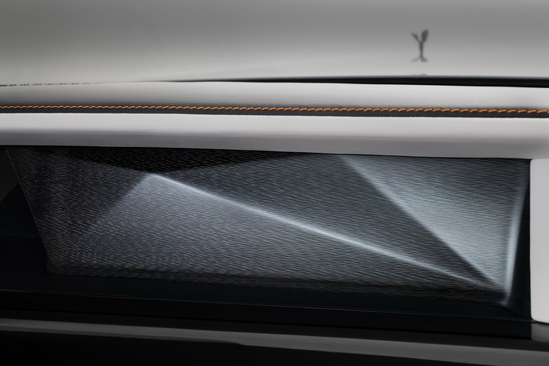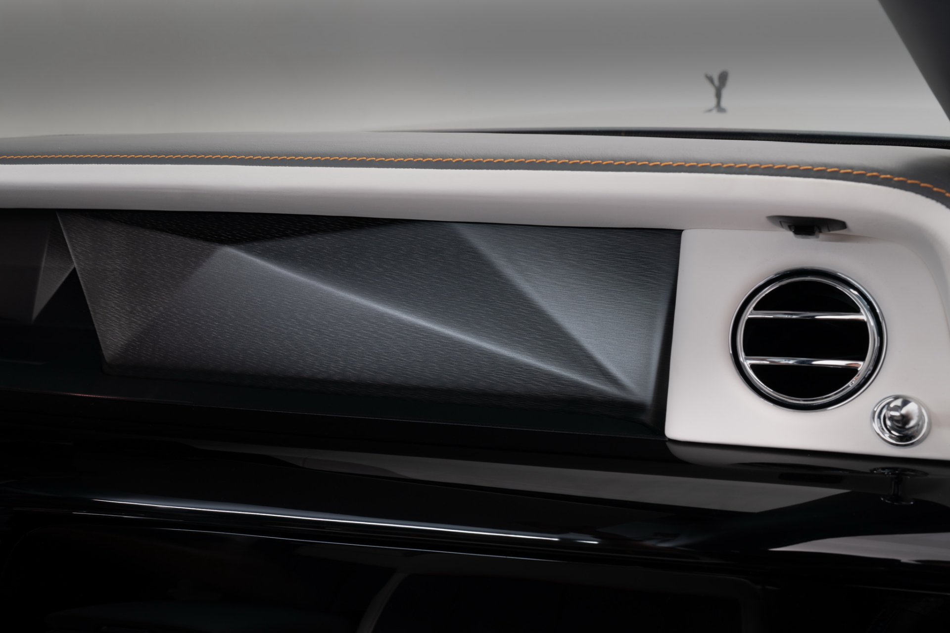อย่างที่เรารู้กันไม่ว่า Phantom หรือ Ghost รุ่นใหม่ จะมีแผงคอนโซลหน้าเรียกว่า Gallery ซึ่งเป็นจุดโชว์งานศิลปะตามใจชอบอะไรก็ได้ในโลก สำหรับคันนี้จะได้งานศิลปะชิ้นพิเศษเรียกว่า Carbon Veil ทำจากคาร์บอนไฟเบอร์ ดีไซน์เฉียบคมหักมุมซึ่งได้แรงบันดาลใจจากเรือยอชท์ 118 WallyPower โดยกรรมวิธีของมันเป็นแผ่นคาร์บอนฯ ลายขนานกันตลอดแนวที่ซ้อนกันมากถึง 150 ชั้น ถูกแทรกด้วยเรซินและบีบอัดจนรวมเป็นชิ้นเดียว พื้นผิวคาร์บอนจะมีการเคลือบแล็กเกอร์ใสหรือเคลือบด้านตามความชอบลูกค้า ซึ่งจะช่วยด้วยดึงลวดลายพื้นผิวให้เด่นออกมาและปกป้องชิ้นงานจากรังสีอัลตราไวโอเลต ตบท้ายด้วยการปิดผนึกด้วยกระจกใสที่จะถูกประกอบในห้อง Clean Room ที่ Goodwood เป็นโรงงานเกรดทางการแพทย์ ปราศจากฝุ่นปลอดเชื้อ 100%