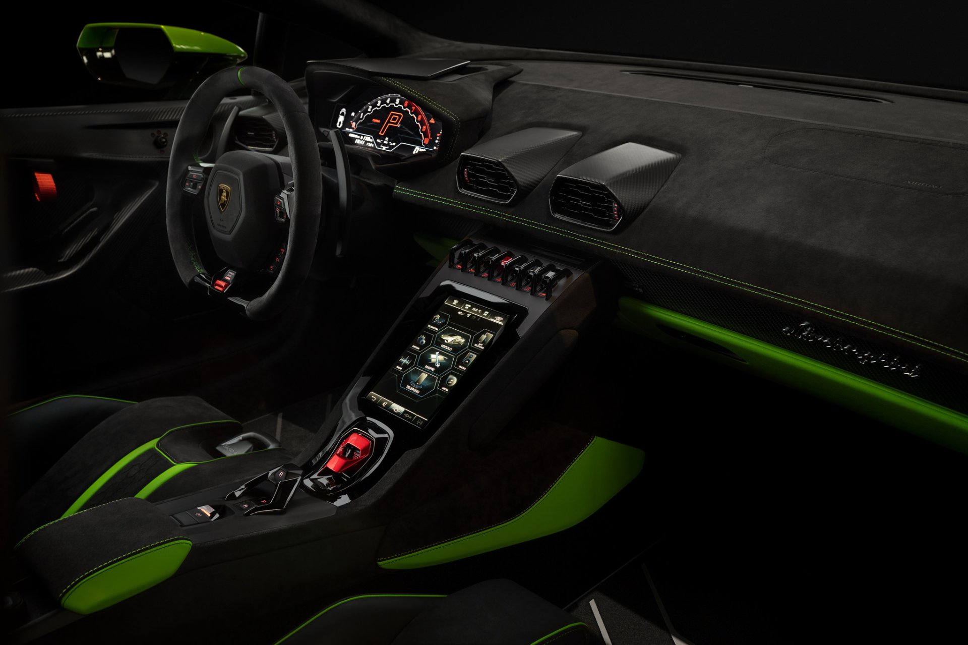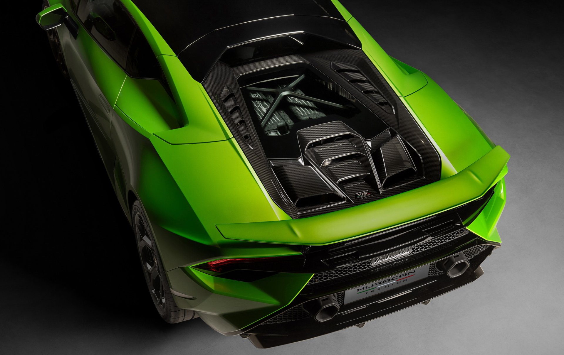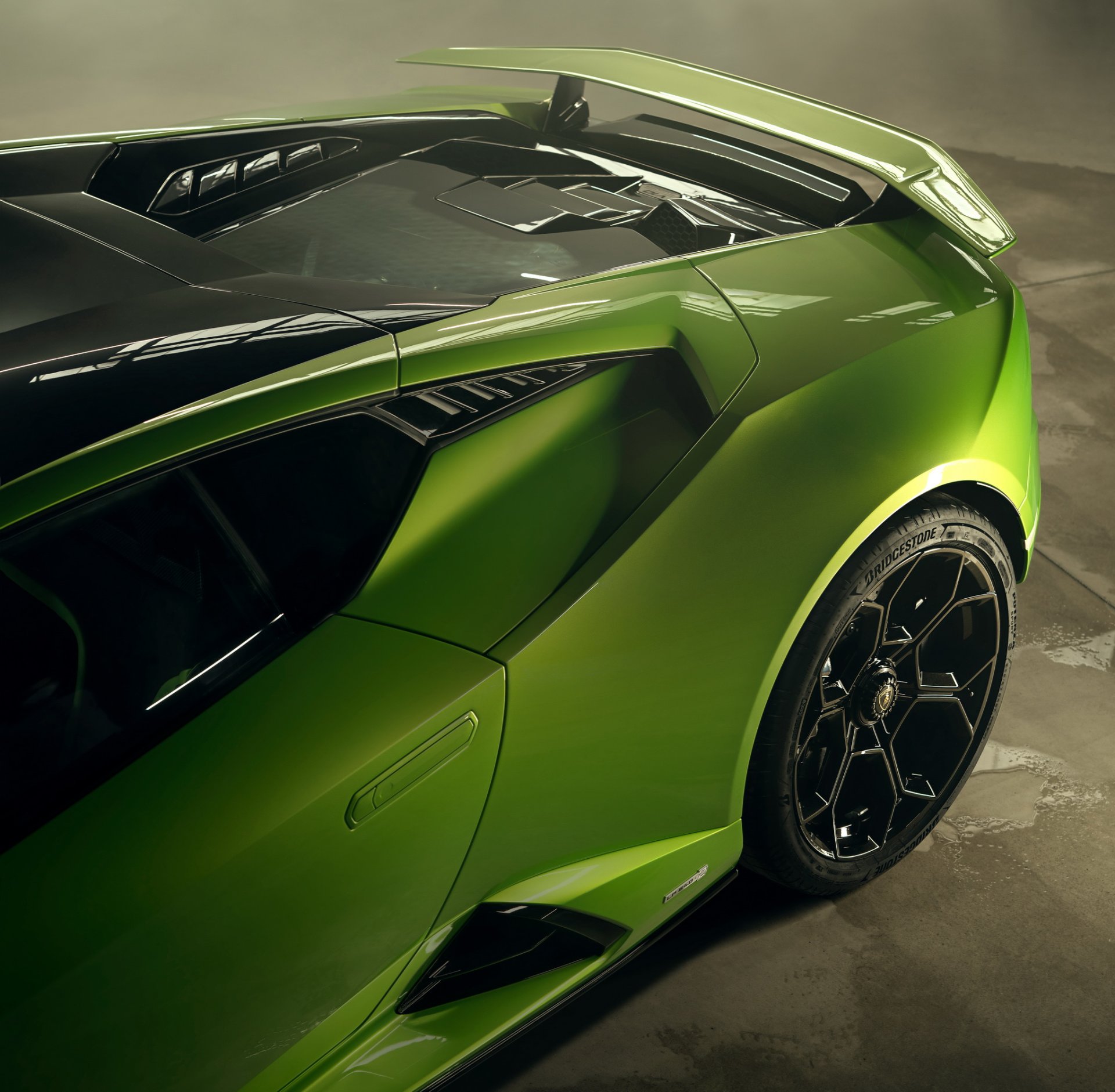 Huracan Tecnica เป็นรุ่นอยู่กึ่งกลางระหว่าง Huracan EVO RWD และ STO เพราะงั้นใครที่ว่า STO โหดดิบเกินไป และ EVO RWD อาจยังดูซอฟไปหน่อย เราขอแนะนำเป็น Tecnica นี่เลย เมื่อมองผิวเผินมิติตัวรถดูไม่มีไรเปลี่ยนแปลง แต่ตัวรถนั้นยาวขึ้น 6.1 ซม. จาก Huracan EVO ด้านหน้ารถได้กันชนหน้าใหม่ทรงตัว Y มีช่องม่านอากาศ และช่องเฉพาะส่งลมเข้าไปลดอุณหภูมิเบรก ฝากระโปรงหน้าคาร์บอนฯ ได้เบรกคาร์บอน-เซรามิคใส่มาเป็นมาตรฐาน จานหน้าขนาด 380 มม. หลัง 356 มม. ล้อขนาด 20 นิ้ว ก็เป็นลายใหม่ Damiso ที่ดึงแบบมาจาก Lamborghini Vision GT สวมคู่ยาง Bridgestone Potenza Sport ด้านข้างตัวรถยังมีช่องดักลมหลังหน้าต่างที่ดึงสไตล์จากตัวโหด Essenza SCV12 บั้นท้ายก็เปลี่ยนแปลงเยอะ ได้ฝาครอบเครื่องคาร์บอนฯ Huracan ปกติจะเป็นกระจกชิ้นเดียวเอียงลาดลงมาจากหลังคา แต่ดีไซน์ใหม่จะเป็นแนวราบแยกส่วนกับกระจกหลังชัดเจนซึ่งน่าจะช่วยเรื่องทัศนวิสัยได้ดีขึ้น กันชนท้ายก็ทรงใหม่ดิฟฟิวเซอร์ชิ้นใหญ่ขึ้น ปลายท่อไอเสียคู่เป็นทรงหกเหลี่ยมแบบ Sian ซึ่งได้รับการปรับปรุงให้เสียงดุดันเร้าใจกว่าเดิม และปีกหลังใหม่แบบยึดตายตัว ช่วยเพิ่มแรงกดในส่วนท้ายขึ้นอีก 35% เมื่อเทียบกับ EVO RWD แถมแรงต้านอากาศก็ลดลงด้วย 20%