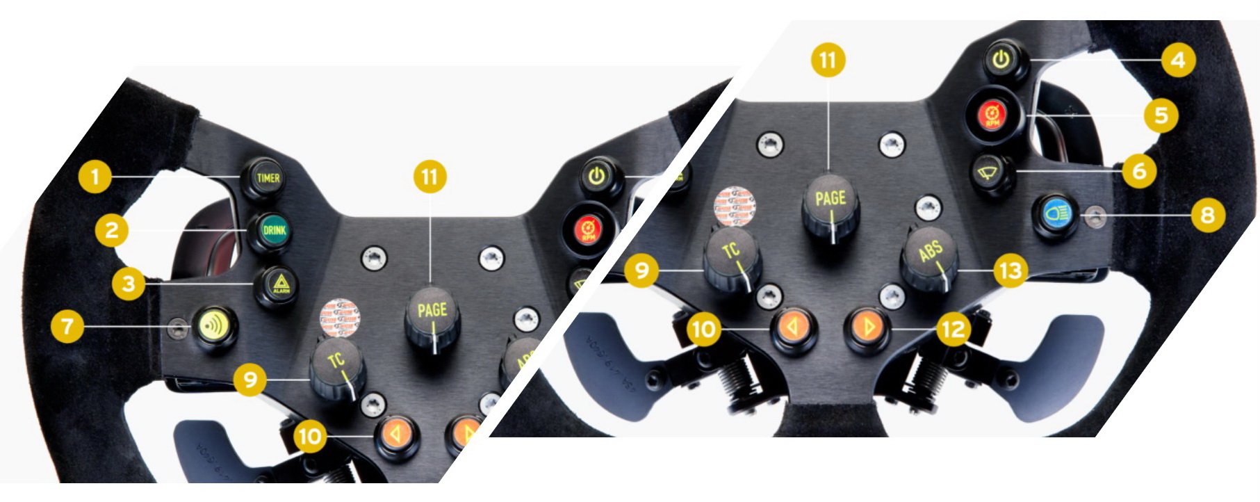 1. ปุ่ม TIMER ใช้เปิด-ปิดตัวจับเวลา laptimer ใน pitlane 2. ปุ่ม DRINK ใช้เมื่อนักขับหิวน้ำ