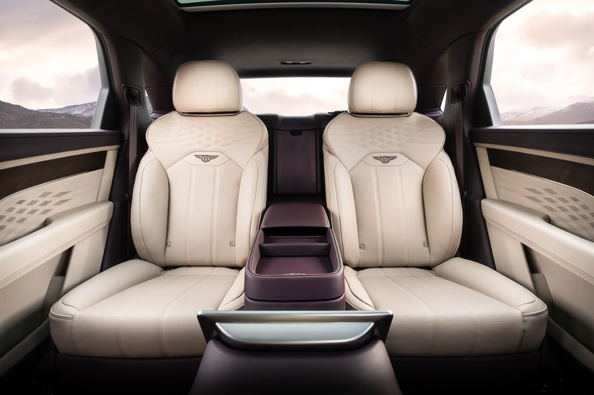 ห้องโดยสารถือเป็นจุดแข็งของรุ่นนี้ เมื่อเทียบกับเอสยูวีหรูแบรนด์อื่นๆ มันยาวมากกว่า 40 มม. มี Headroom เพิ่มขึ้น 10 มม. เมื่อเทียบกับ Mulsanne แต่ทรงหลังคานั้นดูลาดต่ำกว่าคู่แข่ง 100 มม. ทำให้ดูสปอร์ตเมื่อมองจากภายนอก บานประตูหลังสามารถกดปิดแบบไฟฟ้าได้ ซันรูฟแบบพาโนรามาก็ปรับตำแหน่งใหม่ ยังมีออฟชั่นใหม่ที่ Bentayga รุ่นอื่นไม่มี คือที่นั่งด้านหลังแบบ Airline Seat นวดได้หลายจุดมาก ปรับได้เยอะถึง 22 ทิศทาง เอนได้สูงสุด 40 องศา ที่วางเท้าซ่อนอยู่ท้ายเบาะคู่หน้า ตัวเบาะยังใส่เทคโนโลยี Seat Auto Climate ผู้โดยสารสามารถปรับอุณหภูมิได้ 6 ระดับ จะมีการวัดอุณหภูมิและค่าความชื้นในขณะนั้น ช่วยลดความเมื่อยล้าผ่อนคลายตลอดการเดินทาง และยังมีระบบอุ่นที่แผงประตูหลังและที่พนักแขนตรงกลางด้วย การปรับต่างๆ เหล่านี้ สามารถควบคุมผ่านจอทัชสกรีนมือถือที่ติดอยู่ช่องแอร์กลางด้านหลัง