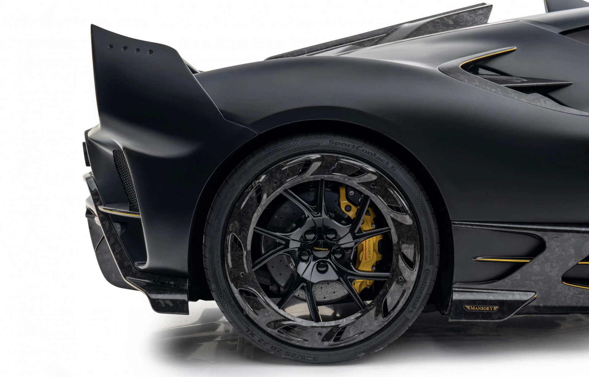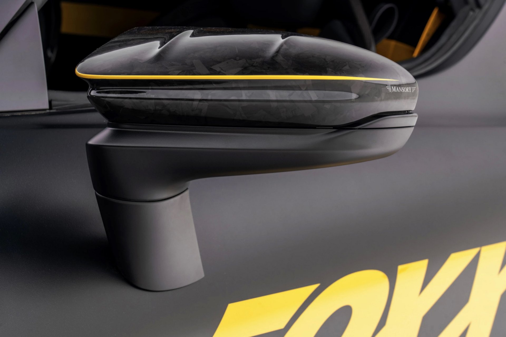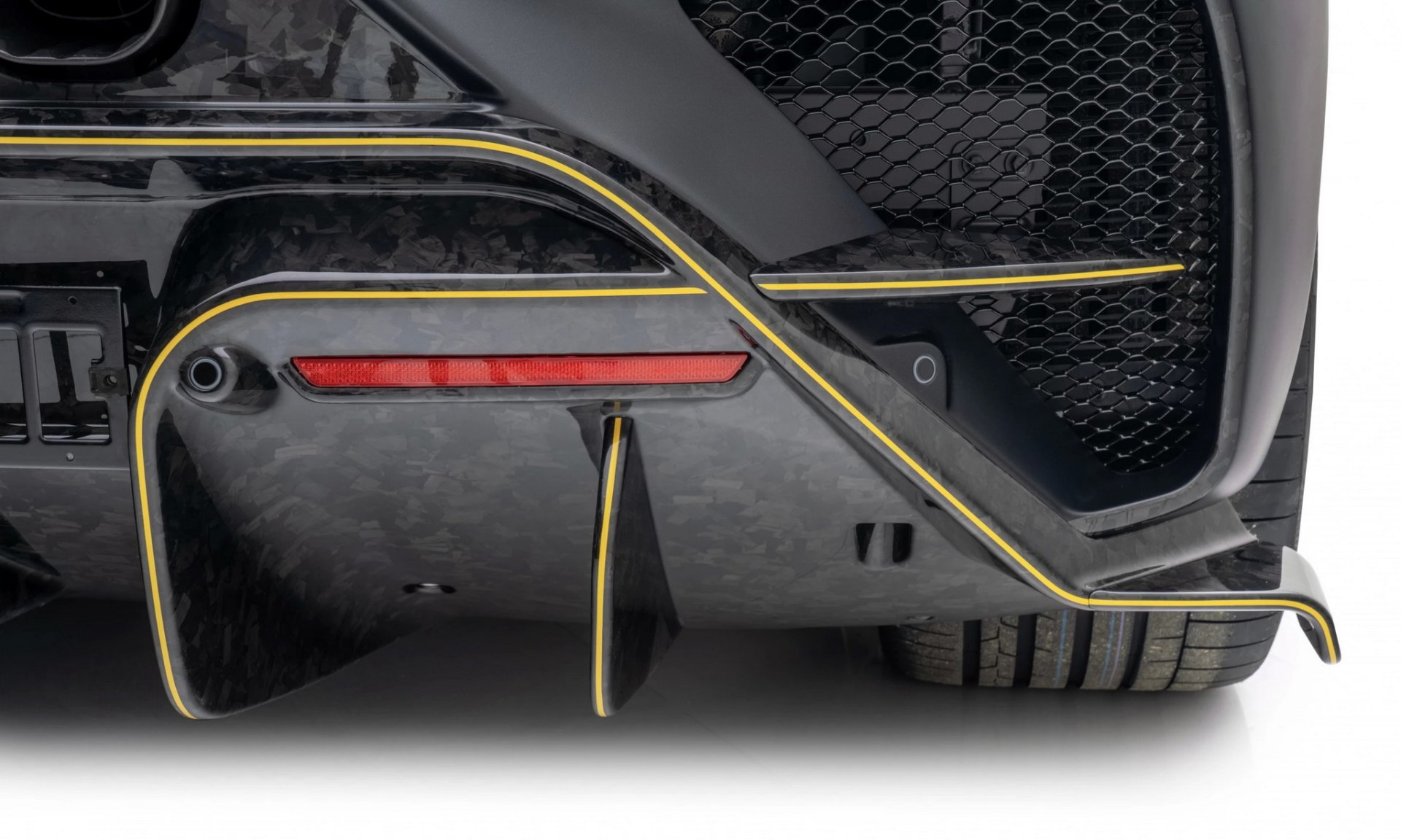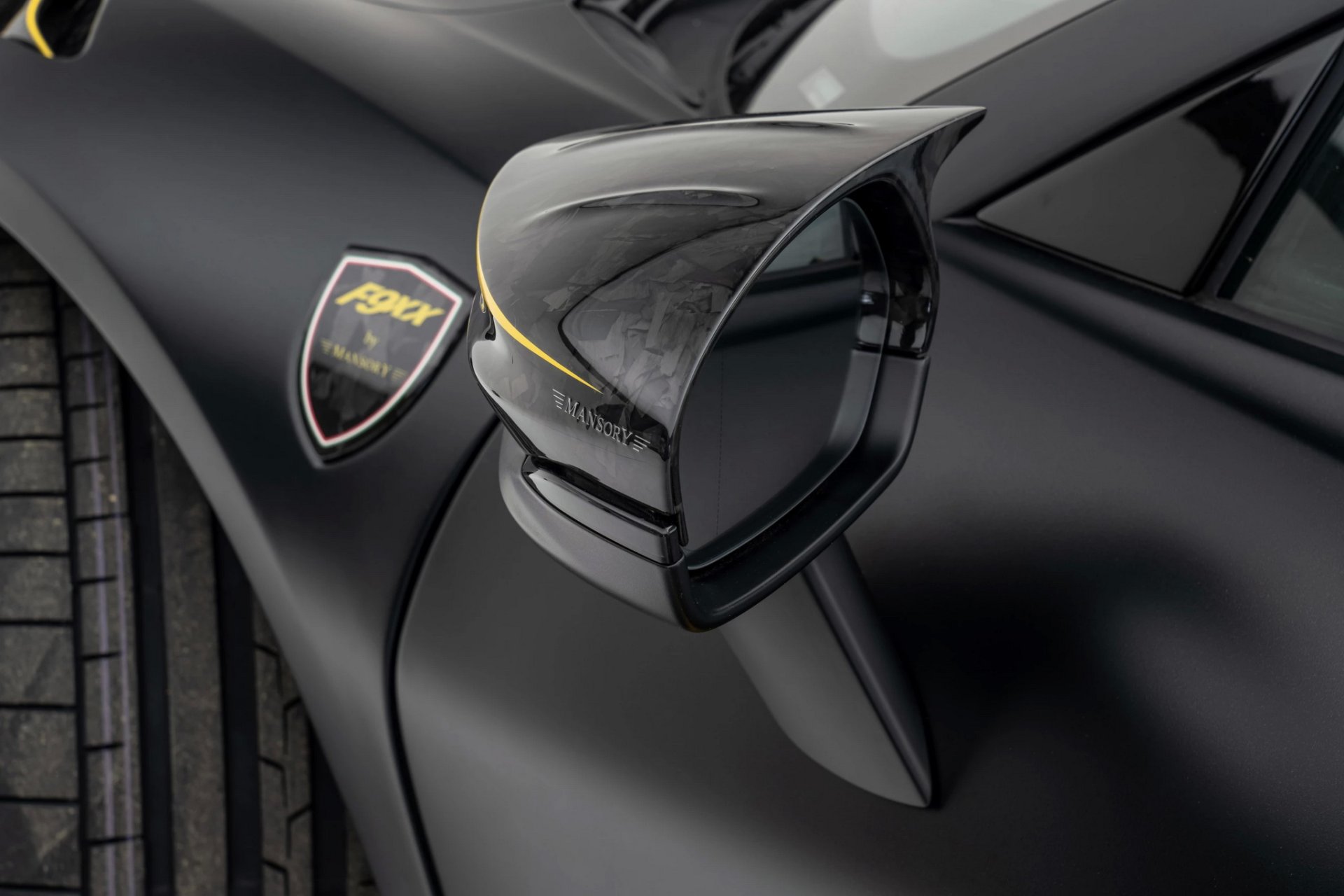 นี่คือ Ferrari SF90 แต่งเต็มนามว่า Mansory F9XX รูปทรงทำเอานึกถึงรถแข่ง FXX-K EVO กันเลย ตัวถังรอบคันมีส่วนประกอบจากฟอร์จคาร์บอนฯ เพื่อความเบา กันชนหน้าใหม่หมด ลิ้นหน้าขนาดใหญ่ช่วยสร้างแรงกด ขยายช่องลมเพื่อรับอากาศเข้าสู่หม้อน้ำมากขึ้น เพิ่มครีบช่องลมเหนือซุ้มล้อหน้า ฝากระโปรงคาร์บอนล้วน ด้านข้างอลังกาลด้วยล้อลาย "YT.5 Air" ขึ้นเป็นฟอร์จชิ้นเดียว ขนาดด้านหน้า 21 นิ้ว หลัง 22 นิ้ว ส่วนบน Scoop ดักลมเข้าเครื่อง (รุ่น Spider ไม่มี) ปีกท้ายขนาดใหม่เป็นชิ้นเดียวกับกันชน รับกับดิฟฟิวเซอร์คู่ที่ทำมารองรับการไหลกระแสลมใต้รถกับแรงกดได้ยอดเยี่ยม ปลายท่อไอเสียจัดแบบโหดๆ 4 ท่อ เสียงลั่นแน่นอน นอกจากนี้ช่วงล่างก็ปรับเปลี่ยนใหม่ด้วย
