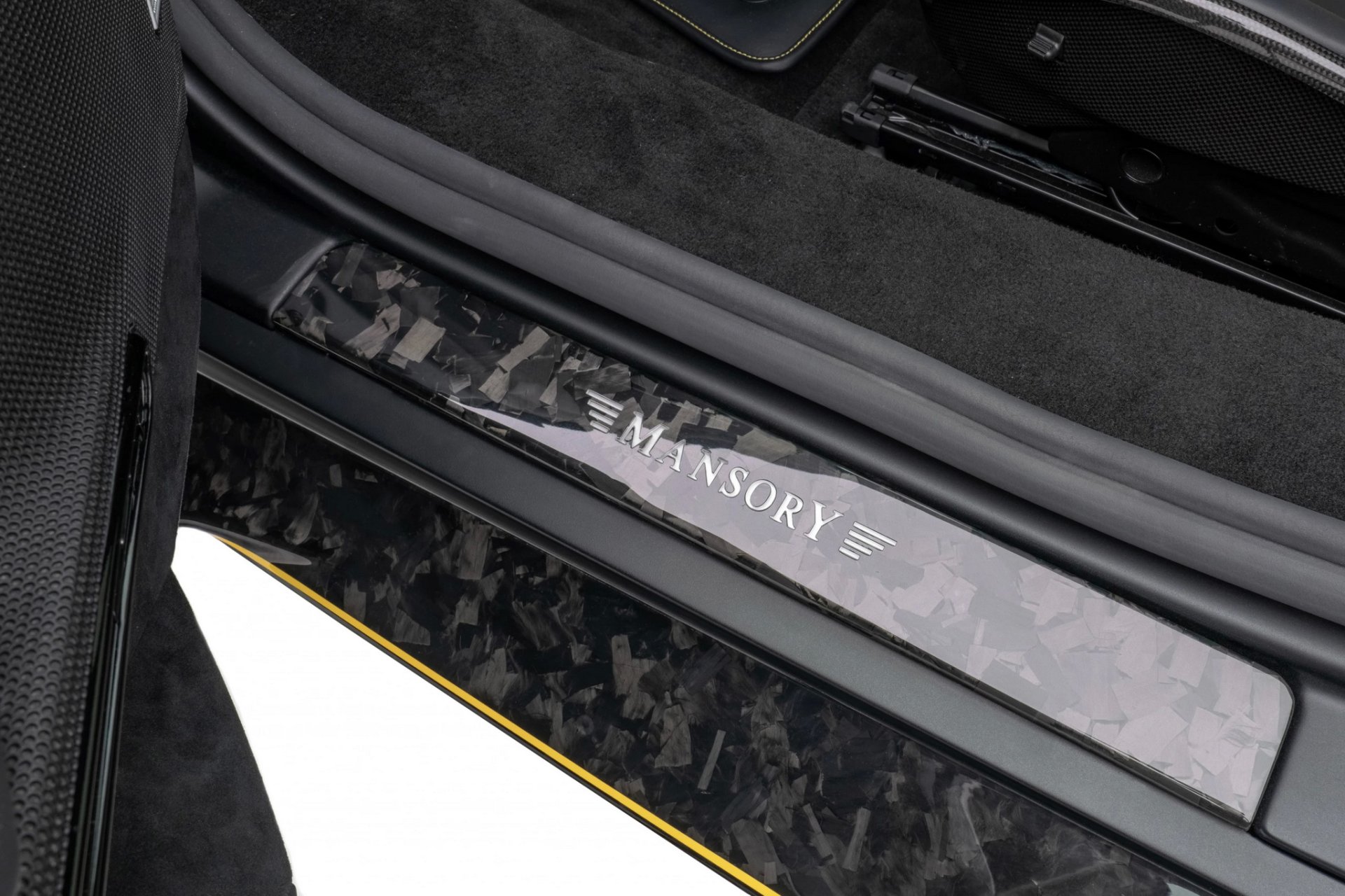 งานภายในห้องโดยสารยังคงในแนวสปอร์ต เน้นใช้หนังแท้ทั้งหมดเป็นสีทูโทนดำตัดเหลือง (เลือกสีหรือวัสดุอื่นได้) เพิ่มดุด้วยคาร์บอนไฟเบอร์ตามจุดต่างๆ พวงมาลัย พรมปูพื้น หมอนรองศรีษะและเข็มขัดนิรภัยปักตรา Mansory ทำพิเศษมาเพื่อคุณโดยเฉพาะ