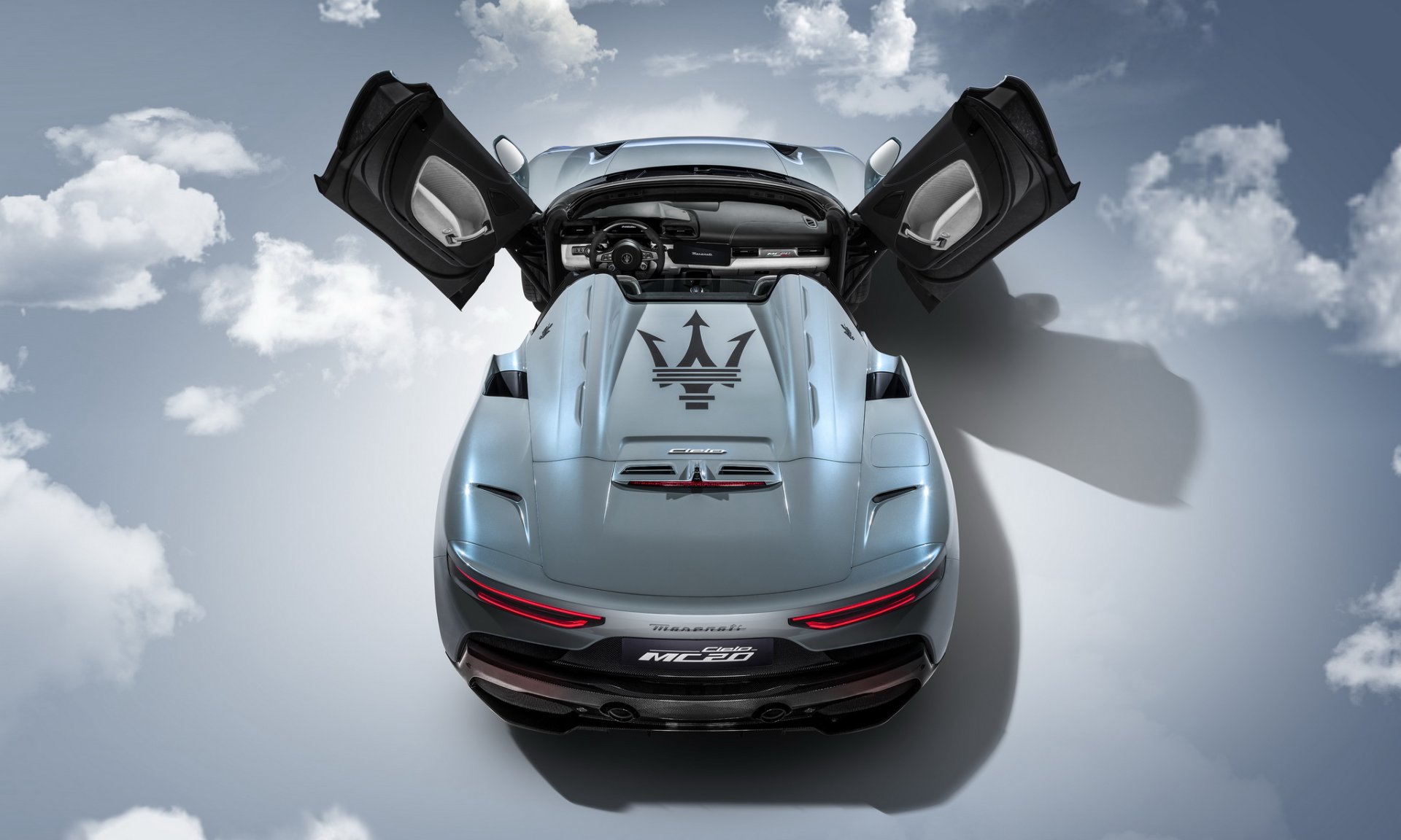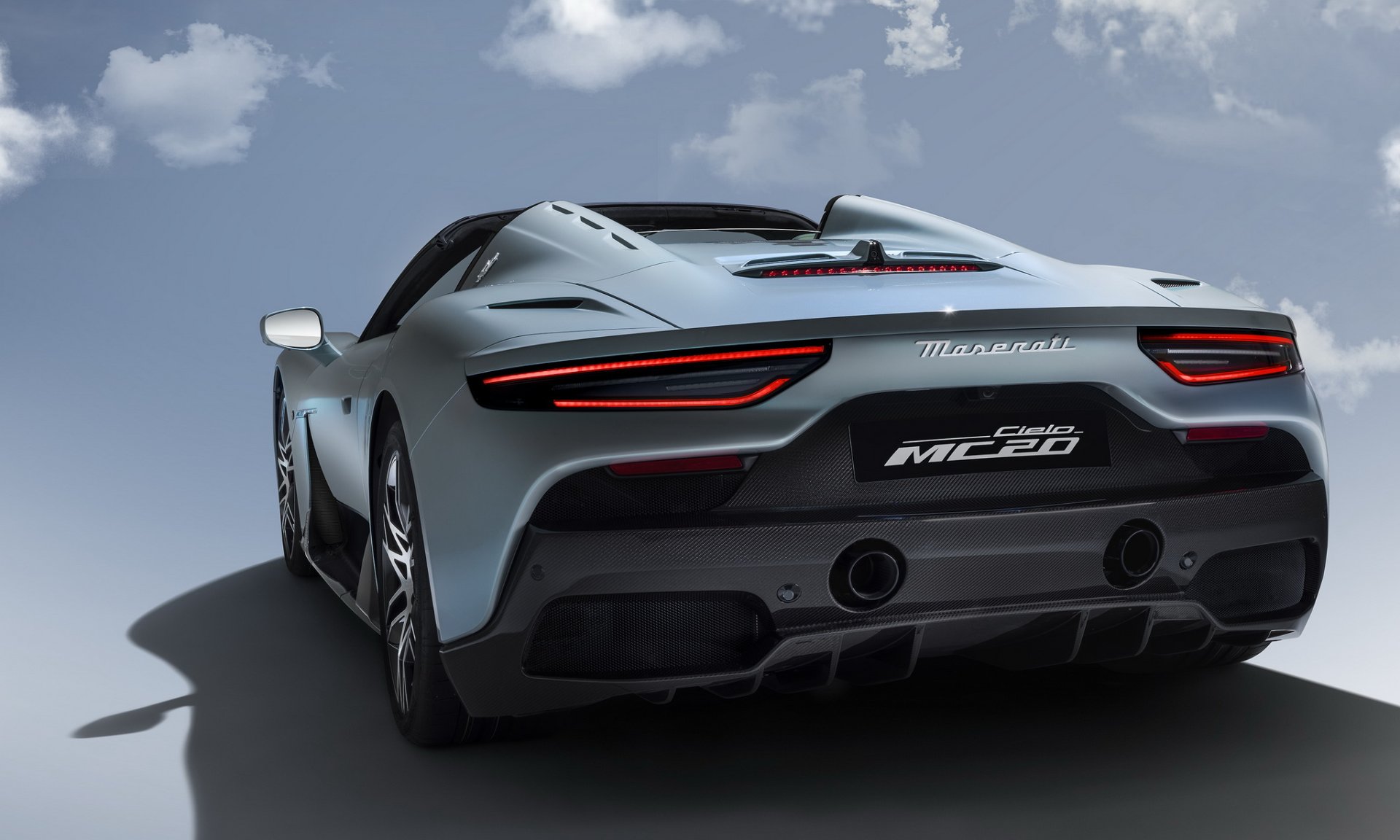 MC20 Cielo (Cielo แปลว่า ท้องฟ้า) เปิดประทุนสุดหรู มาพร้อมหลังคาไฟฟ้าเปิด-ปิดรวดเร็วใน 12 วินาที ตัวหลังคาใช้กระจกแบบอิเล็กโตรโครมิกปรับความทึบแสงได้ ด้วยกลไกหลังคาที่เพิ่มเข้ามาทำให้รุ่นนี้จะมีน้ำหนักเพิ่มจากรุ่นคูเป้ 65 กก. ด้านอากาศพลศาสตร์ได้รับการปรับปรุงทดสอบในอุโมงค์ลม ให้การขับขี่ยอดเยี่ยมทั้งตอนปิดและปิดหลังคา ไม่มีอะไรถูกตัดออกไปจากรุ่นคูเป้คุณยังได้บานประตูเปิดแบบปีกผีเสื้อเช่นเคย