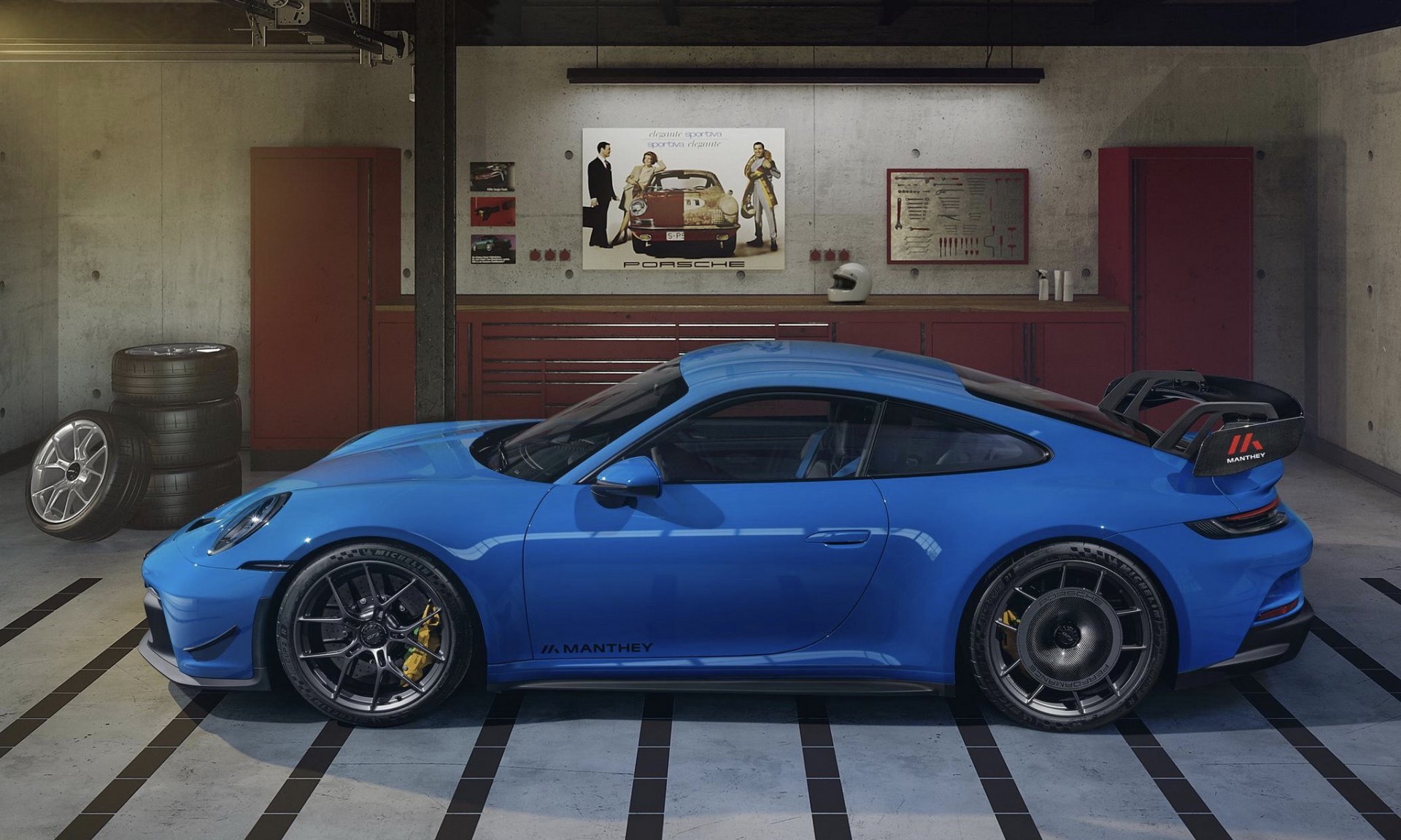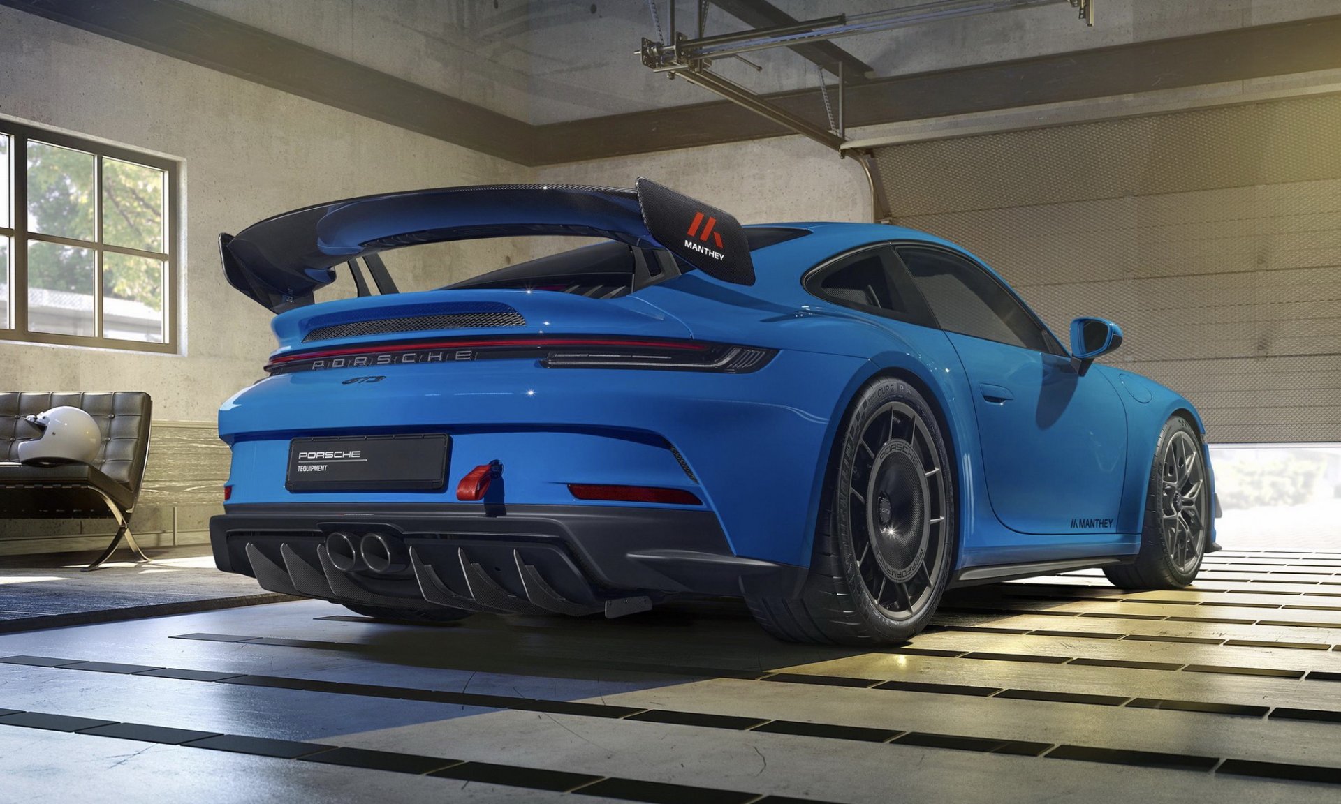 Manthey Performance Kit เป็นชุดแต่งที่ร่วมมือกันระหว่าง Porsche กับทาง Manthey โดยจะปรับแต่งเฉพาะด้านแอร์โรไดนามิกกับส่วนของแซสซี ไม่ยุ่งเกี่ยวกับเครื่องยนต์ เริ่มจากหน้ารถ จะได้ลิ้นใต้กันชนที่ใหญ่ขึ้นกับเพิ่มครีบที่ข้างกันชนสองฝั่งช่วยสร้างแรงกดได้ดี ส่วนท้ายรถติดตั้งปีกท้ายใหม่ขนาดกว้างขึ้นพร้อมโลโก้ Manthey ชุดดิฟฟิวเซอร์ขนาดยังเท่าเดิมแต่ขยายขนาดตัวครีบและเปลี่ยนวัสดุเป็น CFRP (Carbon Fiber Reinforced Polymer) และล้อฟอร์จด้านหลังยังเพิ่มจาน aerodiscs ทำจาก CFRP เช่นกัน ช่วยเพิ่มประสิทธิภาพแอโรไดนามิกของรถ