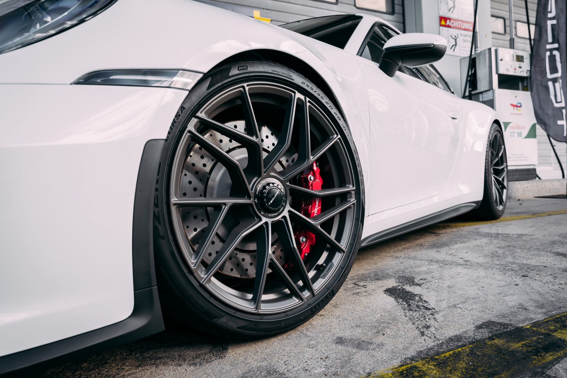 TechArt 911 GTS จัดมาแบบหล่อๆ ด้วยชุดแต่ง TECHART Aerokit ที่มีการทดสอบผ่านอุโมงค์ลมมาอย่างดี ให้การขับที่ดีขึ้นแน่นอน ชิ้นส่วนประกอบด้วย ชุดสปอยเลอร์หน้า ช่องลมกระจังหน้า ฝากระโปรงหน้าคาร์บอนฯ เบาเพียง 6.7 กก. (เบากว่าของเดิม 2.5 กก.) สเกิร์ตข้างแบบครีบฉลาม สปอยเลอร์บนหลังคา ดิฟฟิวเซอร์ท้ายเสริมครีบ และปีกท้ายขนาดใหญ่แบบยึดตายตัว ขายึดเป็นแบบใสทำจากโพลีคาร์บอเนต Makrolon® ถ้าไม่ชอบติดปีกใหญ่ๆ ยังมีสปอยเลอร์ชิ้นเล็กให้เลือก ที่ทำงานร่วมกับสปอยเลอร์แอคทีฟเดิมของรถได้ ส่วนล้อให้มาขนาดด้านหน้า 20 นิ้ว หลัง 21 นิ้ว มีให้เลือกทั้ง Formula VII ลายกังหัน Daytona II ลายคลาสสิค หรือ Formula V แนวสปอร์ท และก็ยังเปลี่ยนคอยล์โอเวอร์สปริงแบบปรับได้ พร้อมระบบ Lift ยกหน้ารถให้ใช้งานสะดวกสบาย
