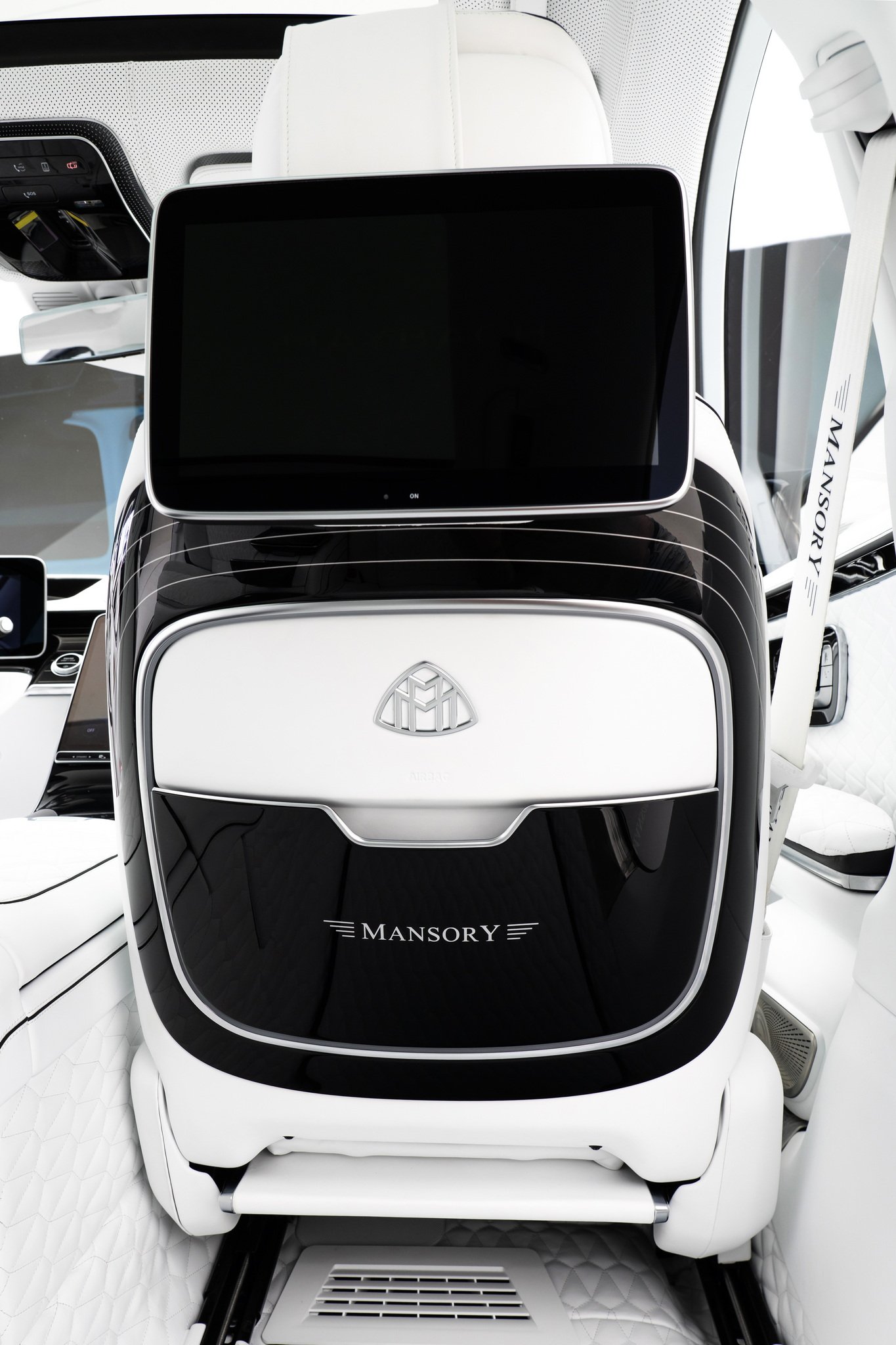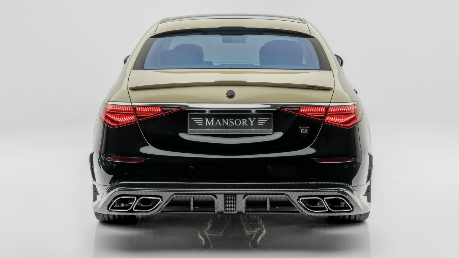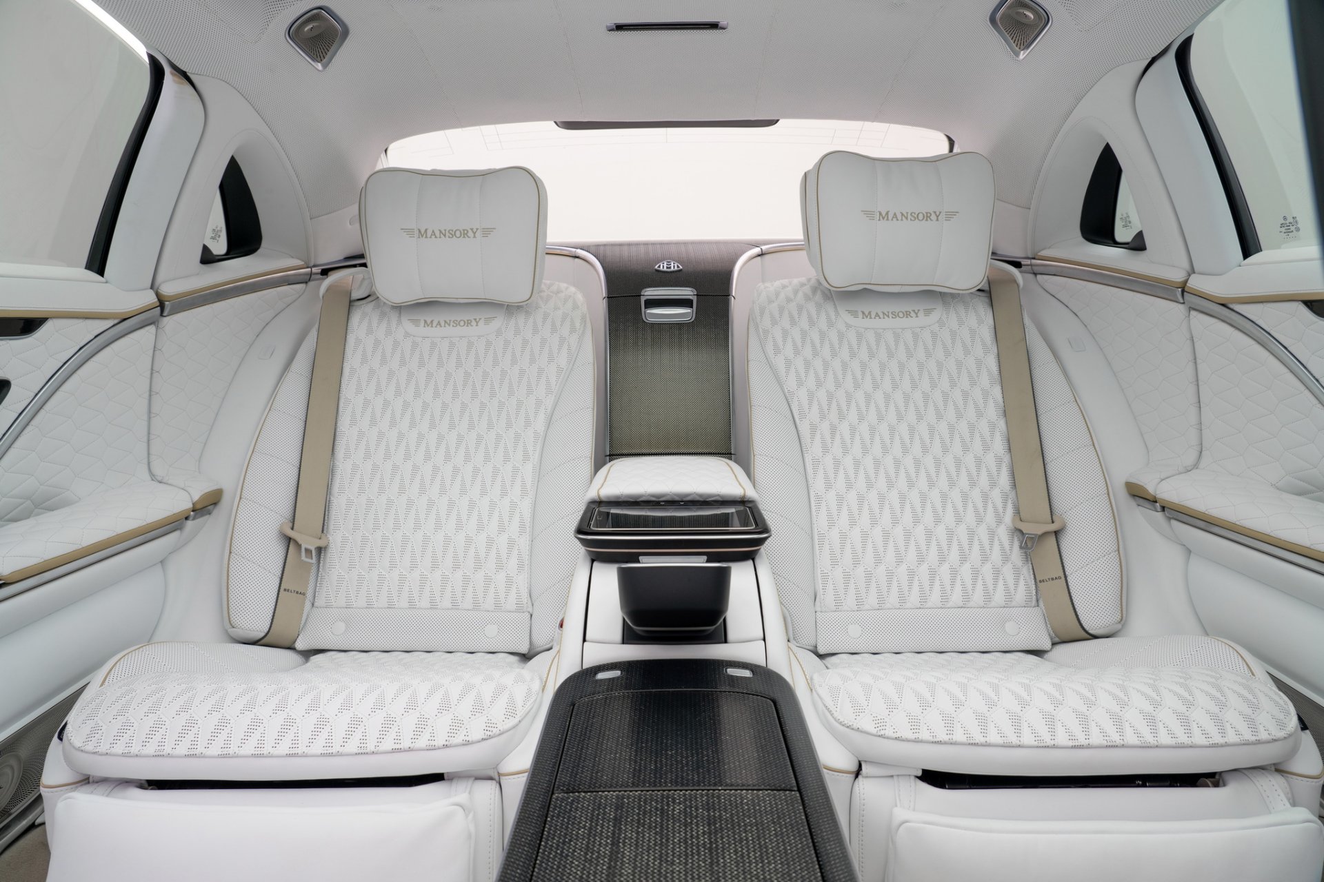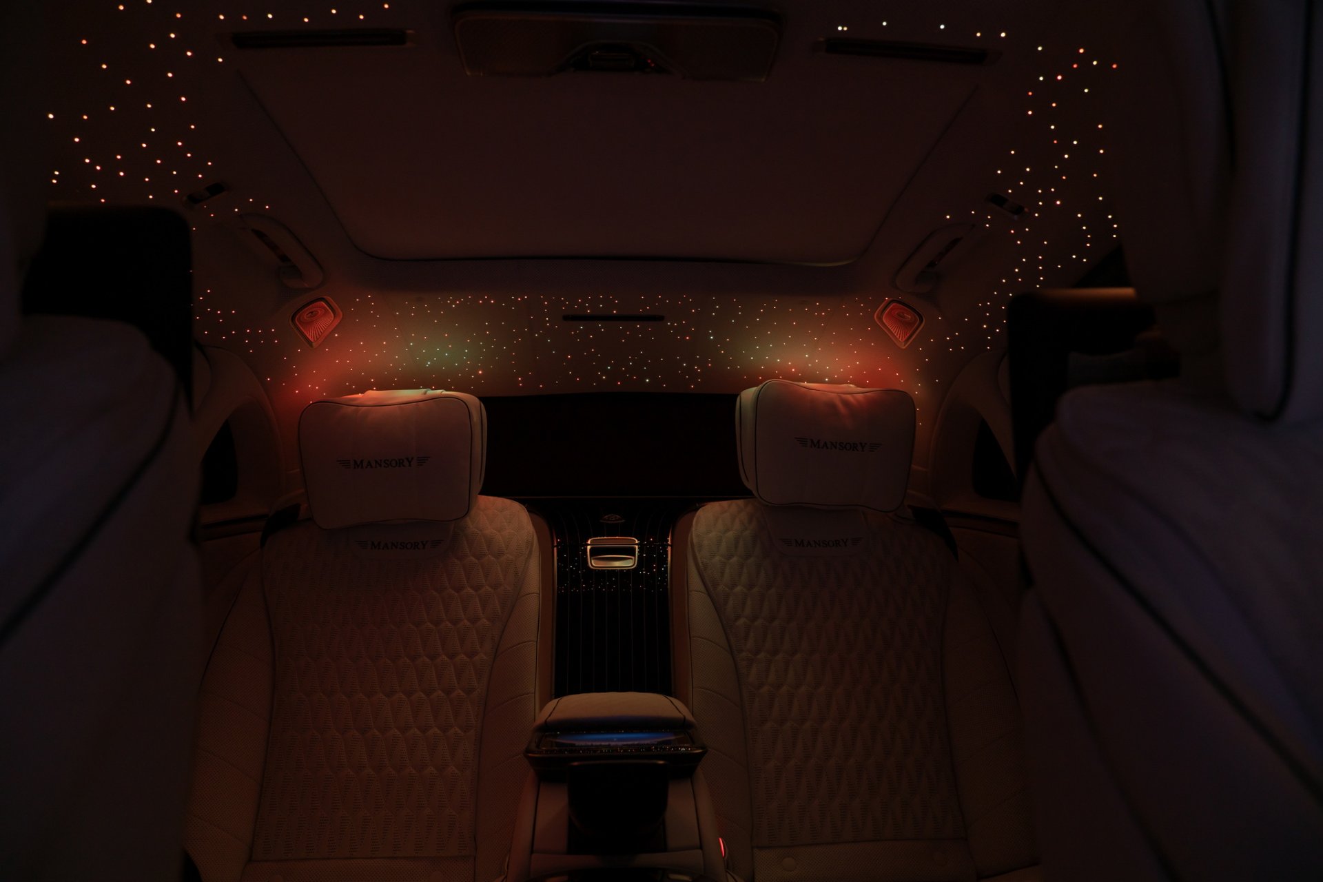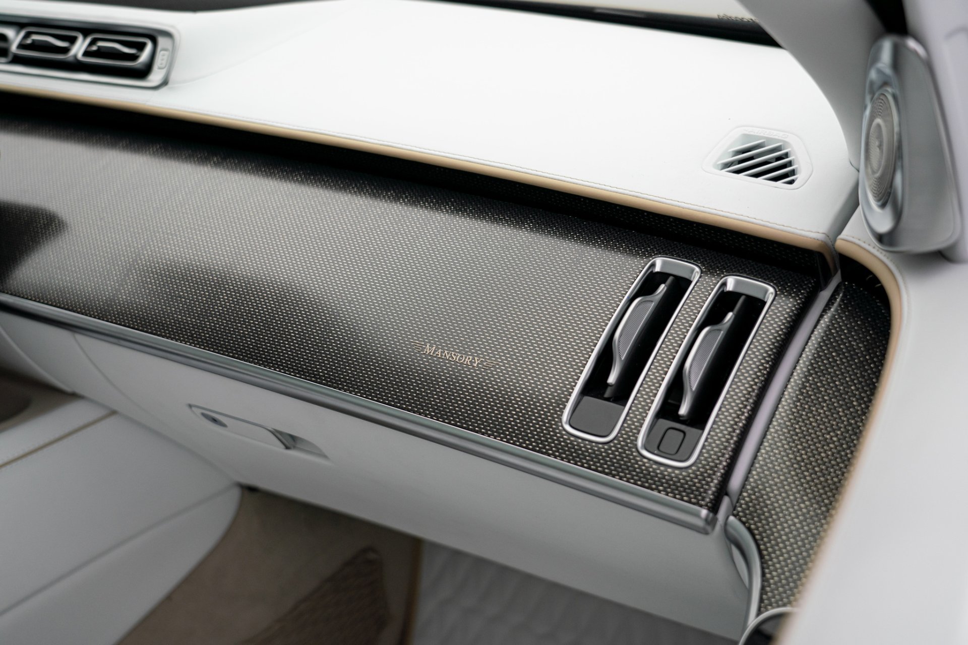 S-Class Maybach โดย Mansory มากับชุดแต่งที่ยังคงภาพลักษณ์สุดหรูของ Maybach ได้ดี ตั้งแต่ ลิ้นกันชนหน้า, กรอบกันชนช่องอากาศพร้อมไฟ DRL, แผงช่องอากาศออก(หลอก)ข้างรถ, สกิร์ตข้าง, ฝาครอบกระจกมองข้าง, สปอยเลอร์หลังคา, สปอยเลอร์ท้ายตูดเป็ด, ครีบช่องอากาศออก(หลอก)กันชนท้าย และดิฟฟิวเซอร์ท้ายเสริมไฟเบรกสไตล์รถ F1 ได้ งานทุกชิ้นเป็นคาร์บอนไฟเบอร์ทั้งหมด ถ้าไม่ชอบลายตารางแบบปกติ ยังมีลายคาร์บอนฯ อื่นๆ ให้คุณจิ้มได้ ล้อมีให้เลือกอยู่ 3 ลาย เป็นขอบ 22 นิ้ว ทั้งหมด สีสามารถสั่งทำได้ คู่กับยางหน้า 265/30 R22 และหลัง 305/25 R22 และช่วงล่างมีตัวปรับโหลดปรับได้ 2 ระดับ ตัวรถจะเตี้ยลงไปประมาณ 20-30 มม. เพื่อความเท่