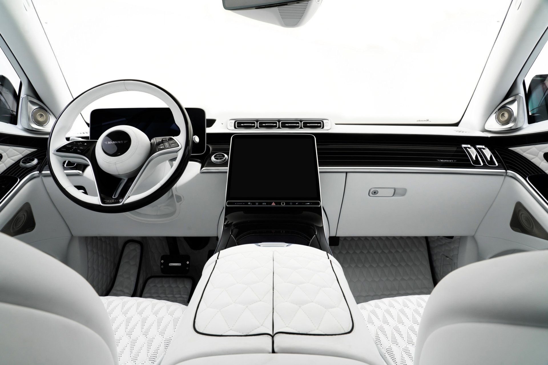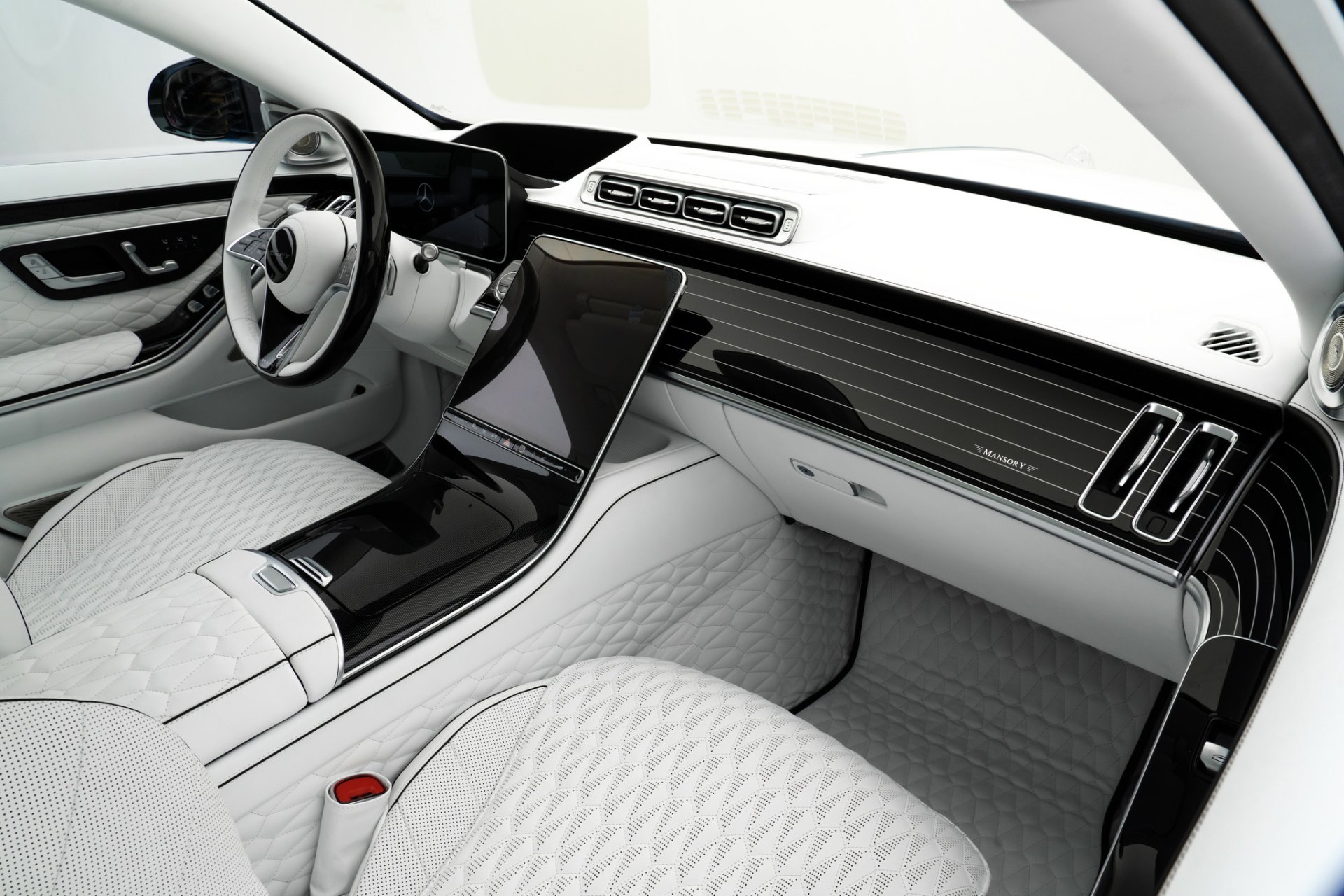 ห้องโดยสารก็สามารถรื้อทำใหม่ตามสไตล์ลูกค้าได้หมด โดยจะเน้นงานหนังแท้เป็นหลัก การเย็บเจาะรูหนังที่ไม่เหมือนใคร เพิ่มแผงคาร์บอนฯ พวงมาลัยหนังแบบสปอร์ต พรมปูพื้น และชุดแป้นเหยียบอะลูมิเนียม ซึ่งมีโลโก้ Mansory กำกับไว้ บนเพดานยังเพิ่มไฟ Star Light ให้บรรยากาศหรูได้ดี