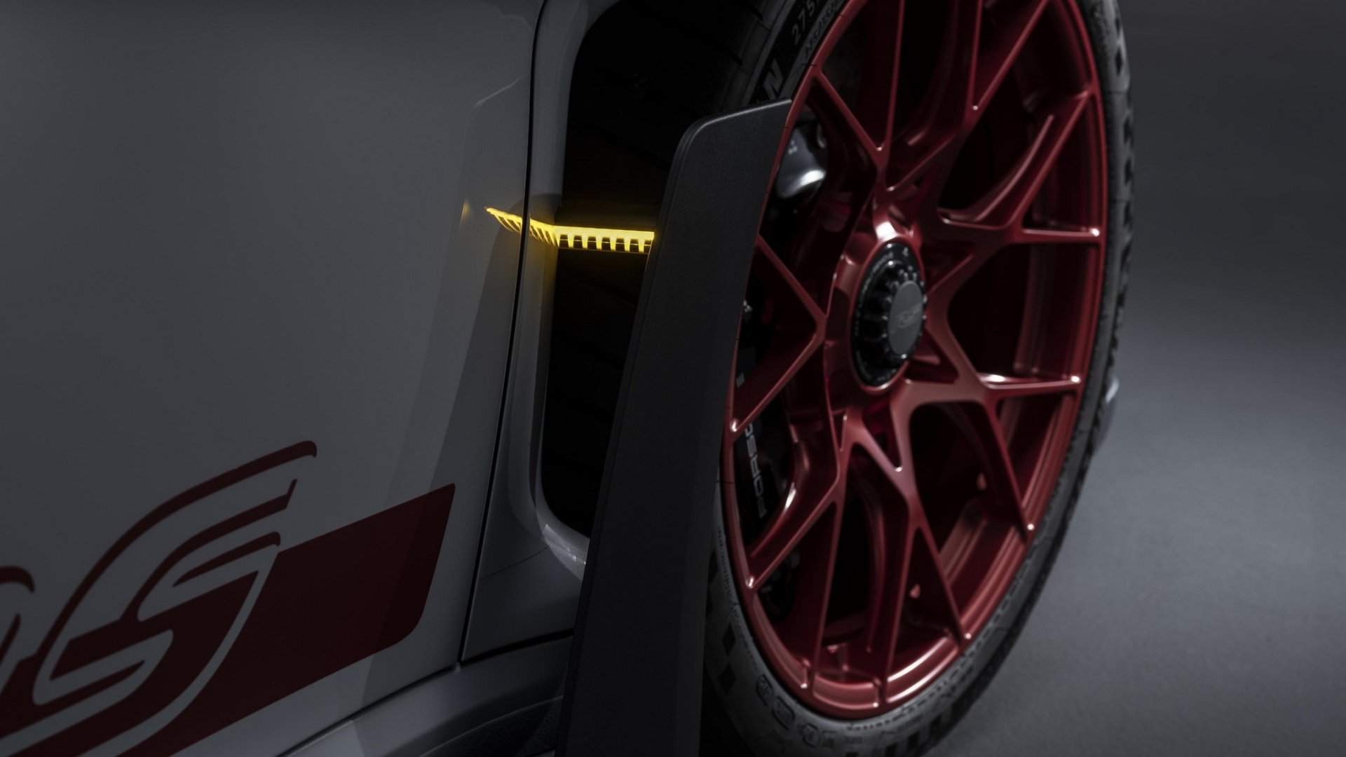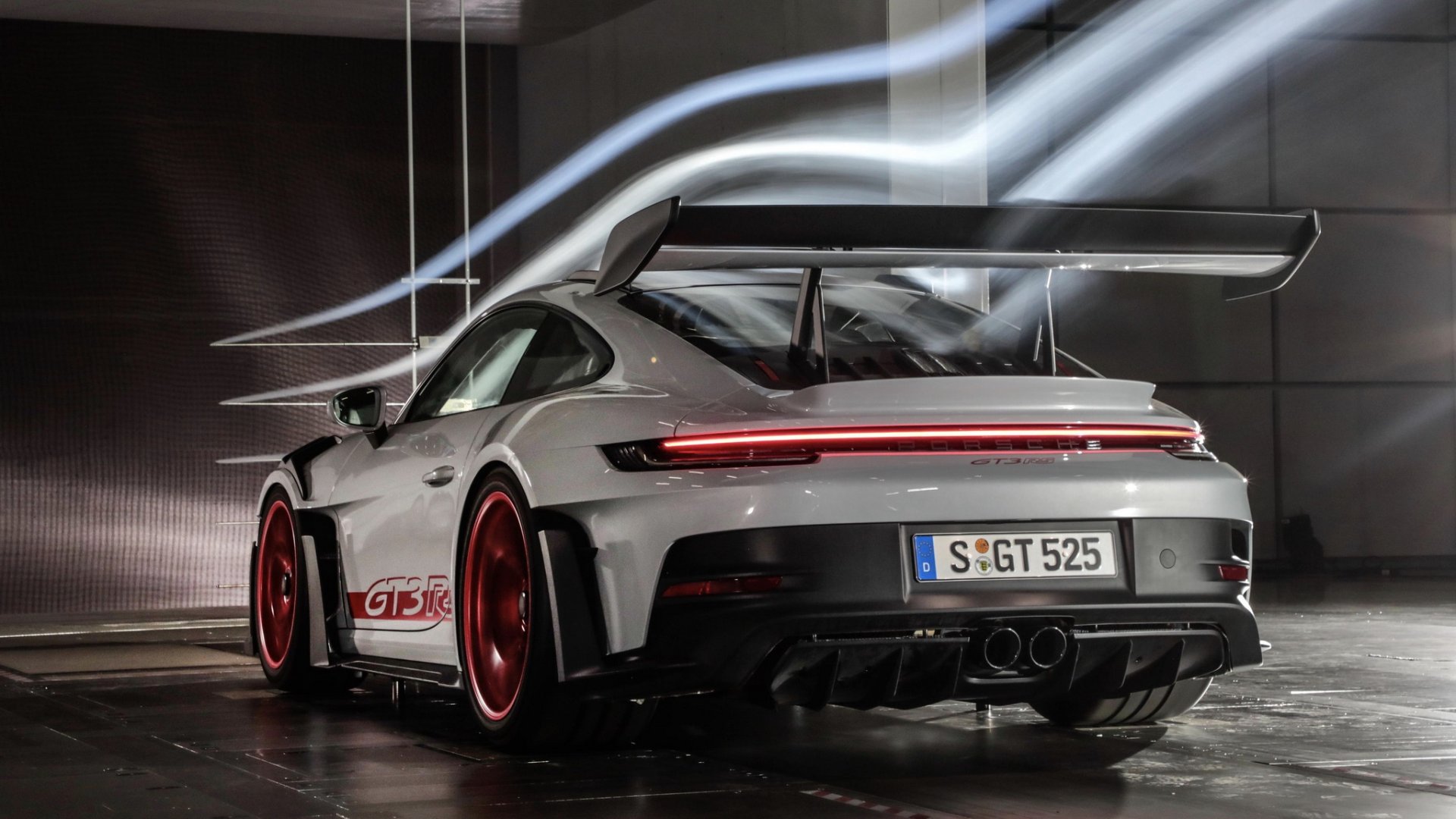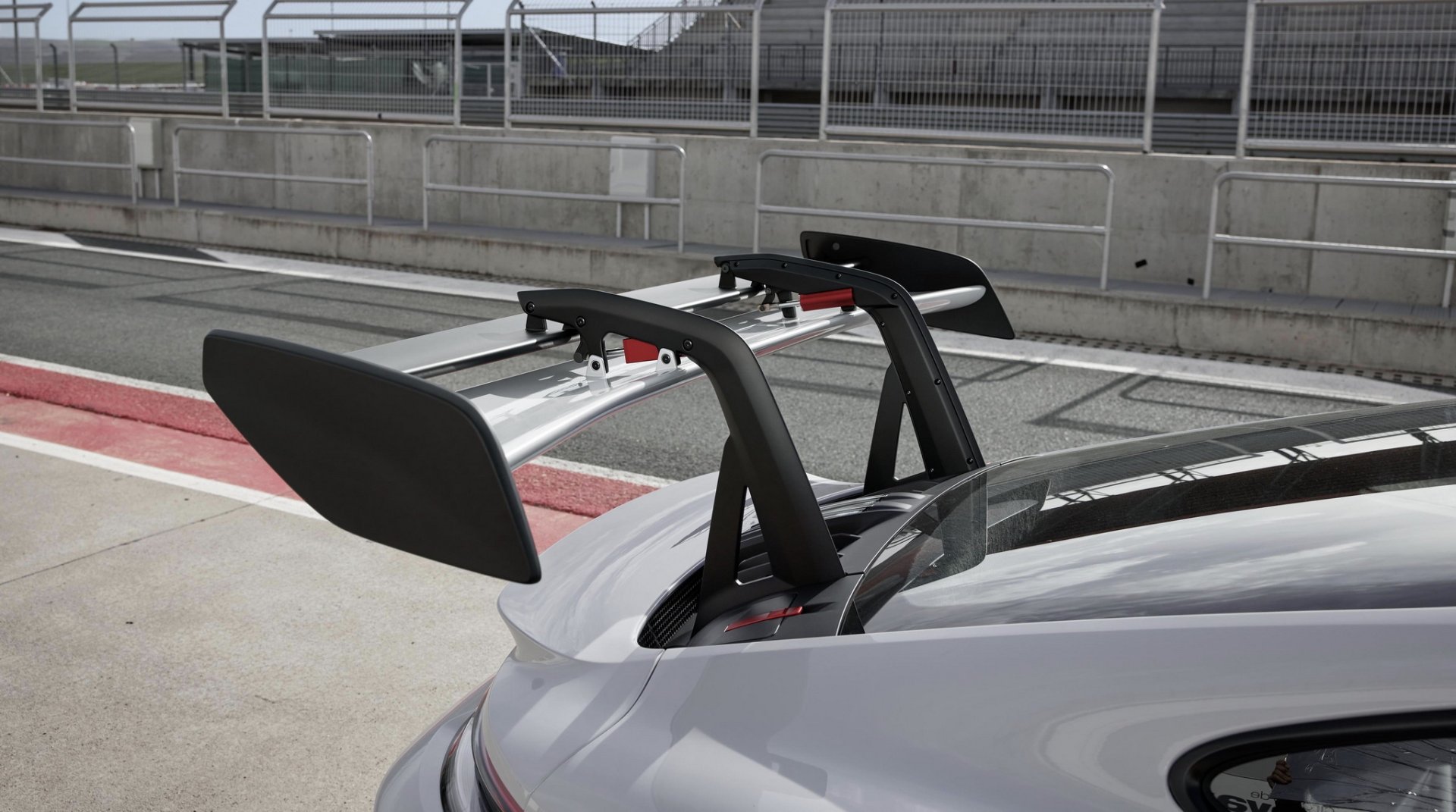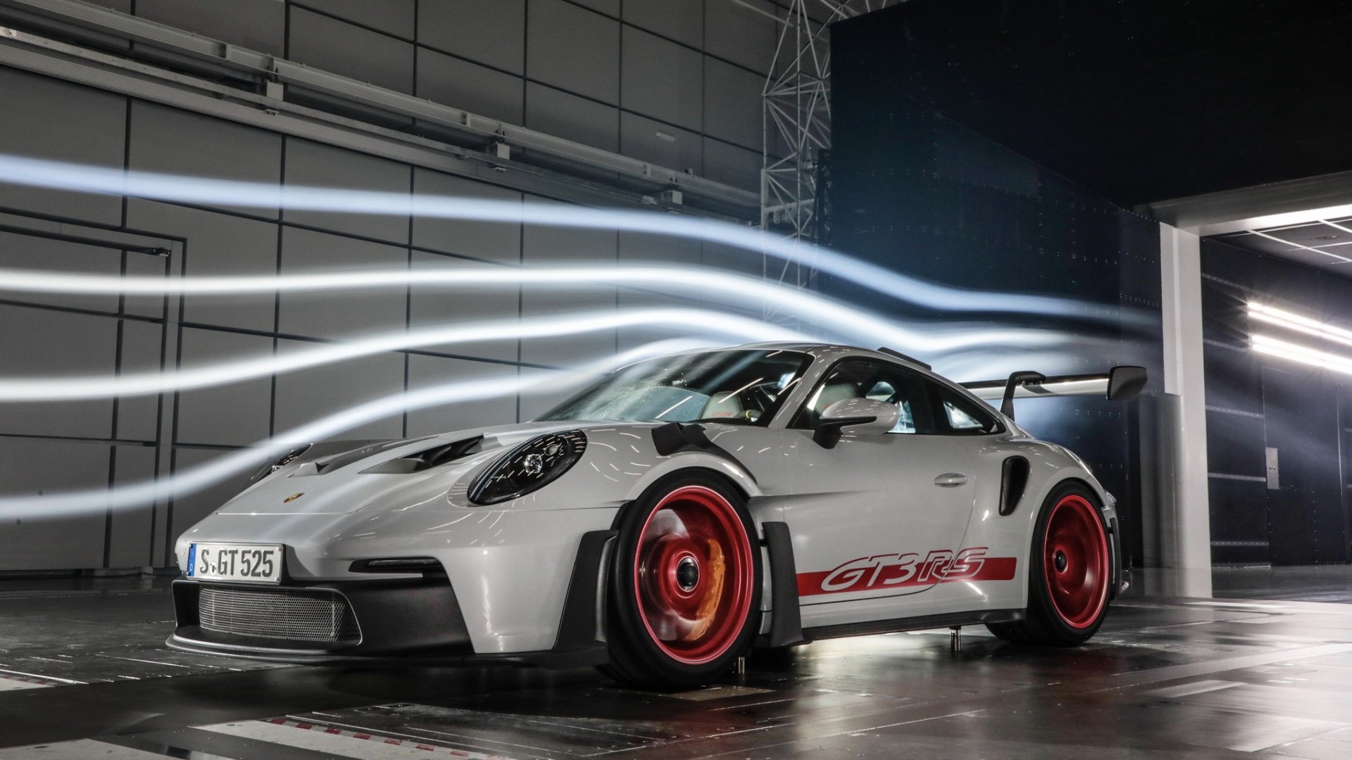 Porsche 911 GT3 RS มากับน้ำหนักตัวรถ 1,450 กก. หน้าตาจัดหนักรอบคัน เริ่มจากด้านหน้าใส่หม้อน้ำชุดเดียวกึ่งกลางแต่ใหญ่กว่าเดิมมาก (GT3 จะเป็นหม้อน้ำ 3 ตัว) ช่องข้างกันชนหน้ามีบานพับแอคทีฟซ่อนอยู่ช่วยเพิ่มแรงกดกับบาลานซ์รถ ฝากระโปรงหน้าพร้อมช่องลมเสริมครีบแอร์โรในตัว ครีบบานเกล็ดเหนือซุ้มล้อหน้า บนหลังคายังมีครีบ 2 ชิ้น ช่วยแบ่งแยกอากาศจัดเรียงอากาศเย็นเข้าสู่เครื่องยนต์ เพิ่มช่องลมช่องลมข้างรถเหมือน 911 Turbo (GT3 ปกติไม่มี) ท้ายรถติดปีกคอห่านขนาดมหึมาสูงเลยหลังคารถ พร้อมระบบ DRS (Drag-Reduction-System) ซึ่งไม่เคยมีปอเช่ร์ถนนรุ่นไหนใส่มาก่อน ดิฟฟิวเซอร์ก็ถูกปรับแต่งให้ดีขึ้น โดยรวมตัวรถสามารถสร้างแรงกดได้ถึง 409 กก. ที่ความเร็ว 200 กม./ชม. ซึ่งมากเป็นสองเท่าจากรุ่นก่อน 991.2 และมากกว่า 911 GT3 ตัวปัจจุบันถึงสามเท่า