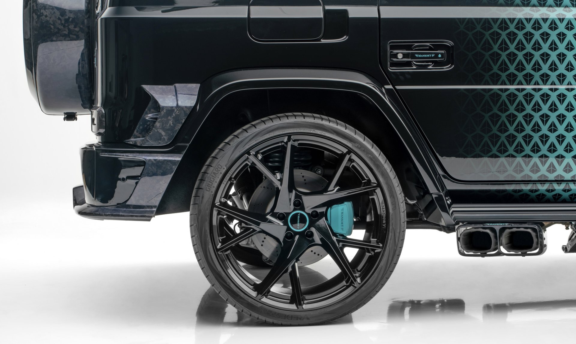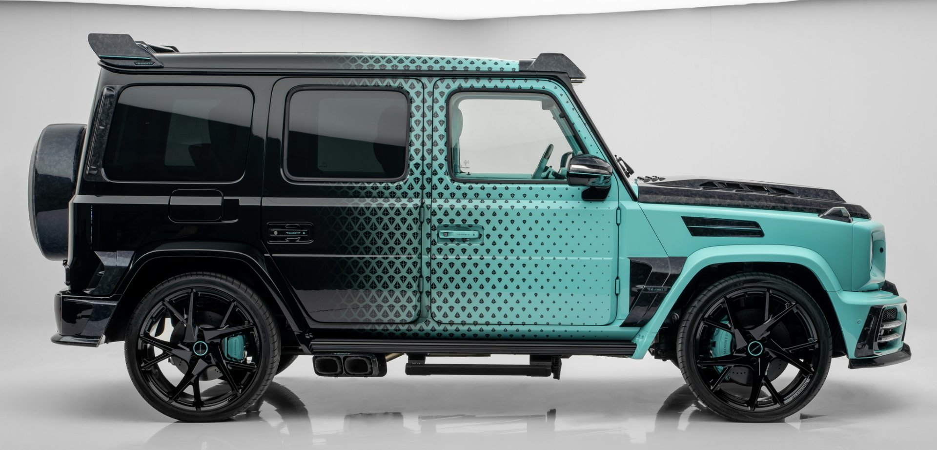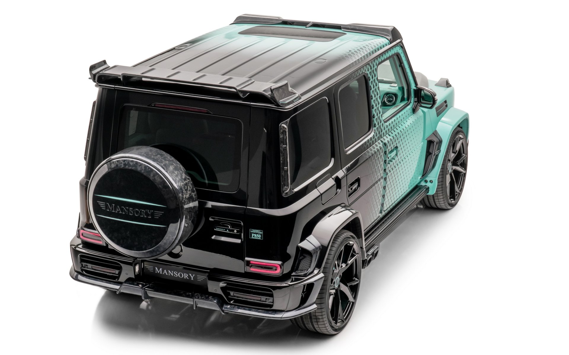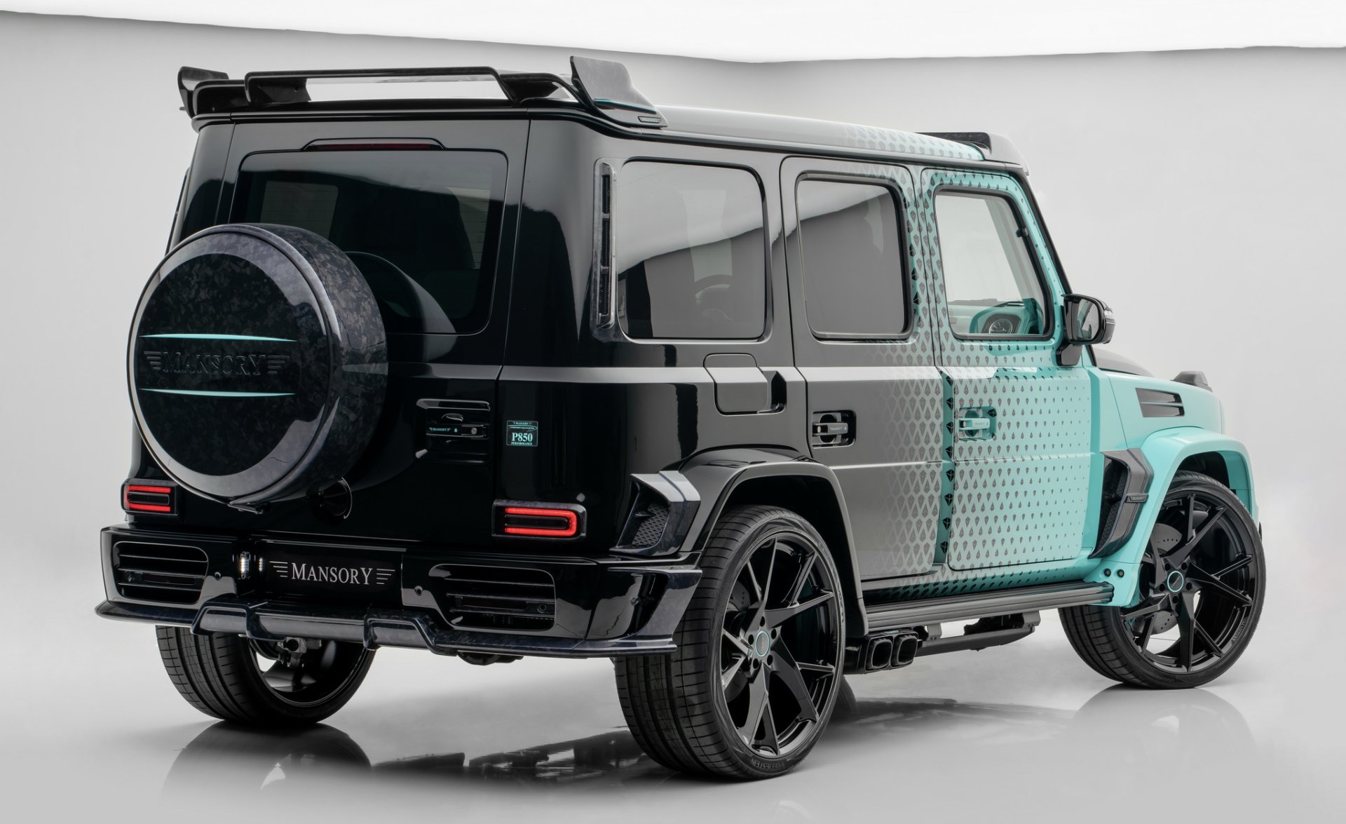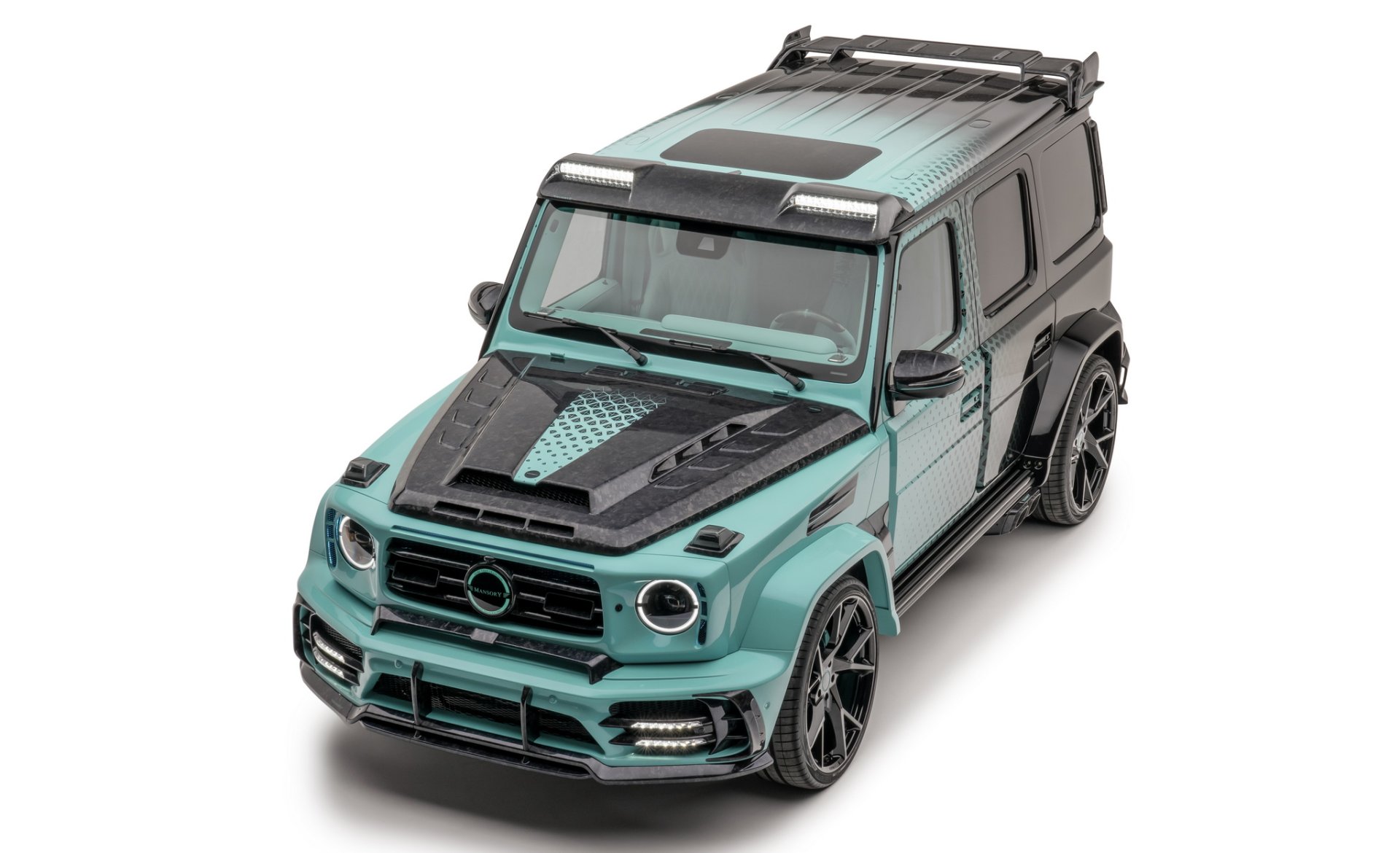 Mansory Algorithmic Fade มาด้วยจุดเด่นของสีตัวถังซึ่งทำมาเป็นพิเศษตามชื่อรถ "Algorithmic Fade"ส่วนหน้ารถจะใช้สีฟ้า turquoise ไล่ระดับไปเรื่อยๆ จนถึงท้ายรถเป็นสีดำเข้มสุด ซึ่งคันในรูปเป็นแค่ตัวอย่างเท่านั้น คุณสามารถเลือกสีและลวดลายอะไรก็ได้ตามความชอบ จากนั้นก็เพิ่มความดุดันด้วยชุดแต่งที่ทำจาก Forged Carbon ทั้งหมด ตั้งแต่ ชุดกันชนหน้าเสริมไฟ DRL 2 ชั้น, แผงกระจังหน้า, ฝากระโปรงหน้าทรงดุ, กระจกมองข้าง, มือจับประตู, ช่องลมด้านข้าง, แผงหลังคา, สปอยเลอร์หลังคา และฝาครอบล้ออะไหล่ ล้อ Forged ใส่ขอบ 24 นิ้ว สีดำเงา พร้อมยางสมรรถนะสูงไซด์ 295/30R24