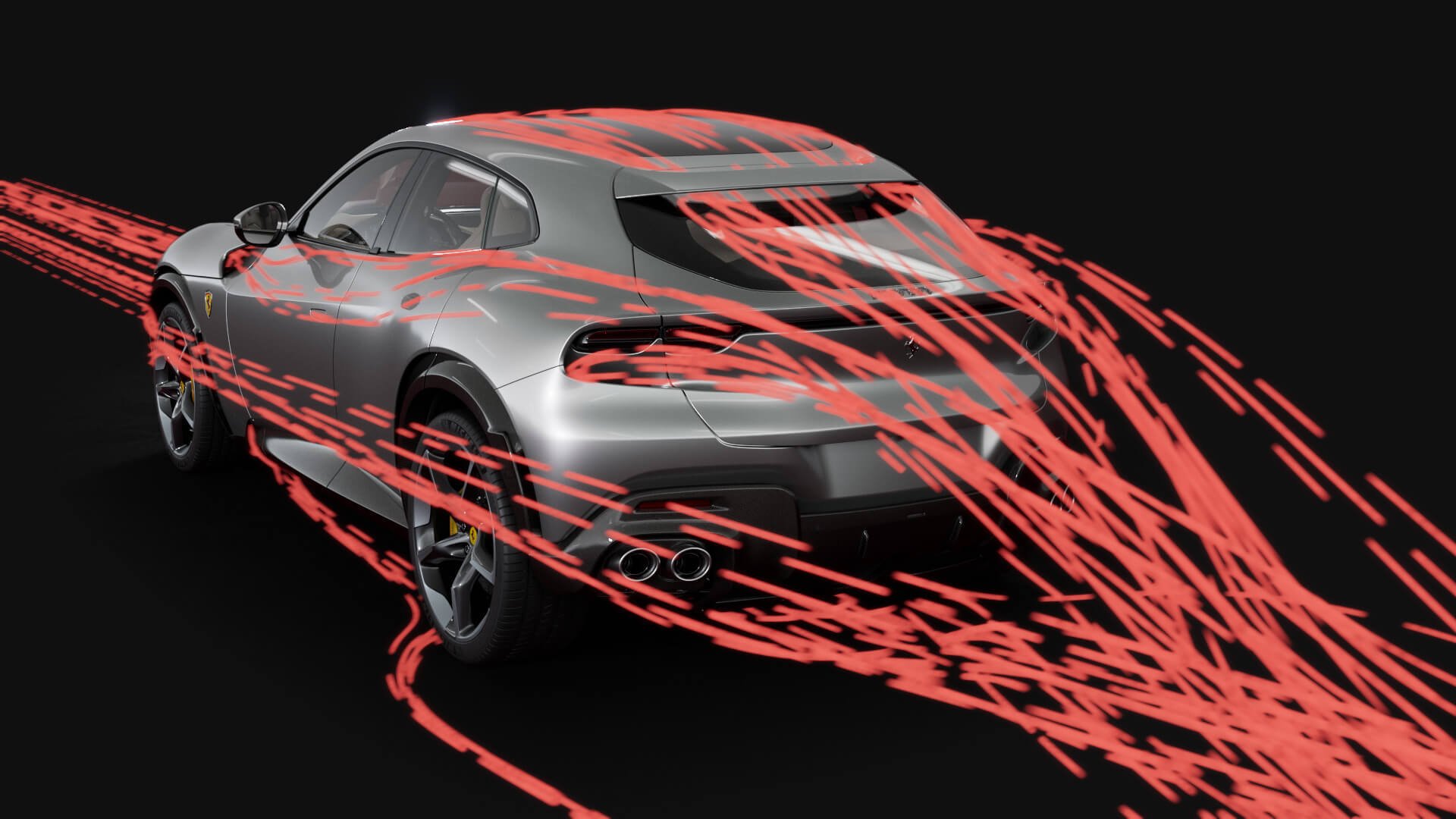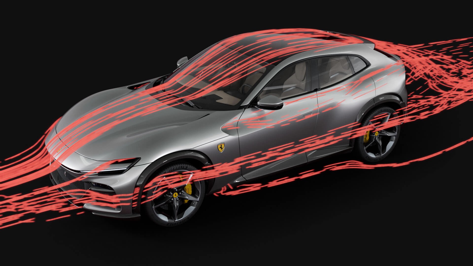 Purosangue มิติตัวรถ ยาว 4,973 มม. กว้าง 2,028 มม. สูง 1,589 มม. ความยาวฐานล้อ 3,018 มม. ซึ่งถ้าเอามาจอดข้าง Urus ขนาดรวมๆ นั้นถือว่าใกล้เคียงกันมาก โครงสร้างแซสซีใหม่หมดส่วนล่างทำมาจากอลูมิเนียมอัลลอยด์ที่มีความแข็งแรงสูง ดีไซน์ภายนอกดูเรียบหรูมีสไตล์ เน้นแอโรไดนามิก เหนือไฟหน้ามีช่องลม Aerobridge ซึ่งลมจะทะลุออกช่องลมใต้เสา A-Pillars ช่วยลดแรงต้านอากาศ บานประตูเปิดแบบ Rolls-Royce หลังคาคาร์บอนไฟเบอร์ดีไซน์ให้เว้าลงด้านหลังให้อากาศรีดผ่านสปอยเลอร์ ใต้สปอยเลอร์ยังมีครีบชิ้นเล็กช่วยสร้างกระแสลมวนได้ จะเห็นว่ารถคันนี้ไม่มีที่ปัดน้ำฝนหลังมา เพราะมันใช้อากาศเป็นตัวรีดน้ำช่วยให้กระจกสะอาดตลอดเวลา ที่เก็บสัมภาระท้ายมีขนาด 473 ลิตร ใหญ่พอกับการใช้งานในชีวิตประจำวัน