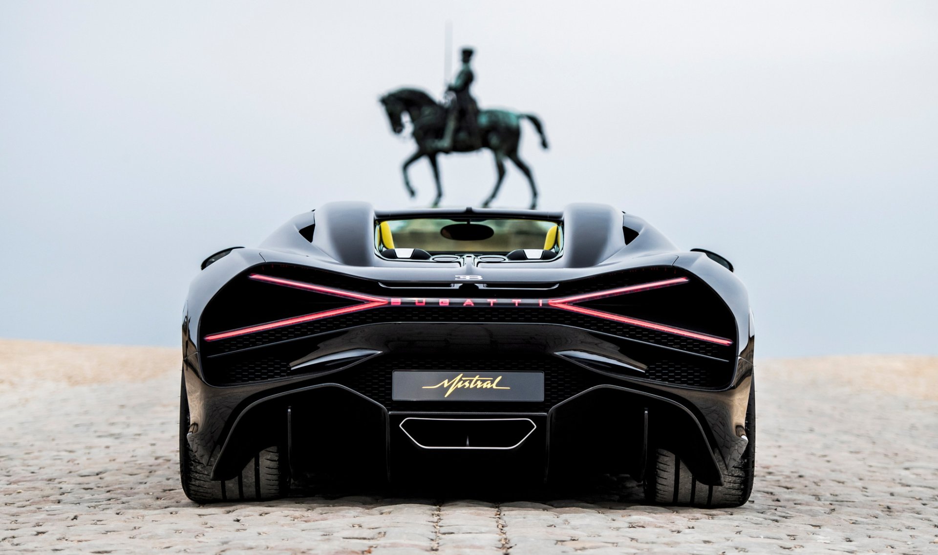 บูกัตติเลือกงานนี้สำหรับเปิดตัว Mistral W16 โชว์ความงามกันแบบเต็มๆ Mistral คือบูกัตติที่ใช้เครื่อง W16 เพียวๆ รุ่นสุดท้าย ตัวถังมาสไตล์โรดสเตอร์ไร้หลังคา โดดเด่นด้วยไฟหน้า LED 4 เส้น กันชนหน้ามีช่องรับลมขนาดใหญ่ กระจกบังลมหน้าโค้งรูปตัว V มีเสาบางพิเศษ ด้านข้างมีช่องลม C-line ขนาดเล็กกว่ารุ่นอื่น เพราะมันย้ายช่องสกู๊ปคู่ไปอยู่เหนือหัวผู้ขับส่งลมเข้าเครื่องยนต์โดยตรง มันยังเป็นโครงสร้างไว้ป้องกันถ้าเกิดการพลิกคว่ำ บั้นท้ายอลังกาลด้วยไฟท้าย X-taillight