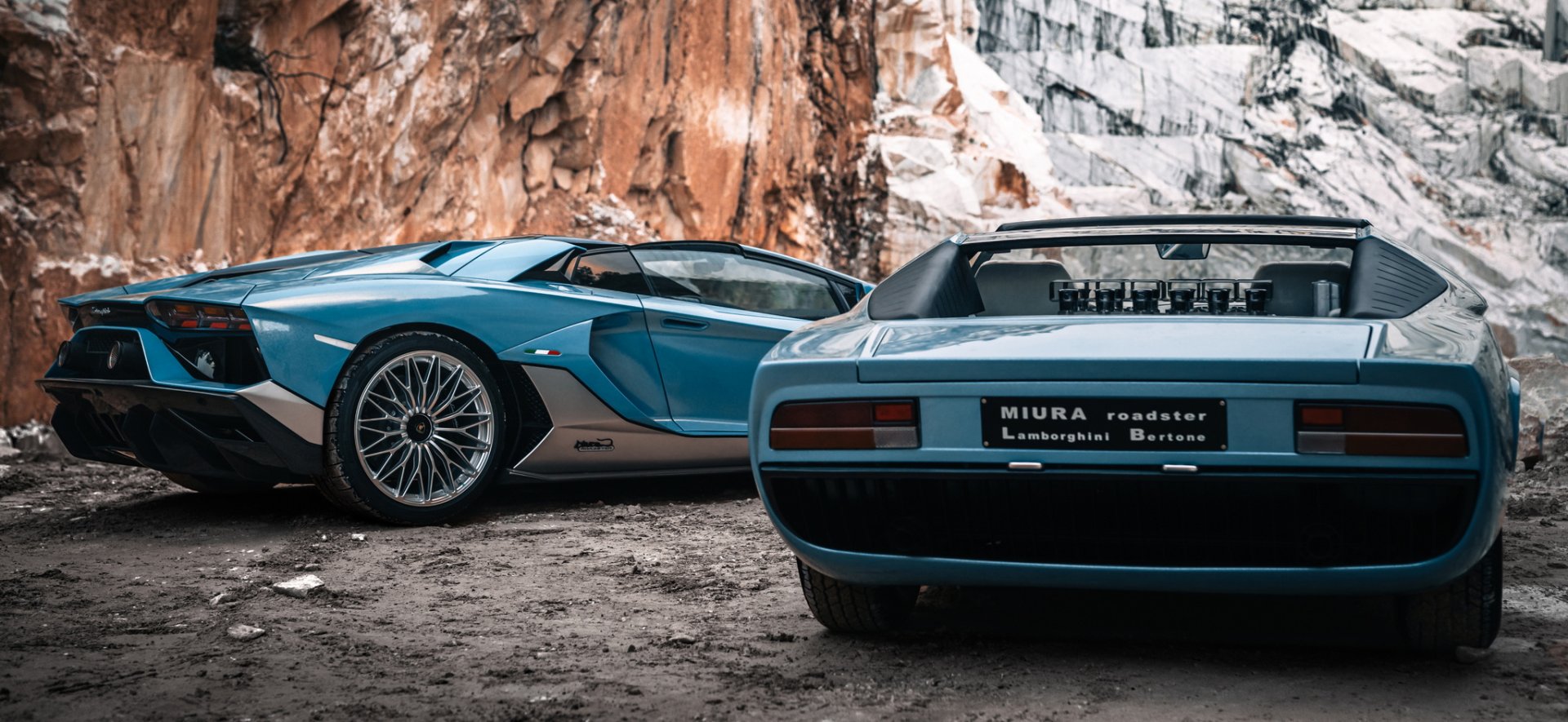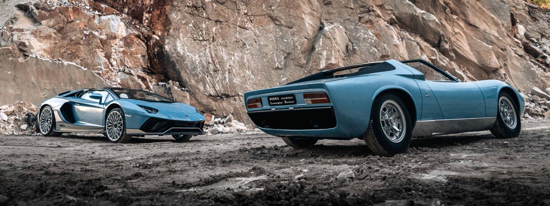 Ultimae คันนี้เป็นตัว Roadster ที่มี 250 คันในโลก ตัวถังสีฟ้า Azzuro Flake สั่งพิเศษผ่าน Ad Personam ซึ่งเลียนแบบสีต้นตำหรับของ Miura ที่จอดถ่ายคู่กัน แต่จะเพิ่มประกายในเนื้อสีให้วิบวับขึ้น ส่วนล่างตัวรถตัดด้วยสีเทา Grigio Liqueo และเสริมเส้นขอบสีดำ Nero Aldebaran สปลิตเตอร์หน้า ดิฟฟิวเซอร์หลัง หลังคา และฝาครอบเครื่องยนต์เป็นคาร์บอนไฟเบอร์ดำเงาทั้งหมด ท่อไอเสียเป็นสีดำด้าน ล้อฟอร์จ Center Lock ลาย Dianthus สีเงิน shiny silver กับคาลิปเปอร์สีดำดูเรียบง่าย