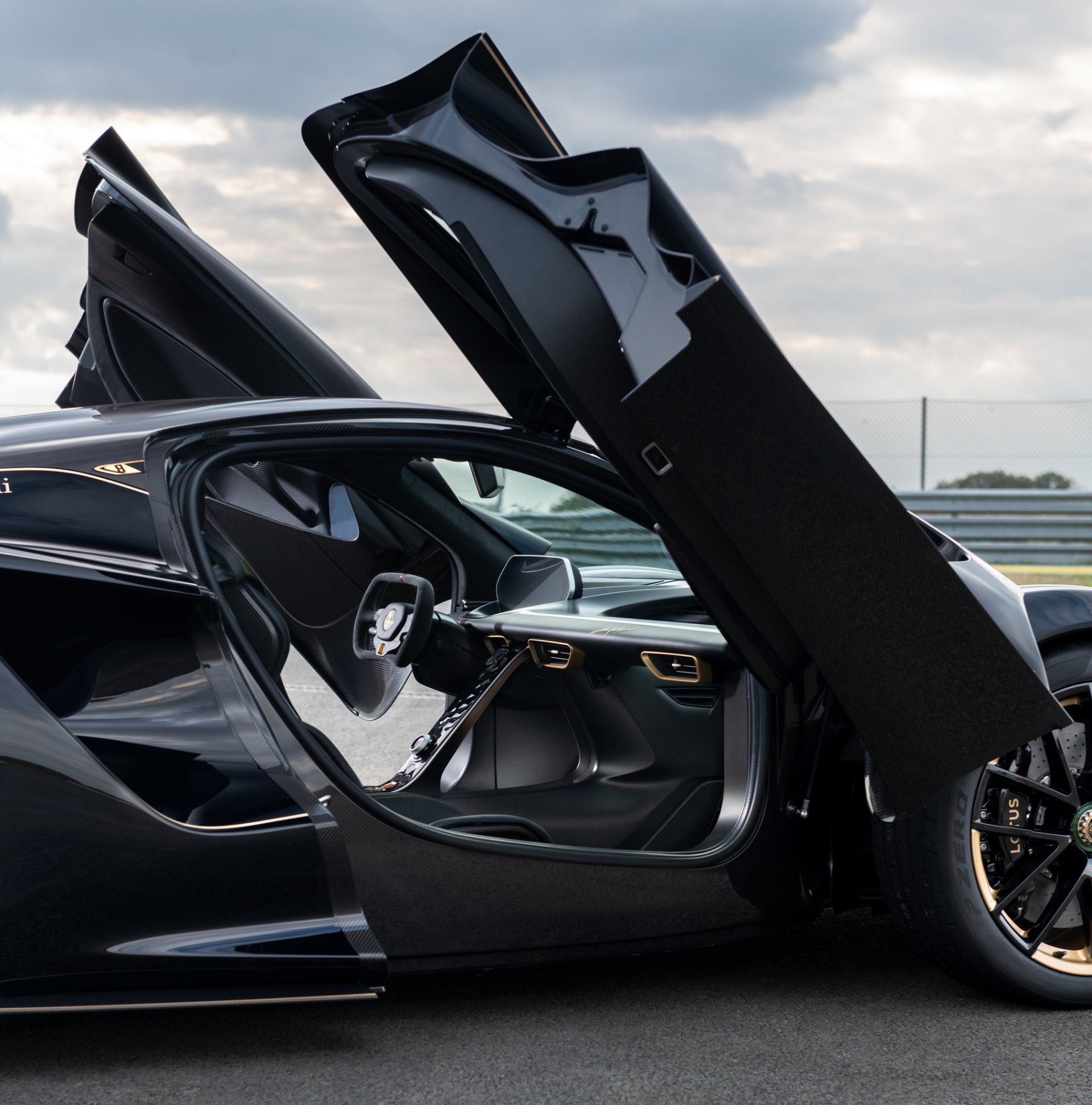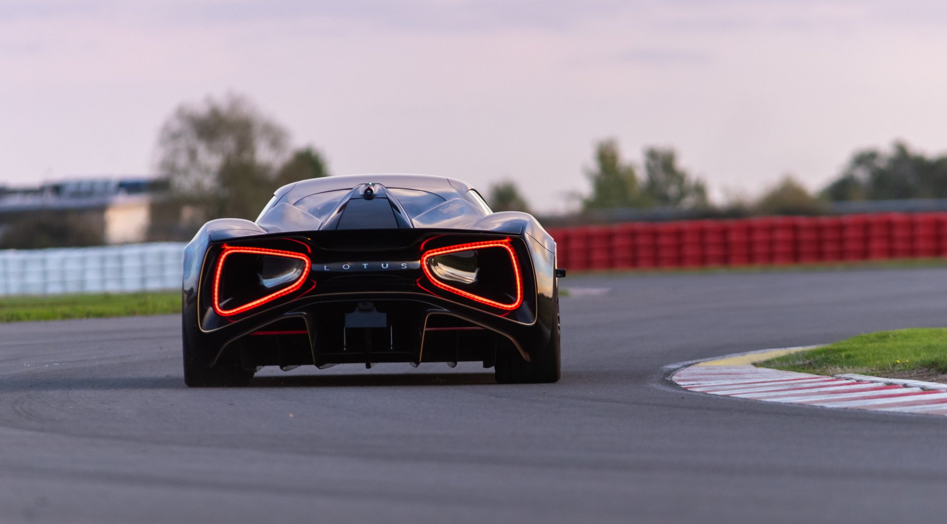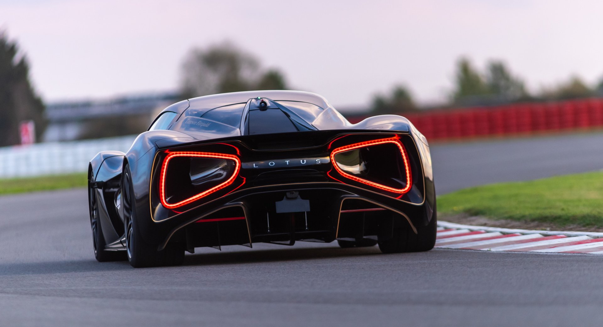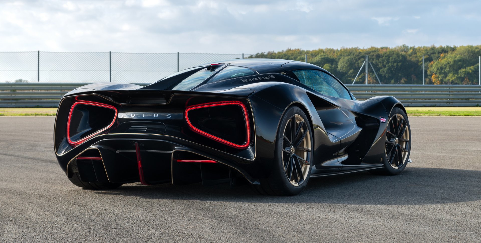 Lotus Evija ถือเป็นไฮเปอร์คาร์พลังไฟฟ้ารุ่นแรกของค่าย ตัวถังเป็นคาร์บอนไฟเบอร์ทั้งหมด น้ำหนักรถเปล่า 1,680 กก. งานแอร์โรไดนามิกสไตล์รถ F1 โดดเด่นด้วยช่องอุโมงค์คู่ขนาดใหญ่ที่ไฟท้ายล้อมรอบ สามารถส่งอากาศได้ถึง 5,680 ลิตร/วินาที ช่วยเพิ่มแรงกดได้มหาศาล