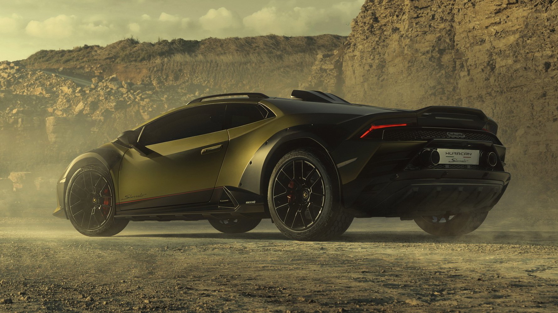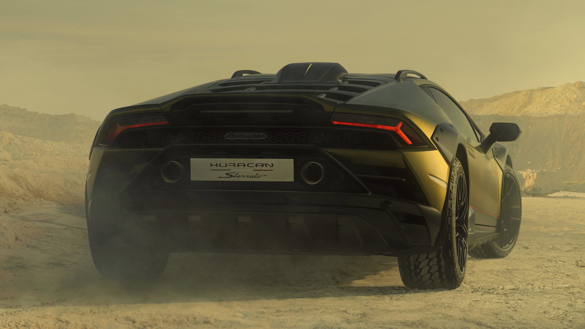 Huracán Sterrato เกิดมาเพื่อลุยอย่างแท้จริง ด้วยความสูงจากพื้นเพิ่มขึ้น 44 มม. เมื่อเทียบกับ Huracán EVO ความกว้างของแทร็กด้านหน้า +30 มม. ด้านหลัง +34 มม. กันชนหน้าเป็นดีไซน์เดียวกับ Huracán Performante พร้อมเสริมไฟ LED สไตล์รถแรลลี่ บนหลังคาติดราวหลังคาไว้ขนสัมภาระ เหนือฝาครอบเครื่องเสริมช่องลมไว้ดึงอากาศสะอาดเข้าภายในเครื่องยนต์ ใต้ท้องรถก็เสริมแผ่นอลูมิเนียมป้องกันไว้รอบคัน บึกบึนด้วยซุ้มล้อสีดำ ล้อให้มาขนาด 19 นิ้ว เลือกได้ 2 ลาย Cerere และ Morus คู่ยาง Bridgestone Dueler AT002 ที่ลุยได้ทุกสภาพถนน เบรกเป็นคาร์บอน-เซรามิก จานหน้าขนาด 380 มม. คาลิปเปอร์ 6 สูบ และหลัง 356 มม. คาลิปเปอร์ 4 สูบ