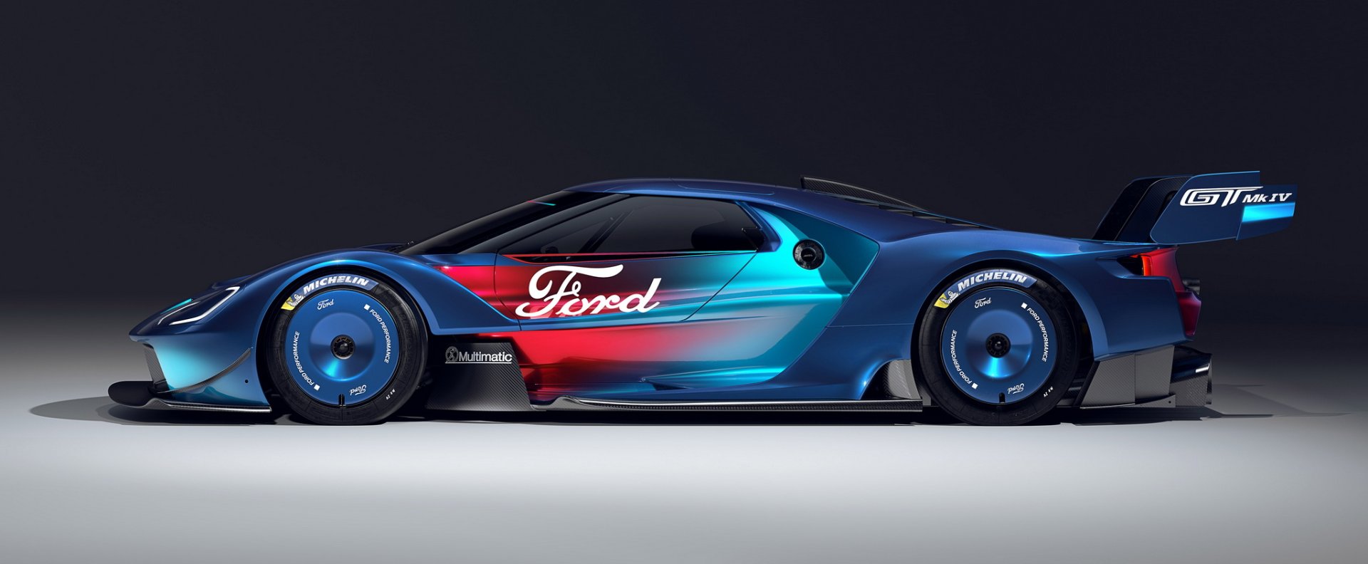 Ford GT Mk IV ปี 2023 จะเป็นรุ่นที่ถูกเค้นพลังประสิทธิภาพต่างๆ ออกมาให้ขีดสุด เมื่อเทียบกับ Ford GT MK II ปี 2020 ตัวใหม่นี้ถือว่าแตกต่างอยู่หลายจุดทีเดียว ตัวถังคาร์บอนไฟเบอร์มีการปรับปรุงด้านอากาศพลศาสตร์รอบคันรวมถึงดีไซน์ที่ดูล้ำขึ้น เห็นจากชุดไฟหน้า LED ใหม่ ฝากระโปรงหน้าพร้อมช่องลม NACA duct และช่องลมขนาดใหญ่ ซุ้มล้อหน้ามีการผ่าออกให้อากาศไหลได้ดีขึ้น ปีกท้ายขนาดใหญ่ และแชสซียังถูกยืดให้ระยะฐานล้อยาวขึ้นเป็นรถแข่งแบบ Longtail พร้อมระบบกันสะเทือน Adaptive Spool Valve (ASV) ของ Multimatic