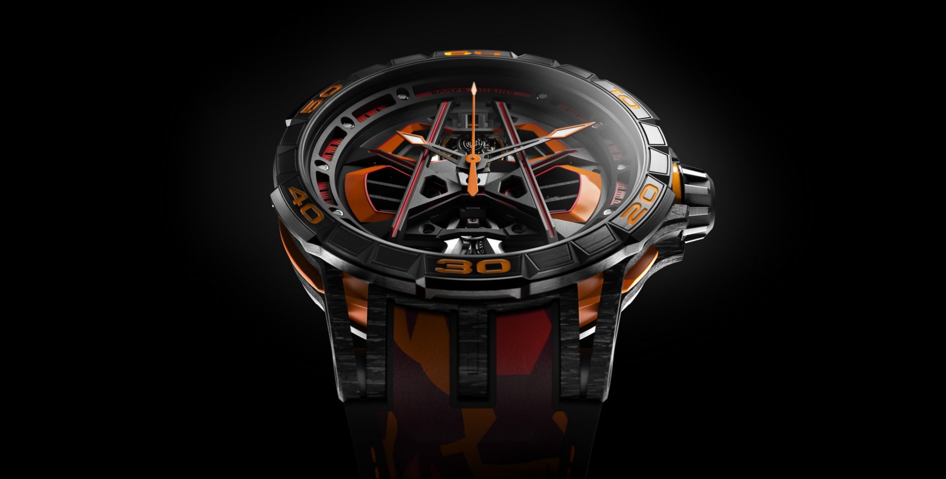 Excalibur Spider Huracán Sterrato Monobalancier (MB) นาฬิการุ่นลิมิเต็ดส่งท้ายปี 2022 ร่วมมือโดย Roger Dubuis (โรเช่ย์ ดูบุยส์) และทีม Lamborghini Squadra Corse ตัวเรือนขนาด 45 มม. ทำจาก SMC Carbon เป็นวัสดุคอมโพสิตที่เบากว่าทองถึง 9 เท่า ส่วนขอบรอบหน้าปัดสีดำจะทำจาก DLC ไทเทเนียม ขับเคลื่อนด้วยกลไลออโตเมติก RD630 สำรองพลังงานได้ 60 ชั่วโมง นาฬิกาเน้นโทนสีเร้าใจส้มดำแดงเหมาะกับสายลุยอย่างยิ่ง